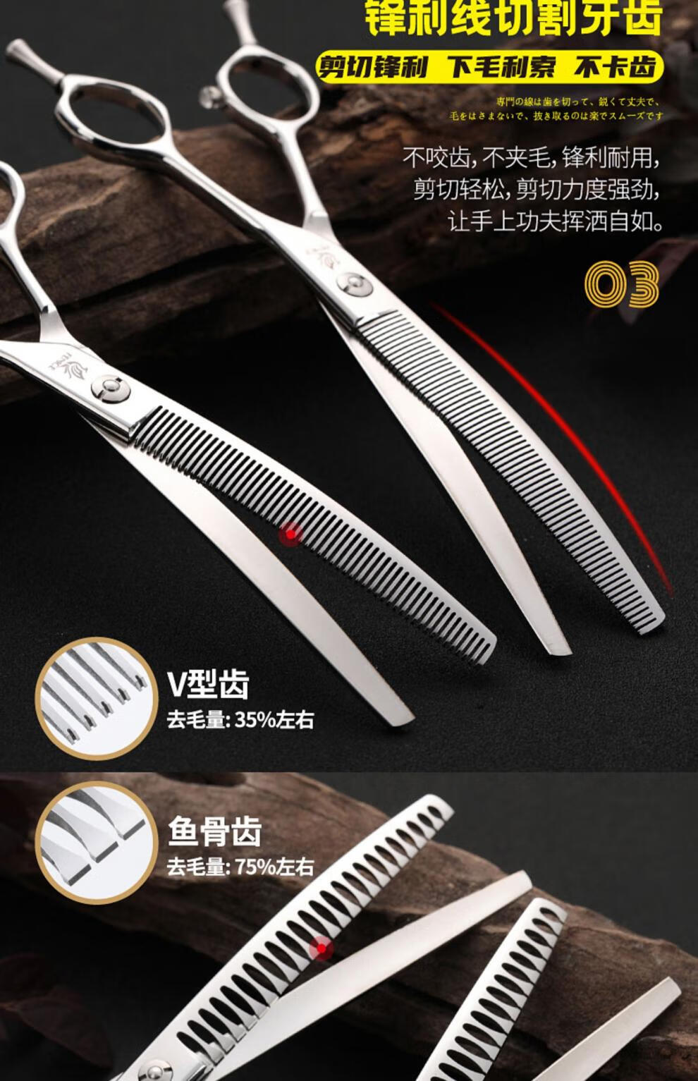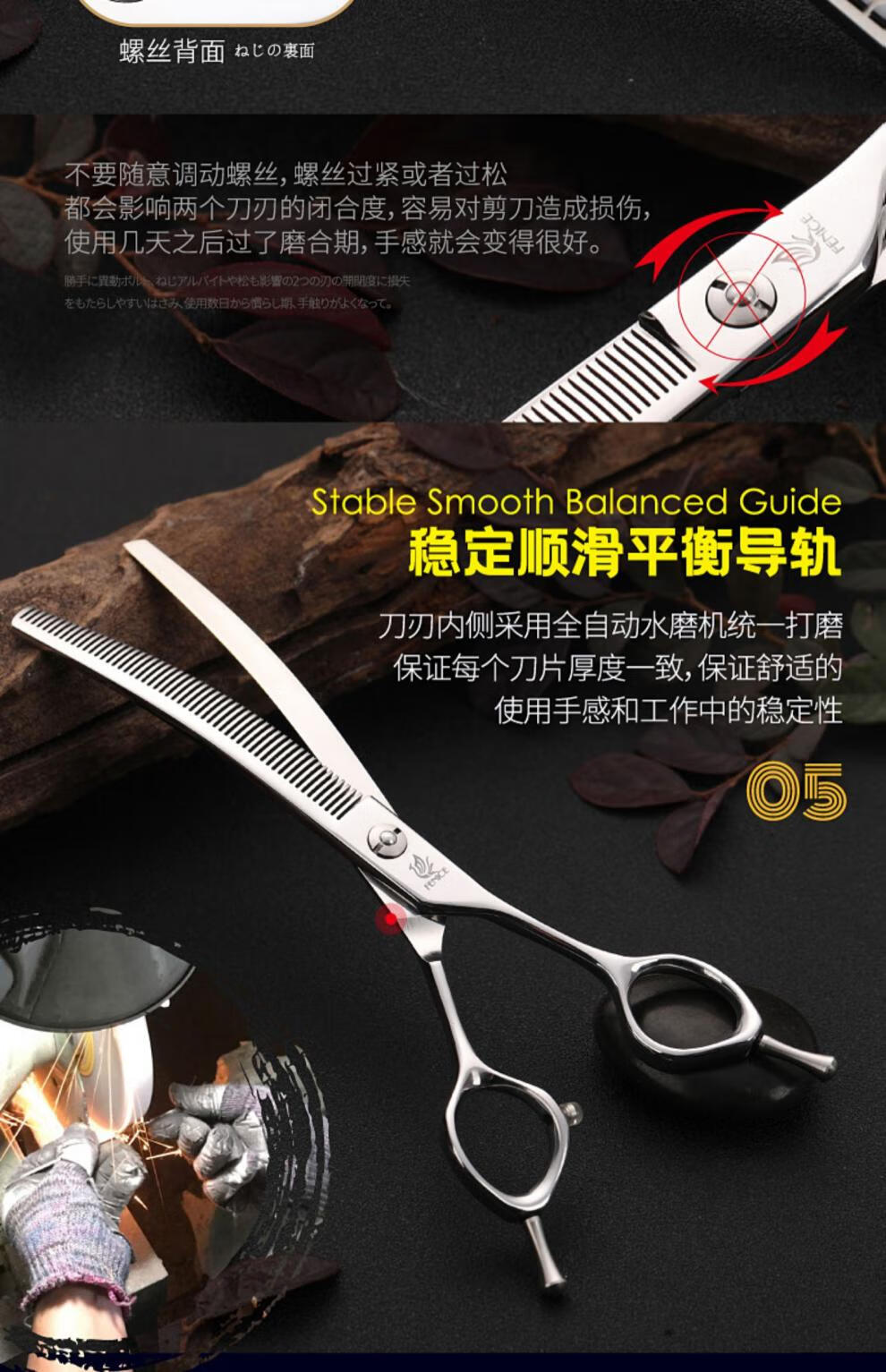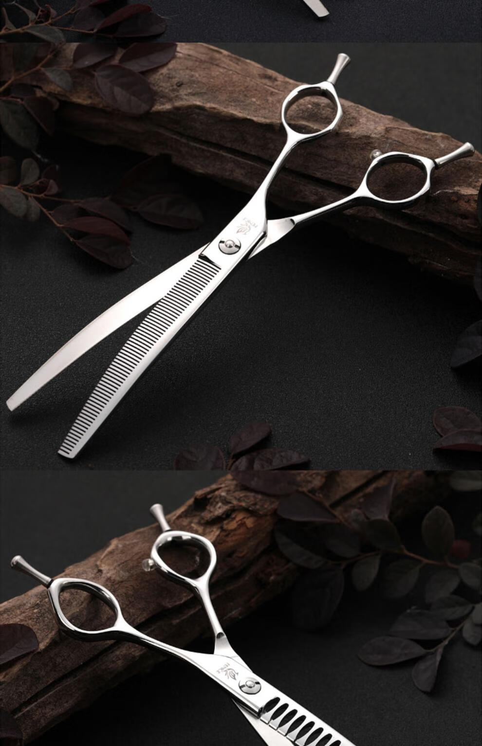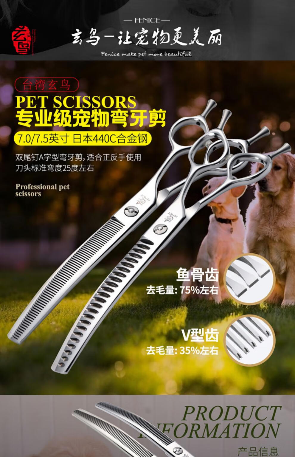 Xuanniao Pet Curved Fishbone Scissors, Thinning and Trimming Tool for Beautician Shop, 7-inch V-shaped Curved Teeth Scissors, 7.5-inch Black Diamond Curved Fishbone Scissors