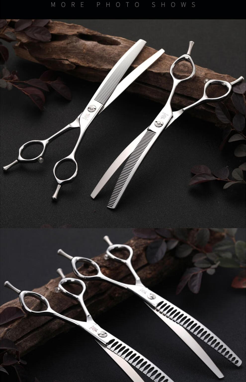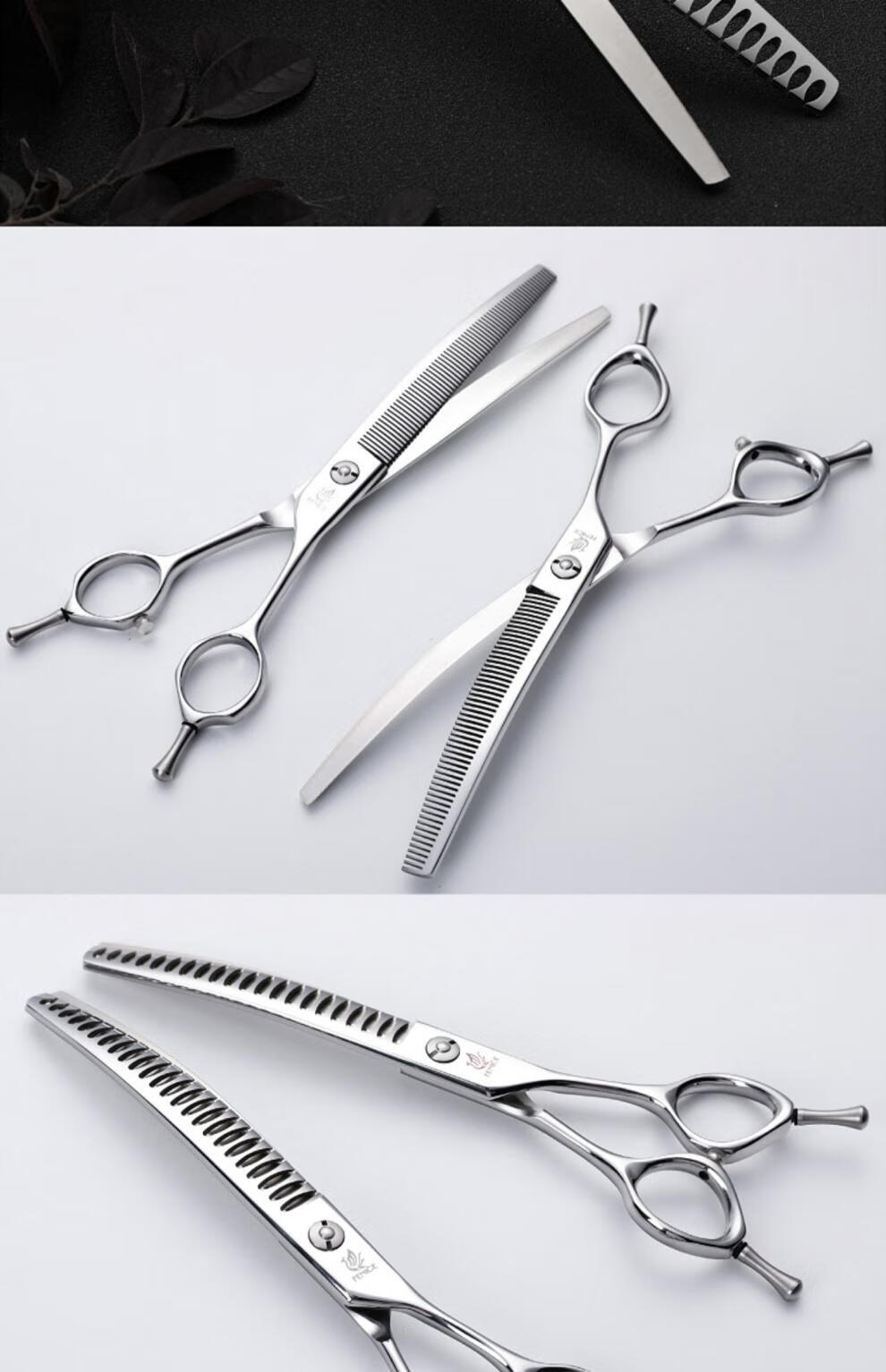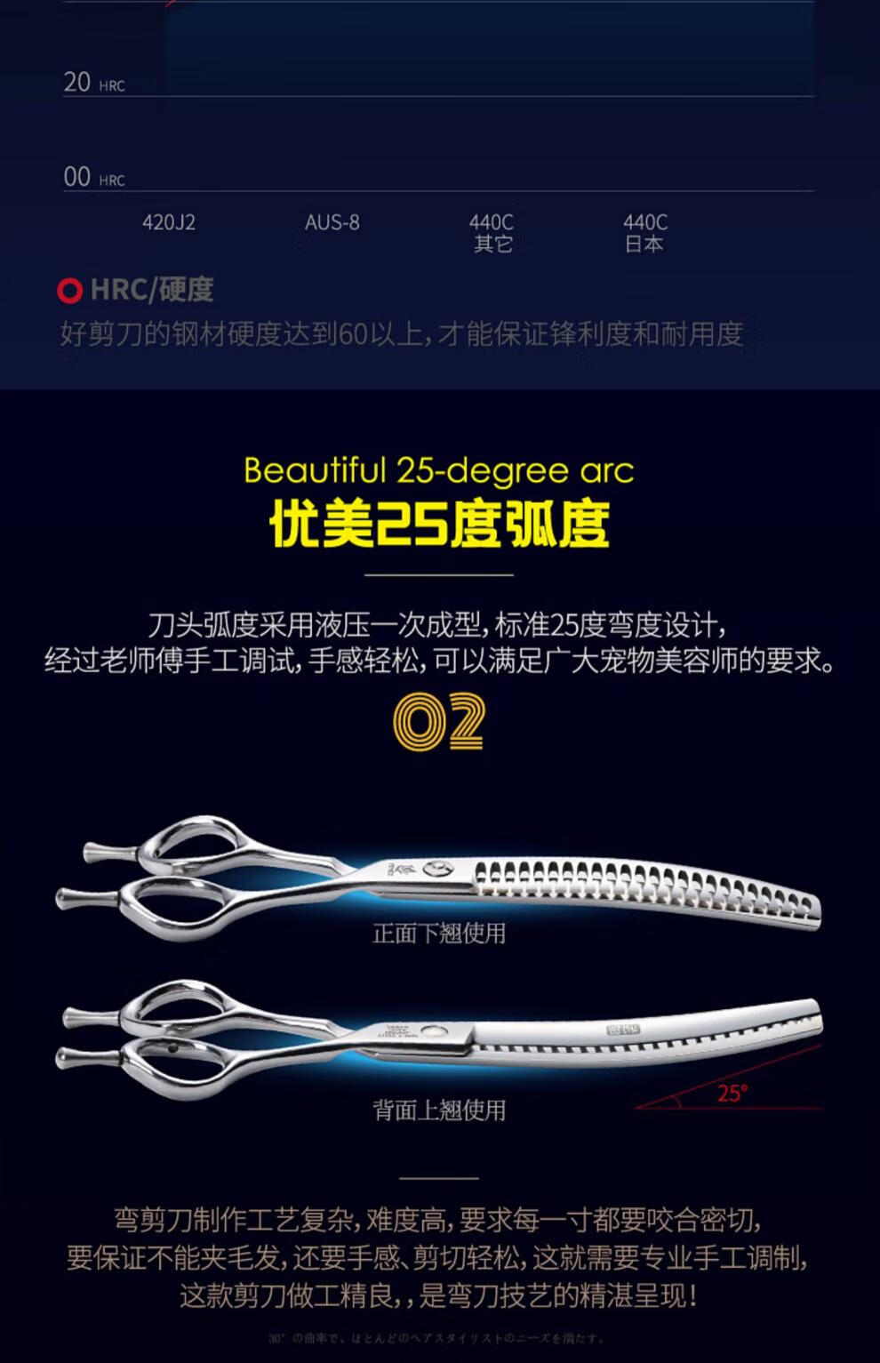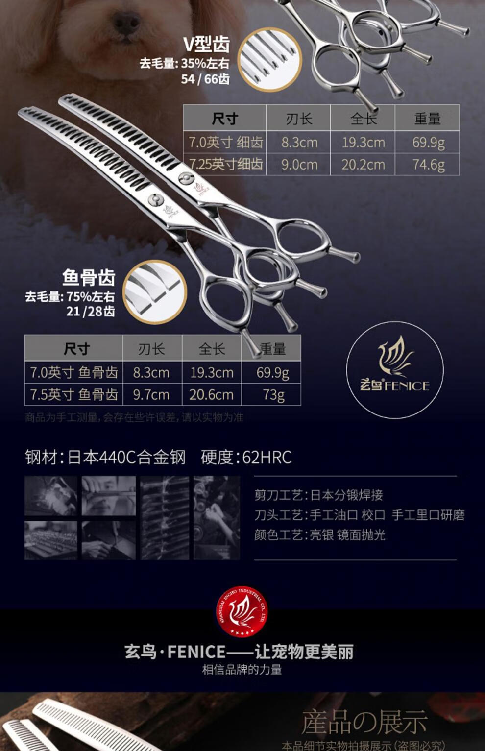 Xuanniao Pet Curved Fishbone Scissors, Thinning and Trimming Tool for Beautician Shop, 7-inch V-shaped Curved Teeth Scissors, 7.5-inch Black Diamond Curved Fishbone Scissors