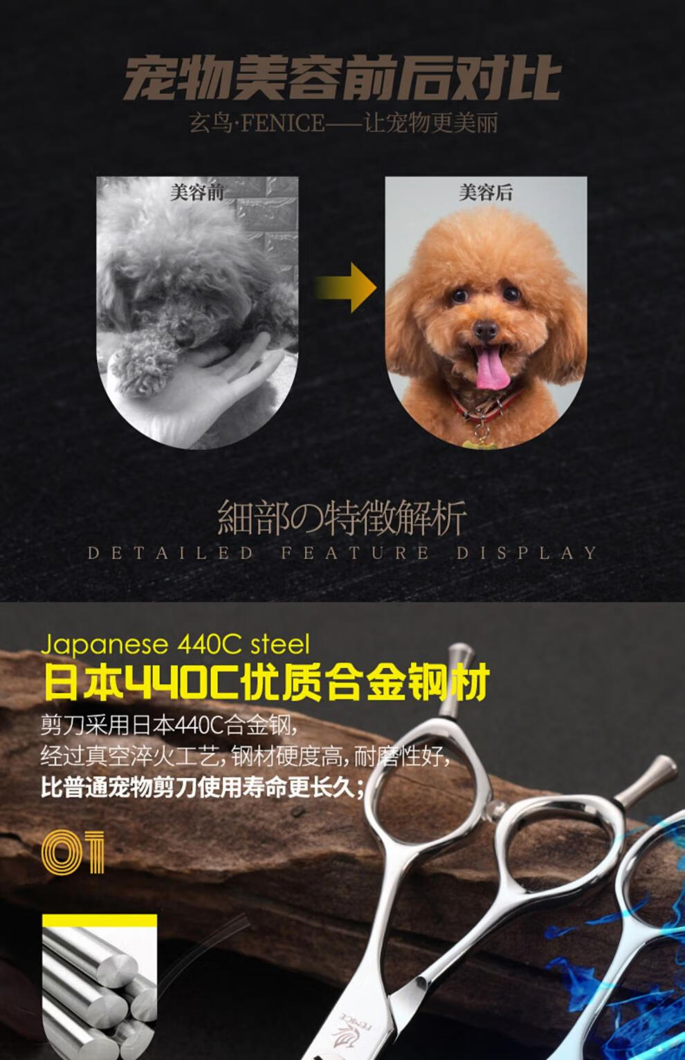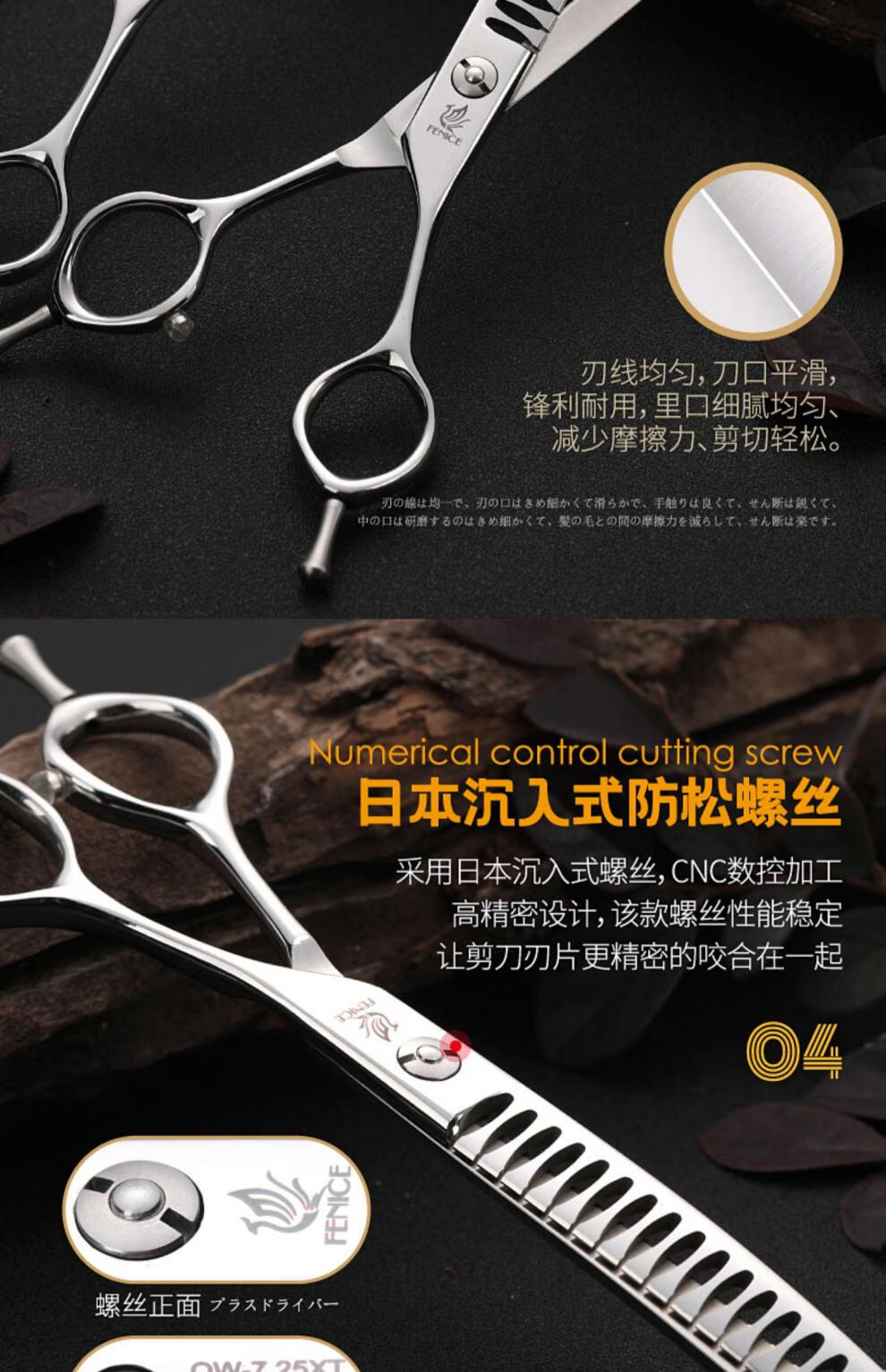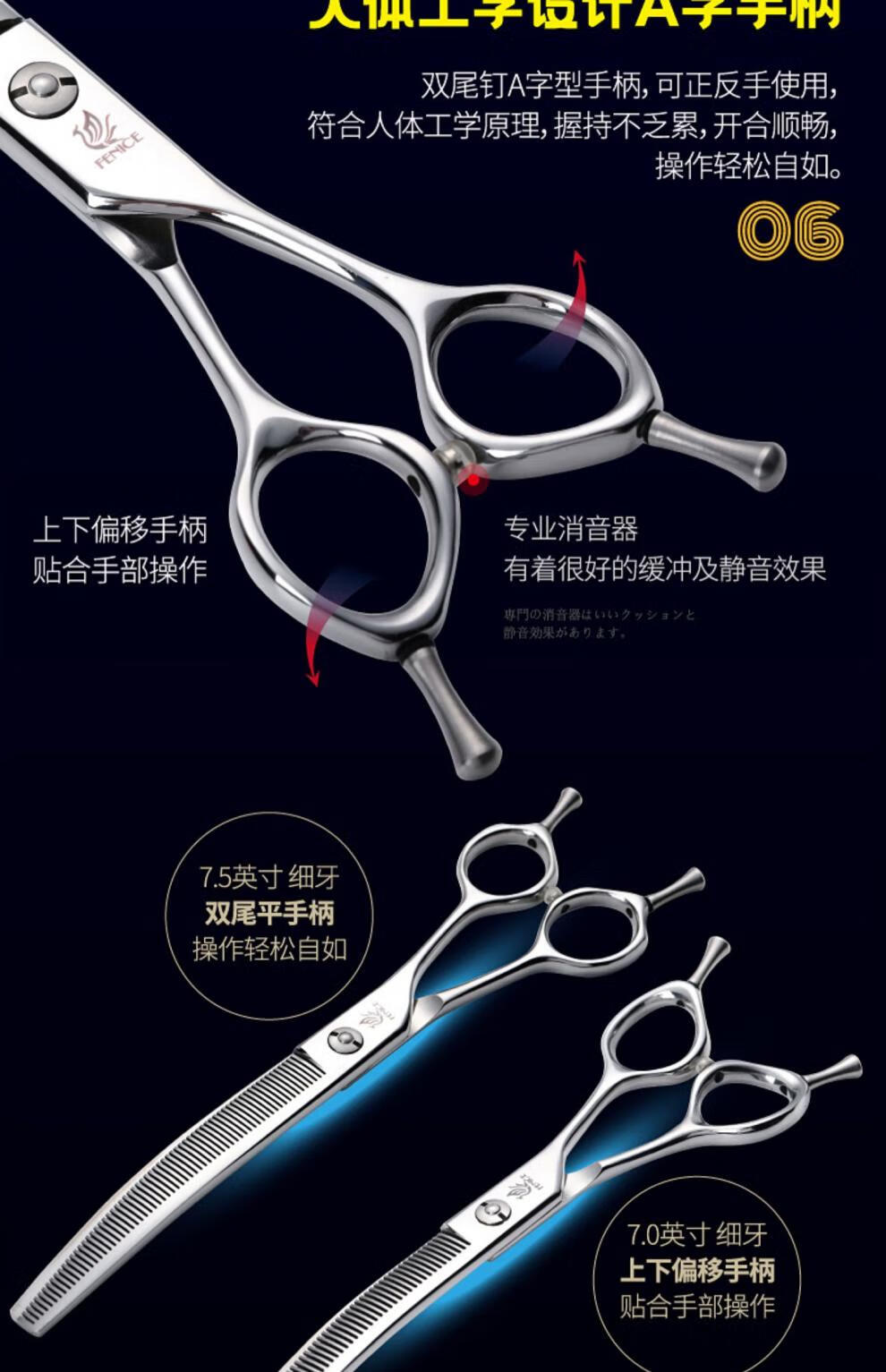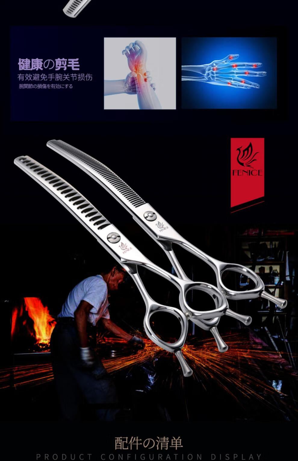 Xuanniao Pet Curved Fishbone Scissors, Thinning and Trimming Tool for Beautician Shop, 7-inch V-shaped Curved Teeth Scissors, 7.5-inch Black Diamond Curved Fishbone Scissors