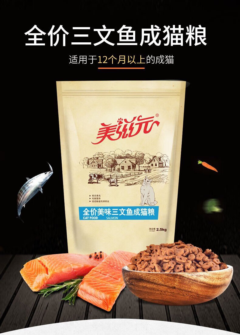 Meiziyuan Meiziyuan cat food salmon flavor adult cat 2.5kg fattening gills 5Jin Jin is equal to 0.5kg kitten British short Meiziyuan salmon young salmon young cat food 2.5kg 2.5kg/bag