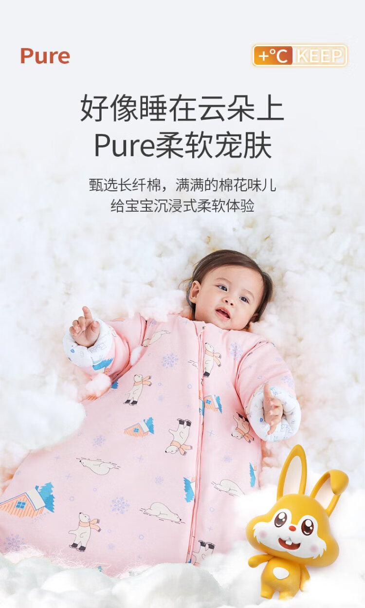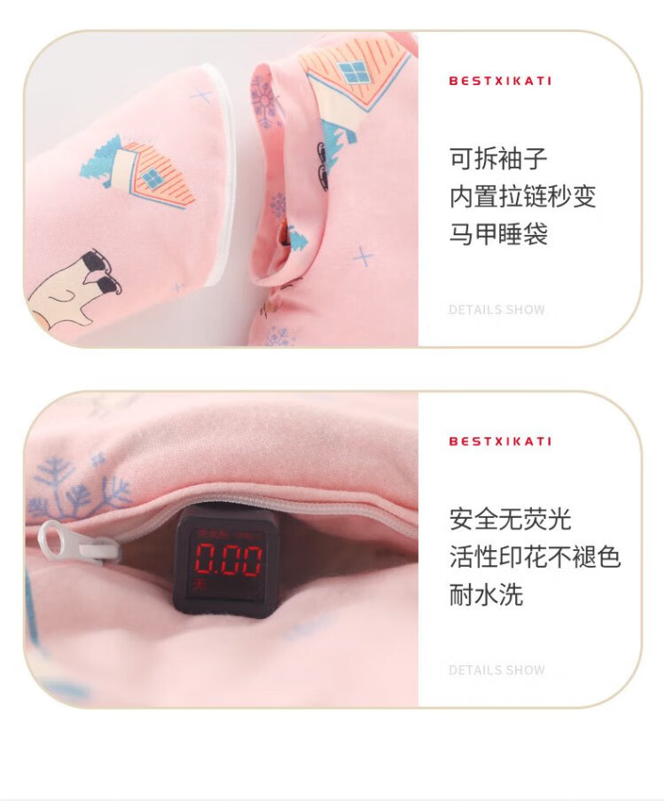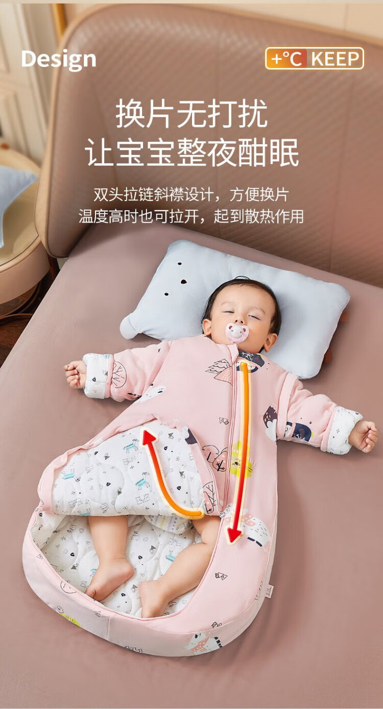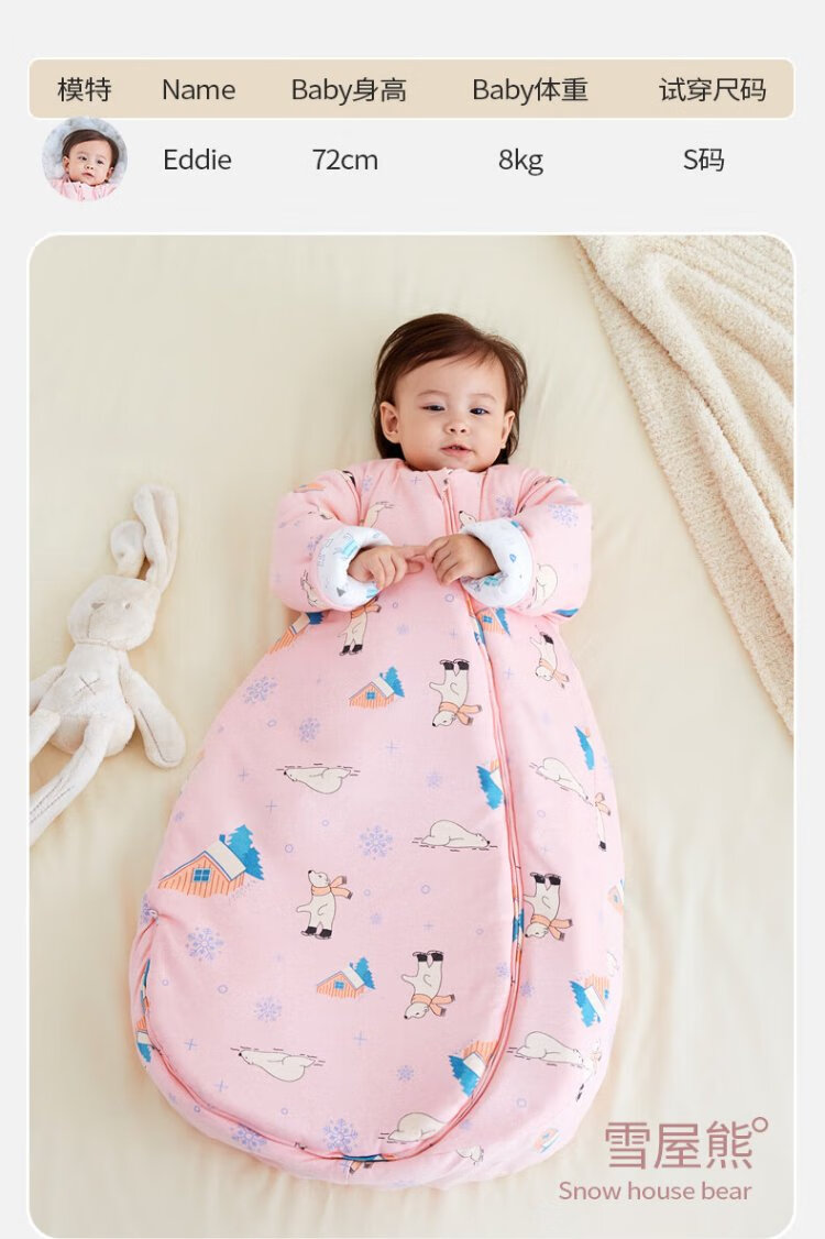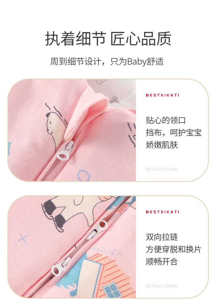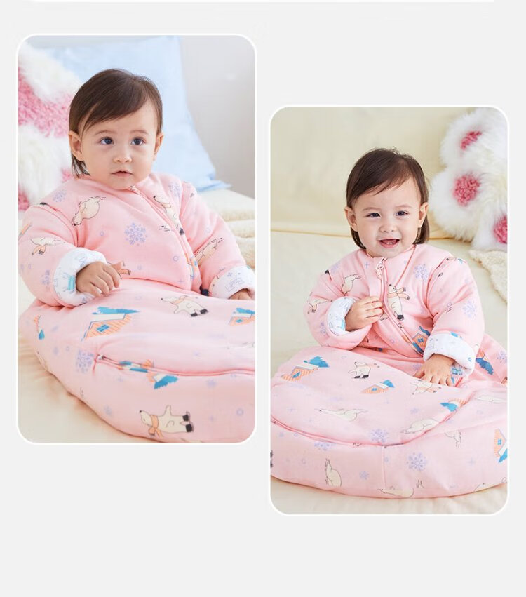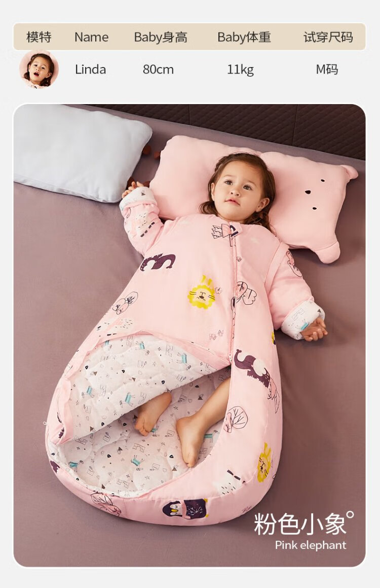 Xikati Baby Sleeping Bag Spring and Autumn Style Newborn Baby Autumn and Winter Thickened Winter Constant Temperature Children Universal Style Medium Thick Constant Temperature Quilted Pink Elephant S Size (Suitable for Height 65-75cm) 0-1 Years Old