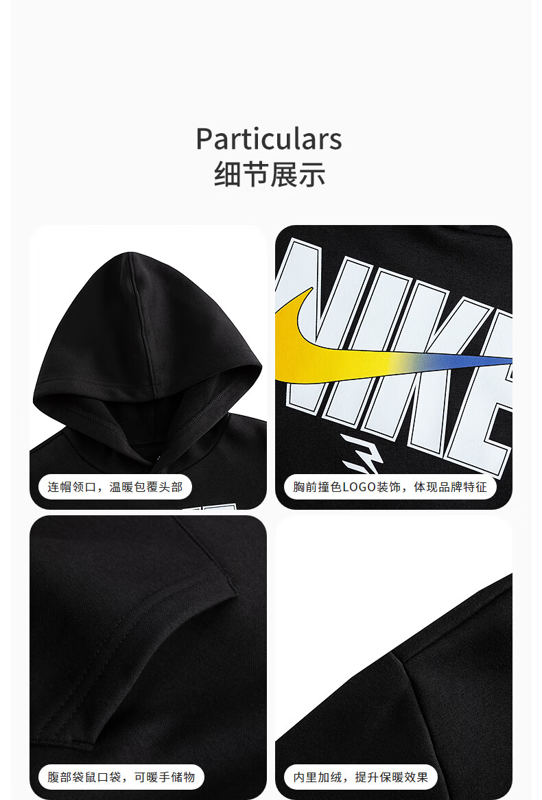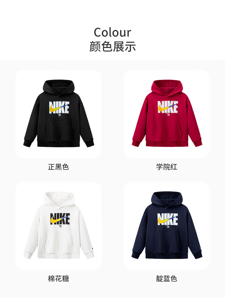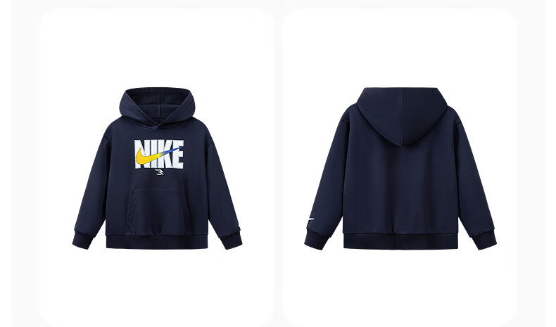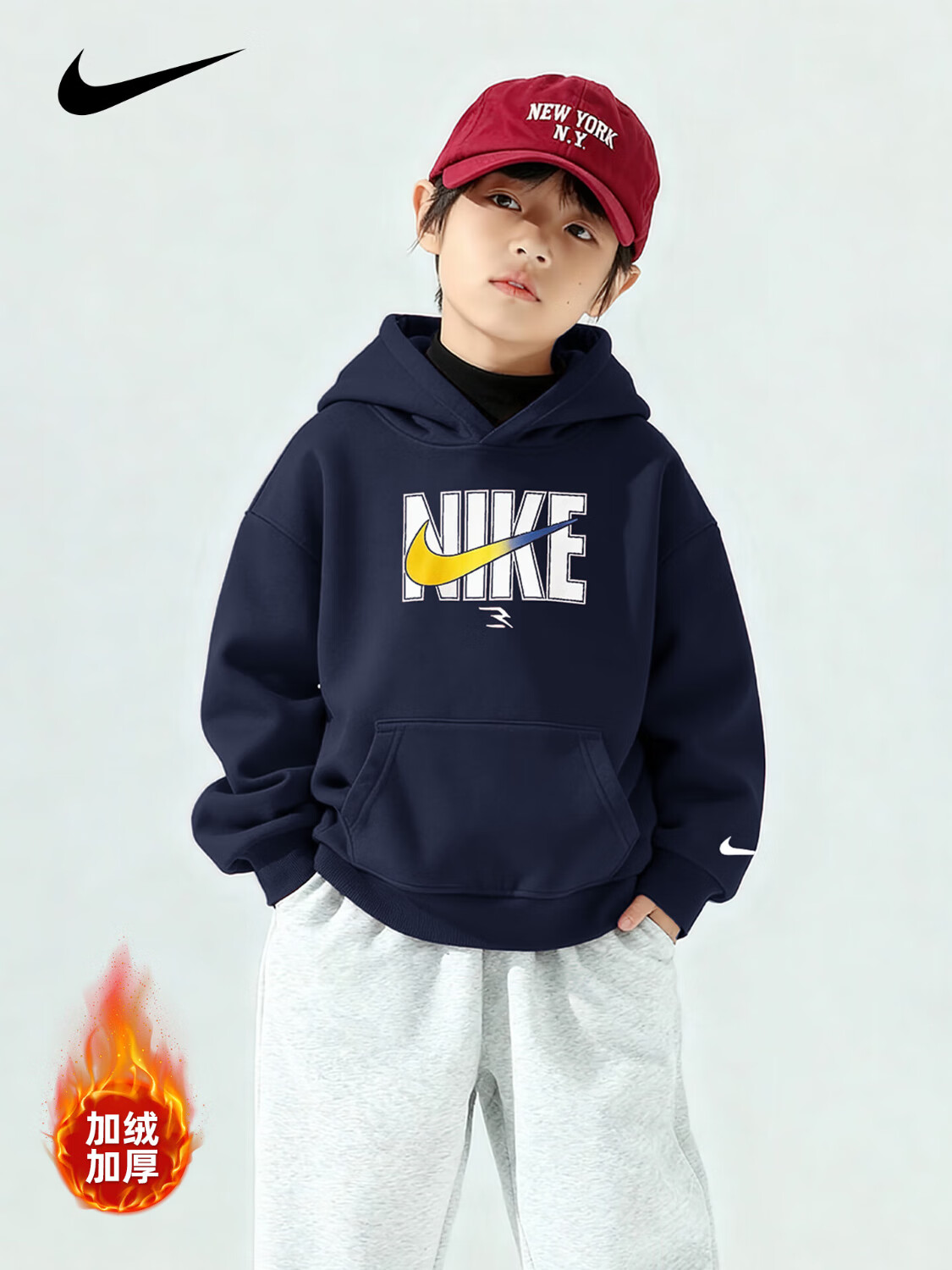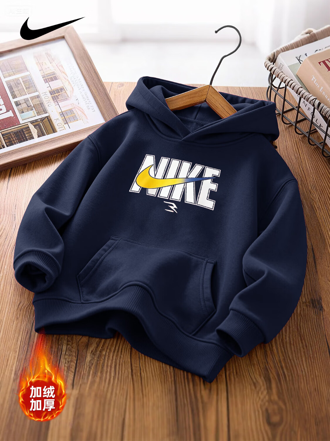 NIKE Nike Boys Hooded Sweatshirt with Velvet 2025 New Autumn and Winter Girls' Clothing Big Children's Thickened Top to Keep Warm in Winter Indigo 2233 Velvet and Thickened High Weight 160/L Recommended Height 152-158cm