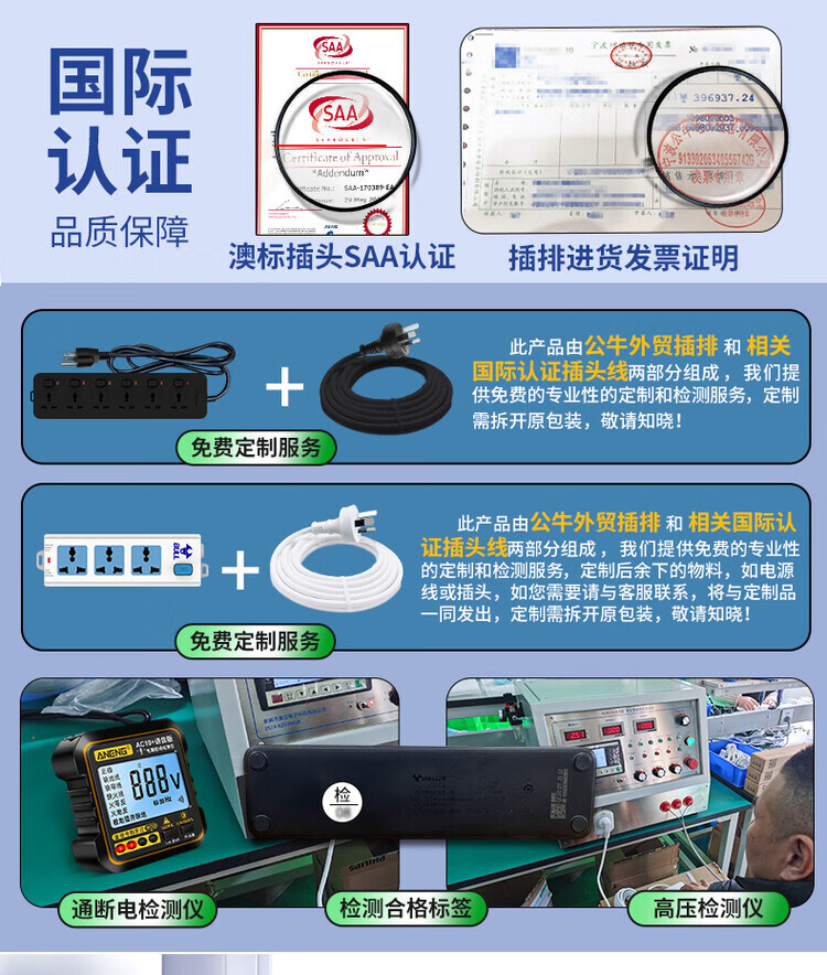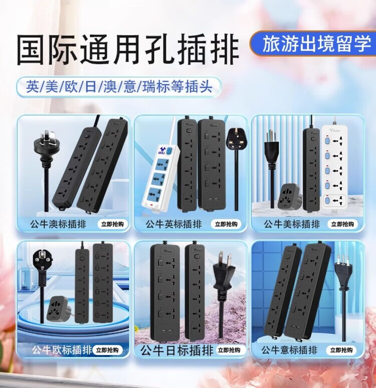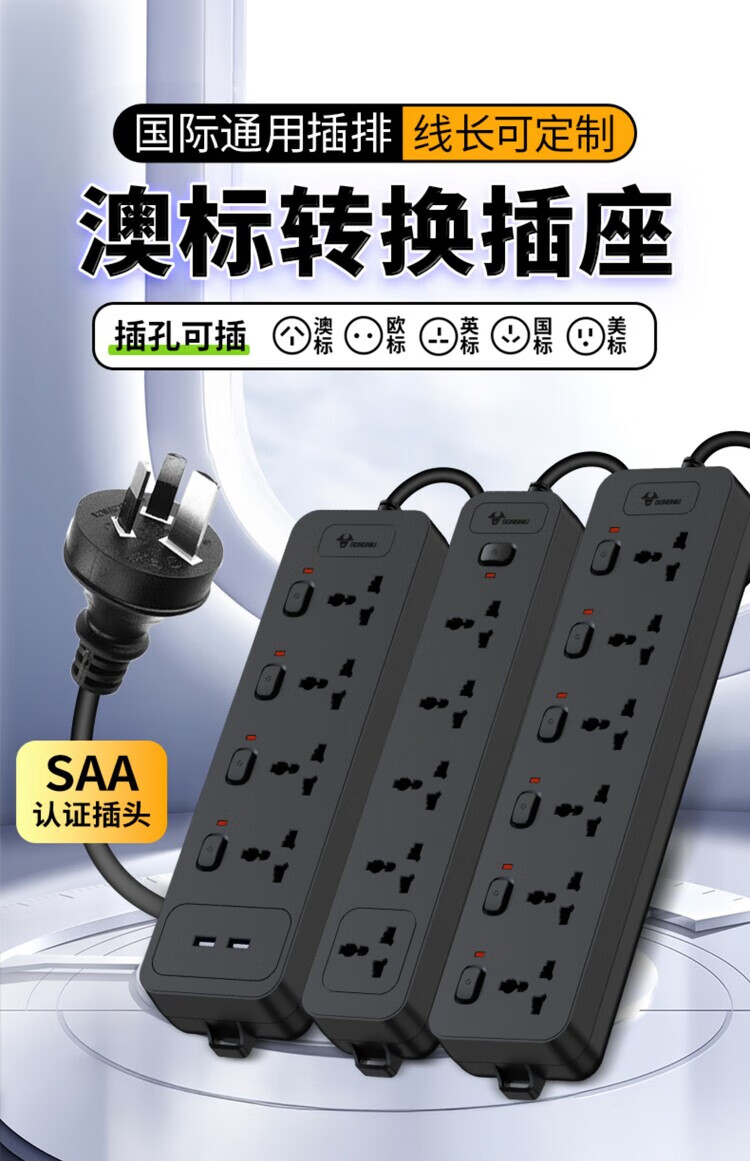 International universal plug strip, British round hole plug strip, Australian conversion plug, British European standard socket, American standard wiring board, custom-made, large quantity, favorable 1.5 meters