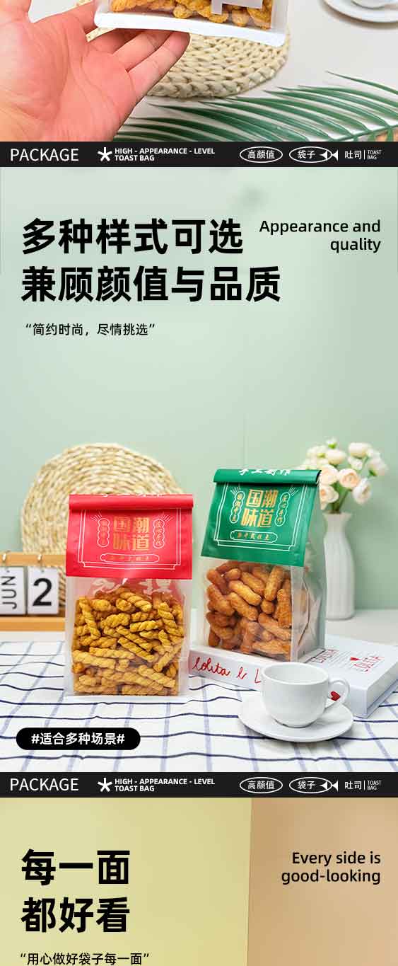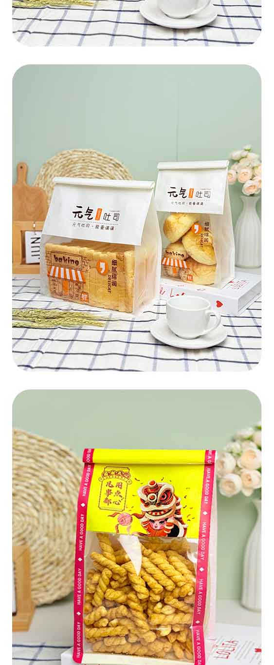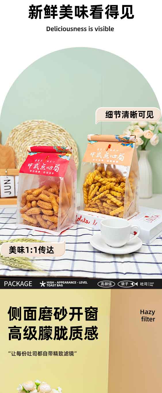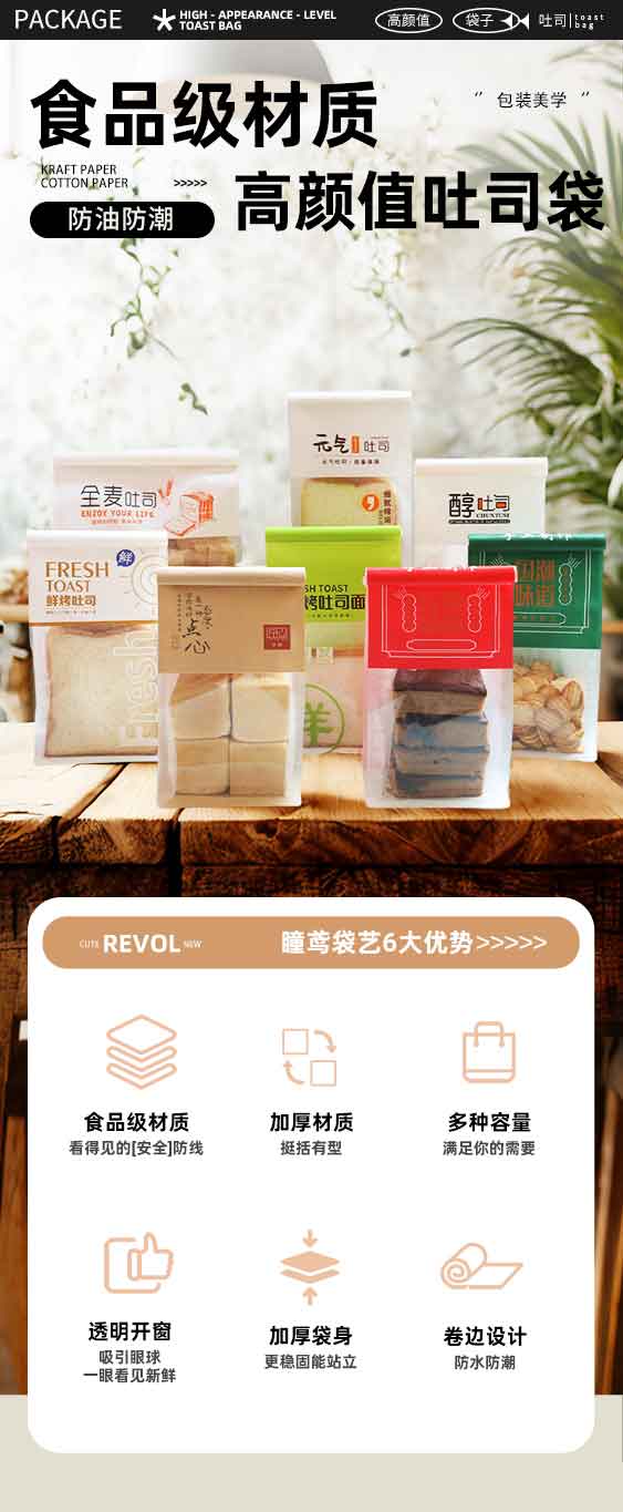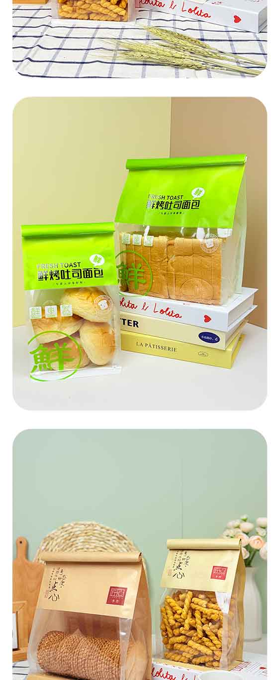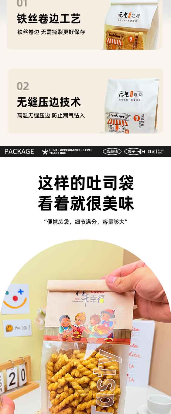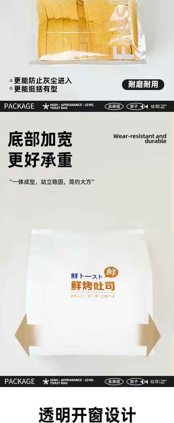 Toast packaging bag freshly baked 450g rolled edge wire seal self-sealing sliced bread bag food grade whole wheat transparent vitality large size 500 pieces