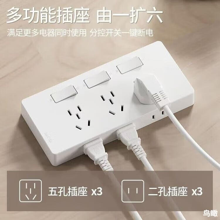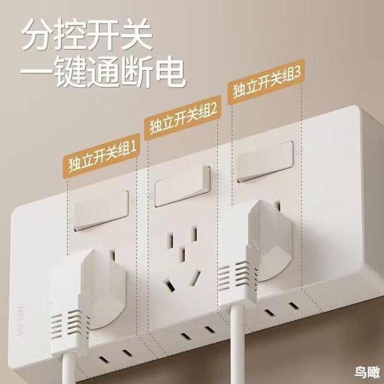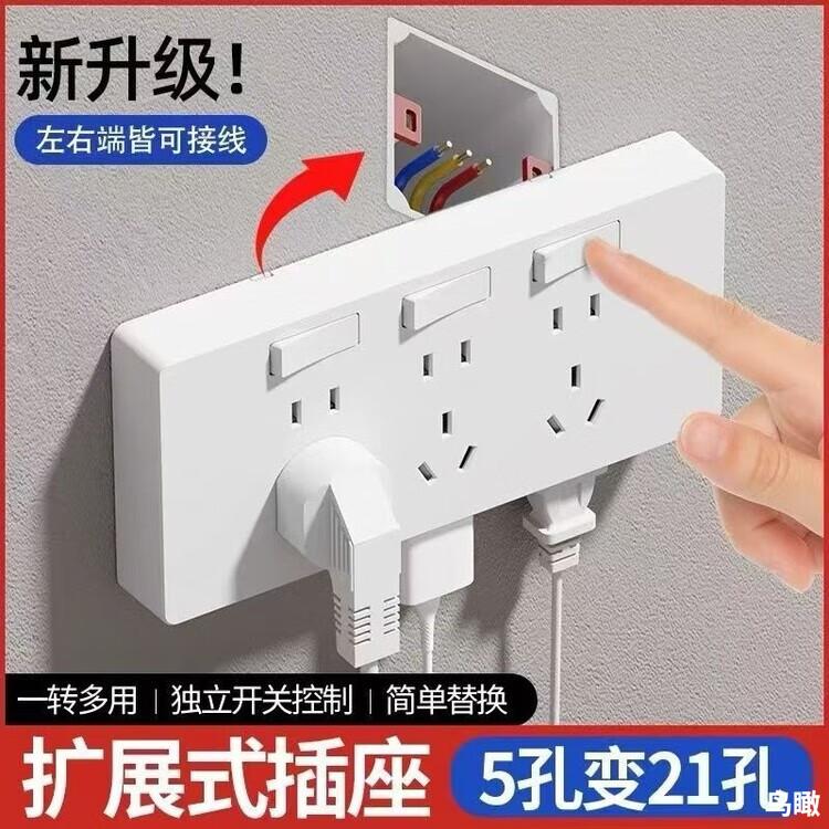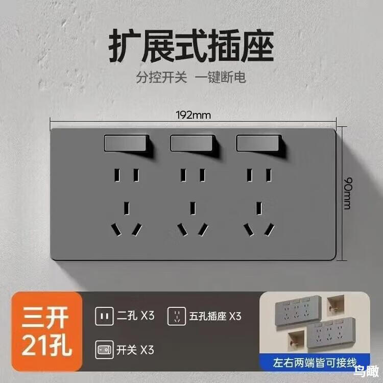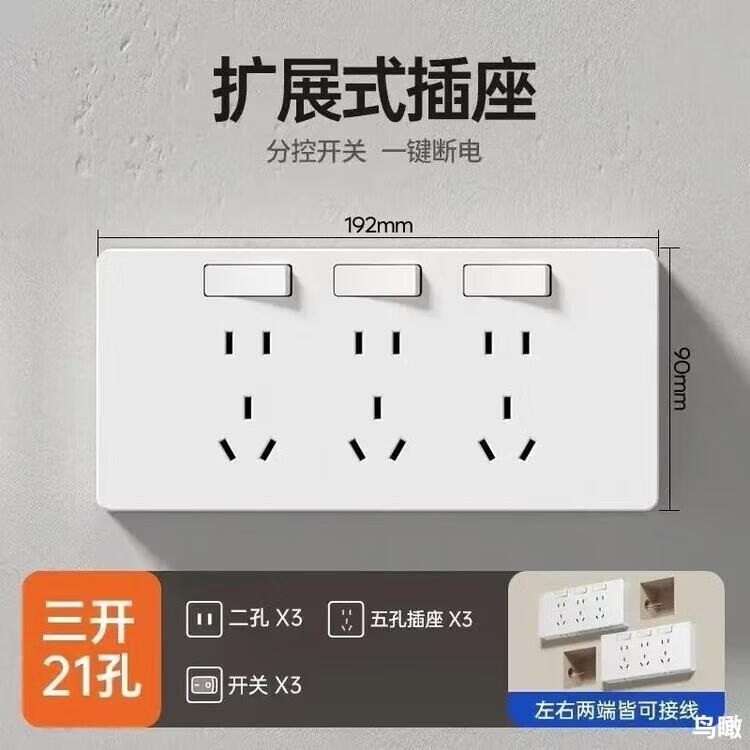 Expanded socket surface-mounted triple switch with kitchen one-button power-off 21-hole switch with combination 21-hole one-piece power-off white