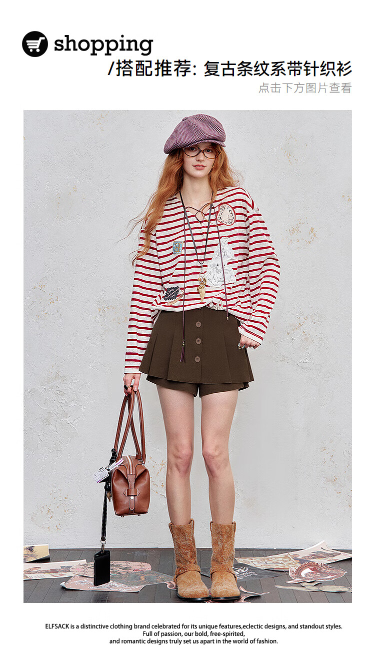Fairy's Pocket Retro Brown High Waist Shorts Women's 2025 Autumn and Winter New Style Small Design Skirt Pants Retro Brown M