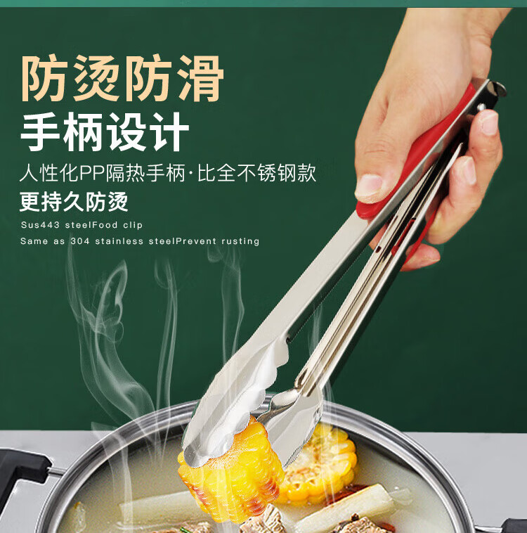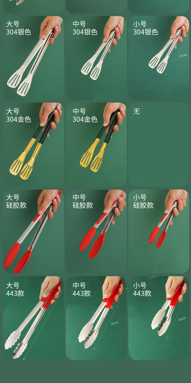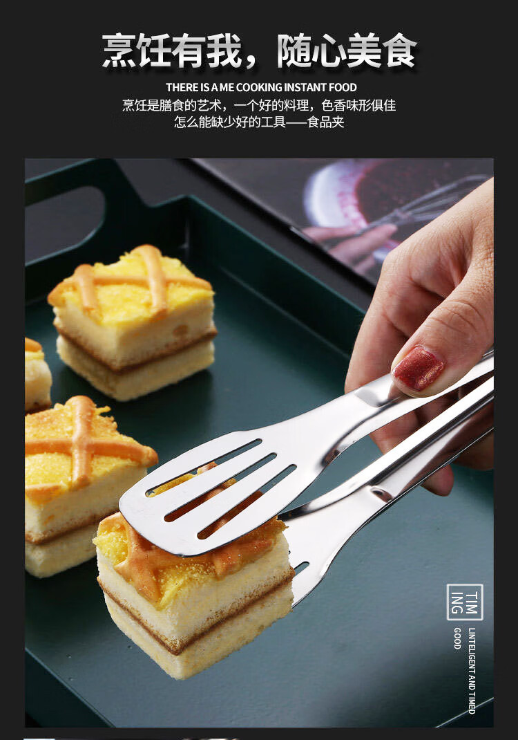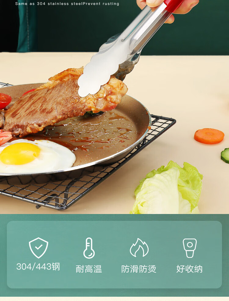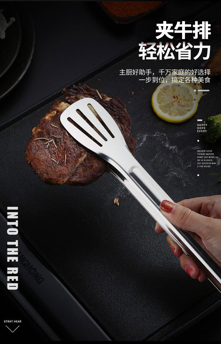 Cat tongs for kitchen commercial barbecue food, stainless steel thickened cooked food, cold dishes, grilled sausages, special tongs for stewed vegetables, thick steel flat head food tongs (pack of 3), value package