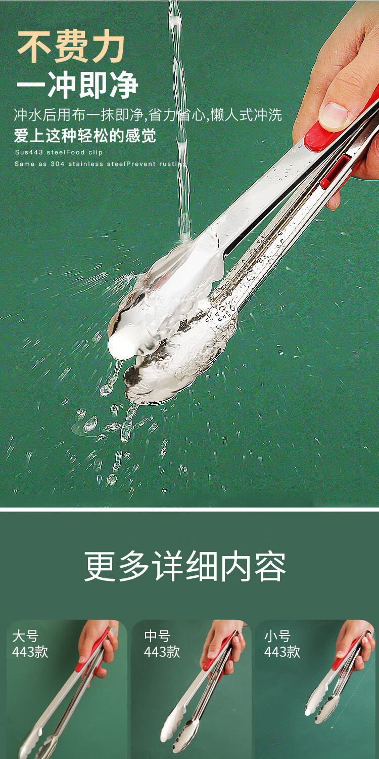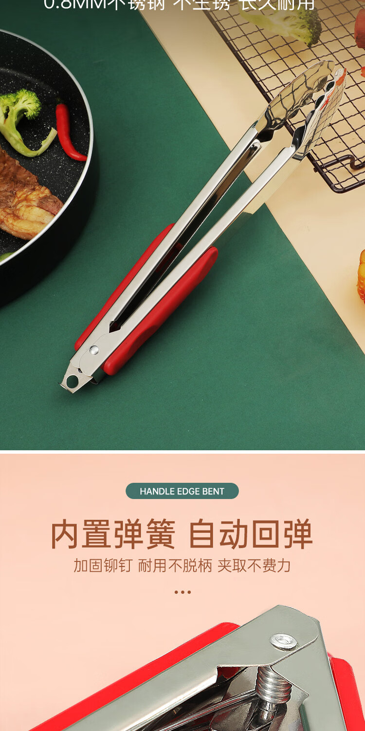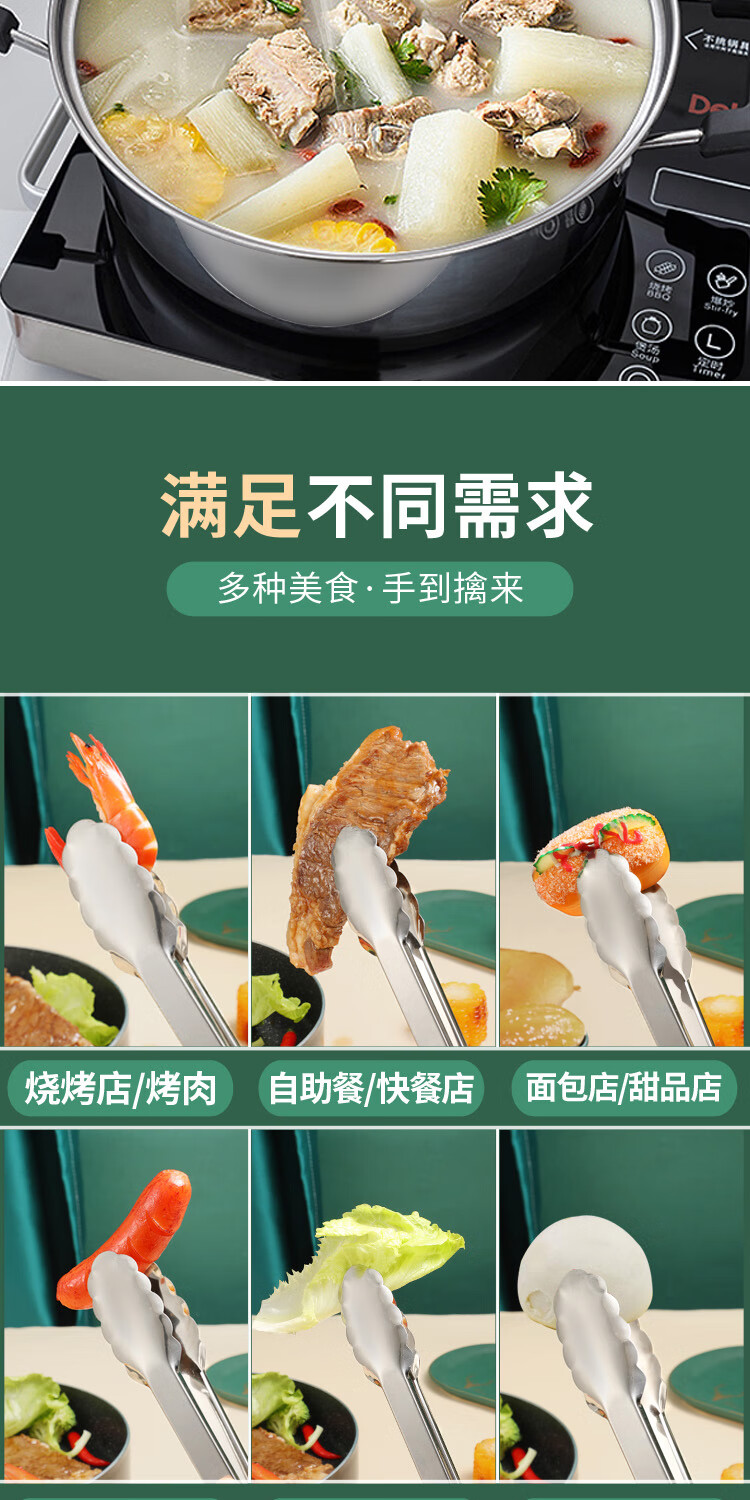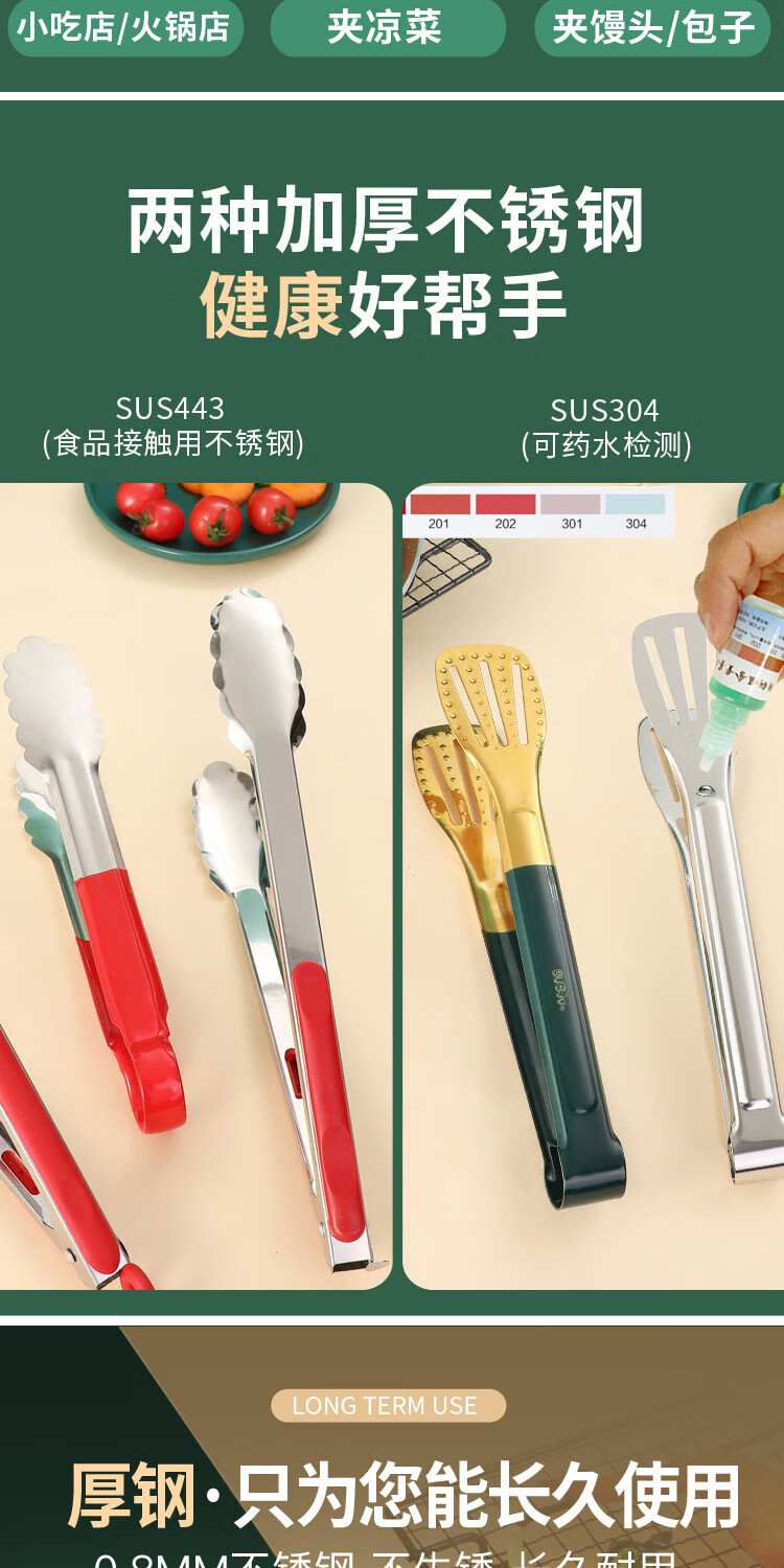 Cat tongs for kitchen commercial barbecue food, stainless steel thickened cooked food, cold dishes, grilled sausages, special tongs for stewed vegetables, thick steel flat head food tongs (pack of 3), value package