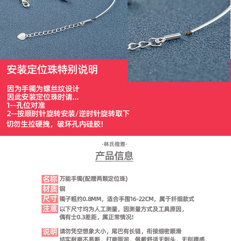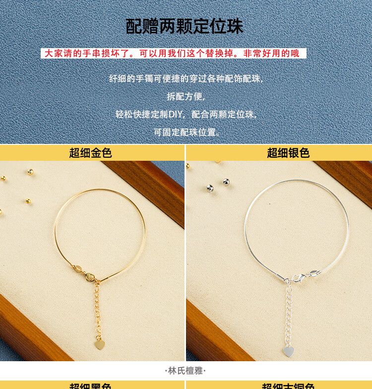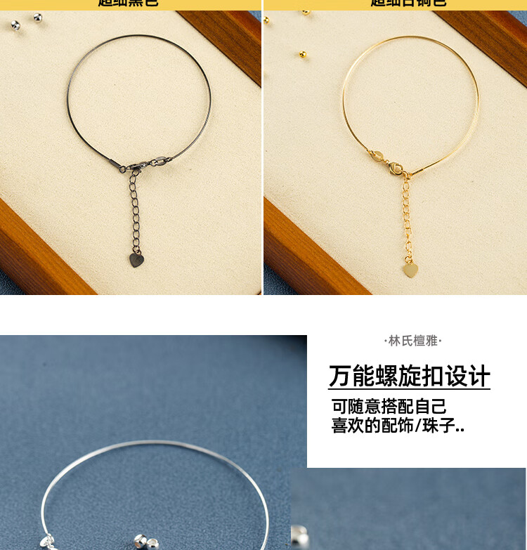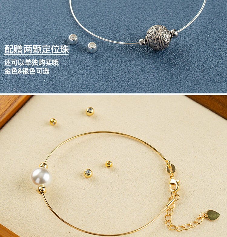 Cicada Yinglu 0.8mm pierced hole extremely fine universal bracelet DIY material string gold beads pearl passepartout bracelet accessories for women 0.8mm - extremely thin bracelet - silver free 2 positioning beads