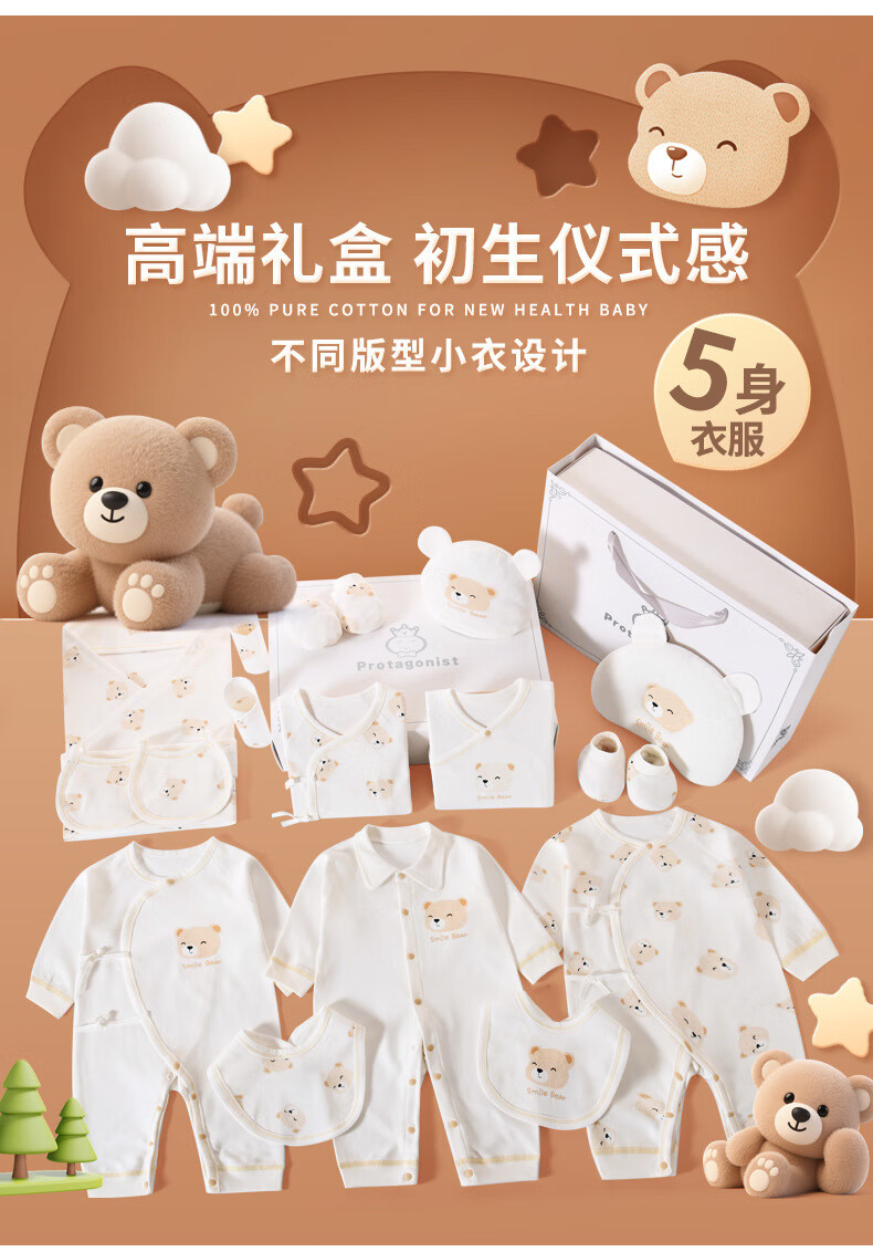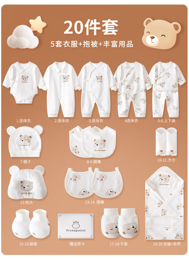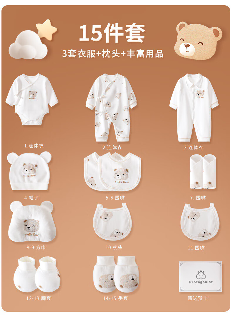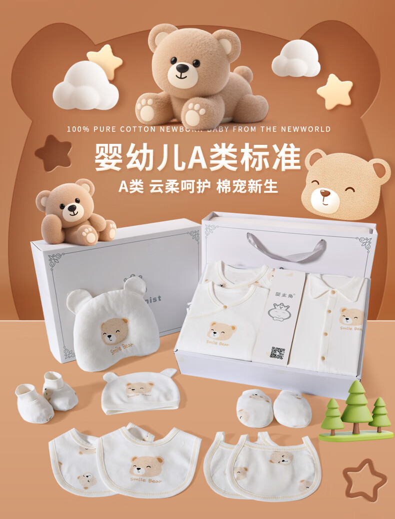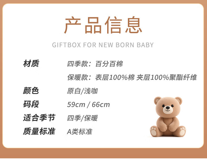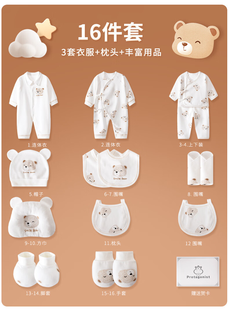 Baby Gift Box Autumn and Winter Baby Clothes Set Bear Baby Newborn Full Moon Meeting Gift Maternity Bag Beige 16-piece Set Four Seasons - Gift Box Packaging 59cm Baby 0-3 Months