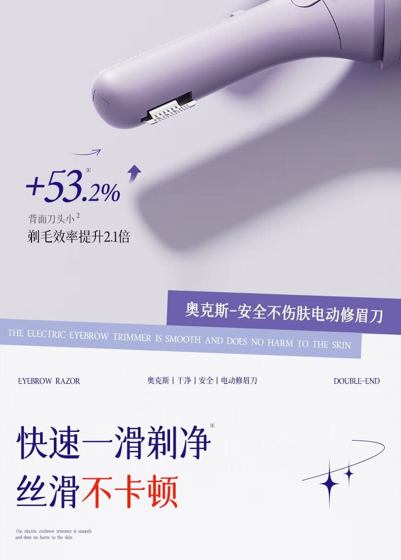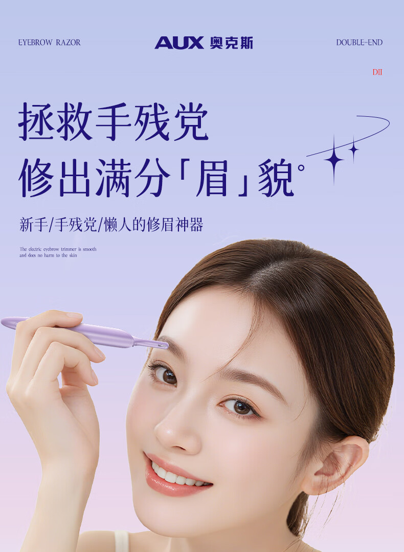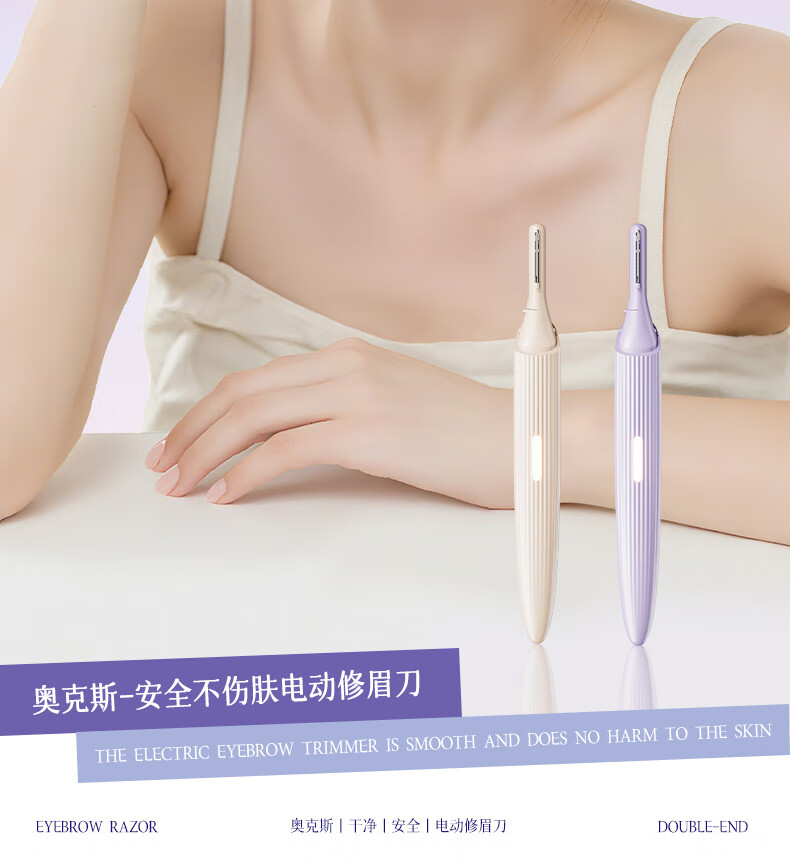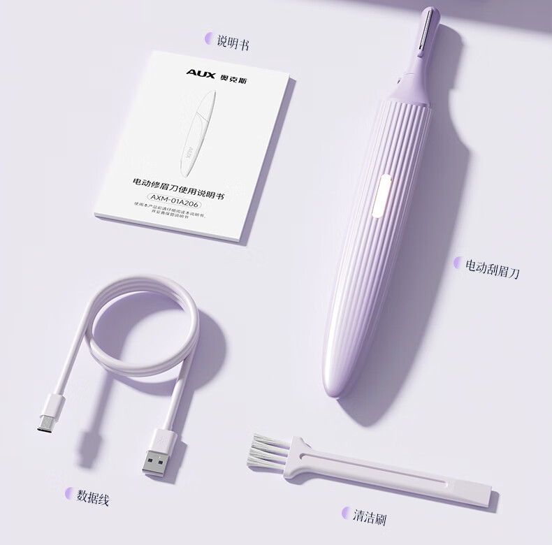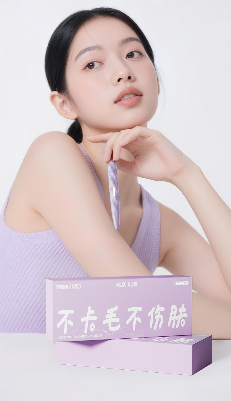 AUX electric eyebrow trimmer for women, an automatic eyebrow trimming tool for shaving eyebrows, a safe eyebrow trimmer for newbies as a New Year's gift for girlfriends. The top version is purple, safe and does not hurt the skin + double blades are cleaner