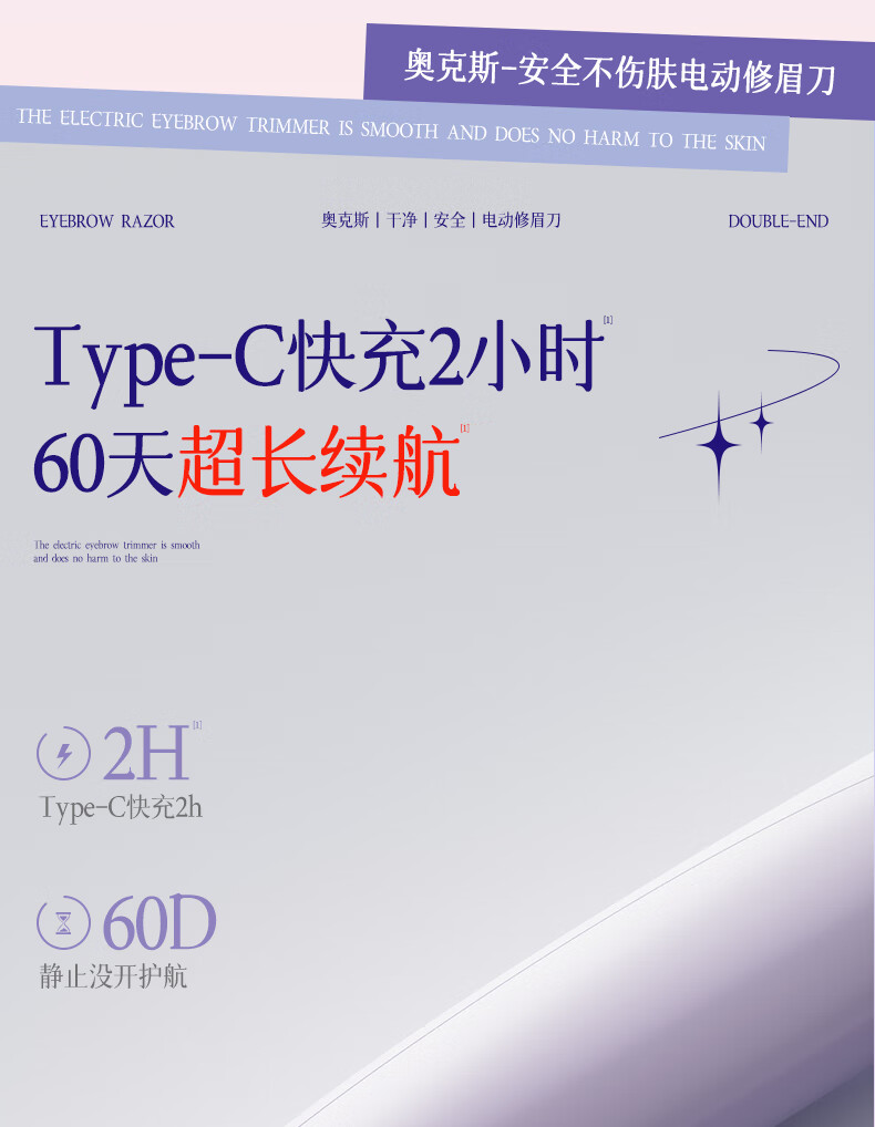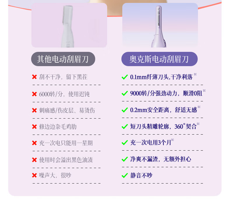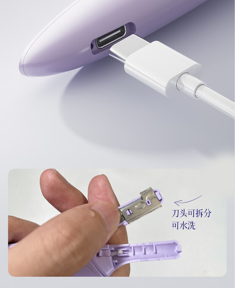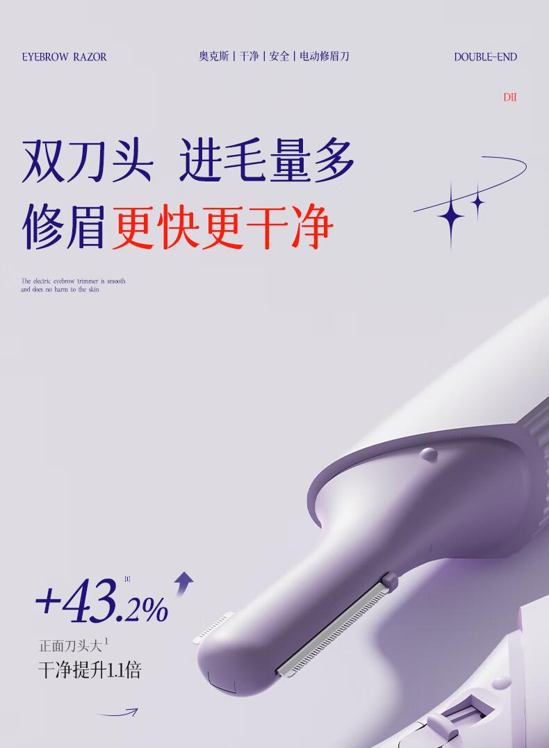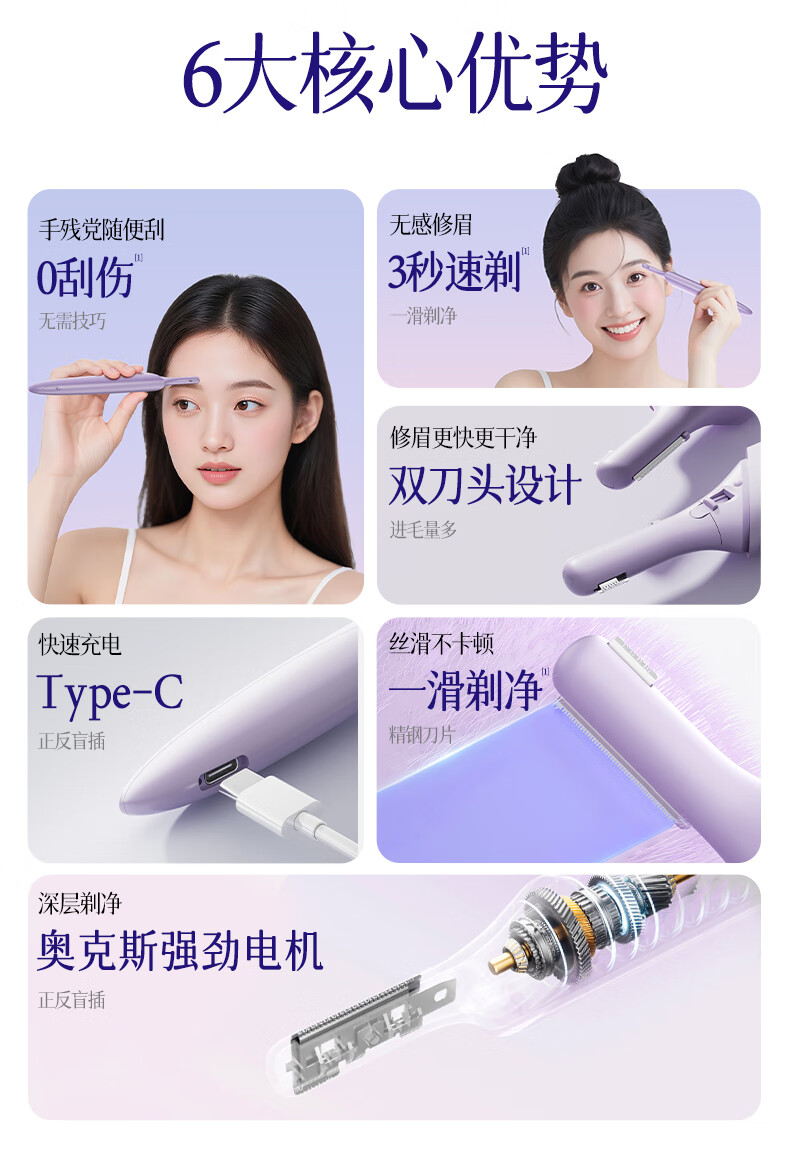 AUX electric eyebrow trimmer for women, an automatic eyebrow trimming tool for shaving eyebrows, a safe eyebrow trimmer for newbies as a New Year's gift for girlfriends. The top version is purple, safe and does not hurt the skin + double blades are cleaner