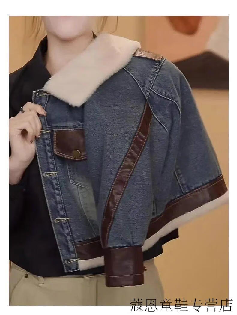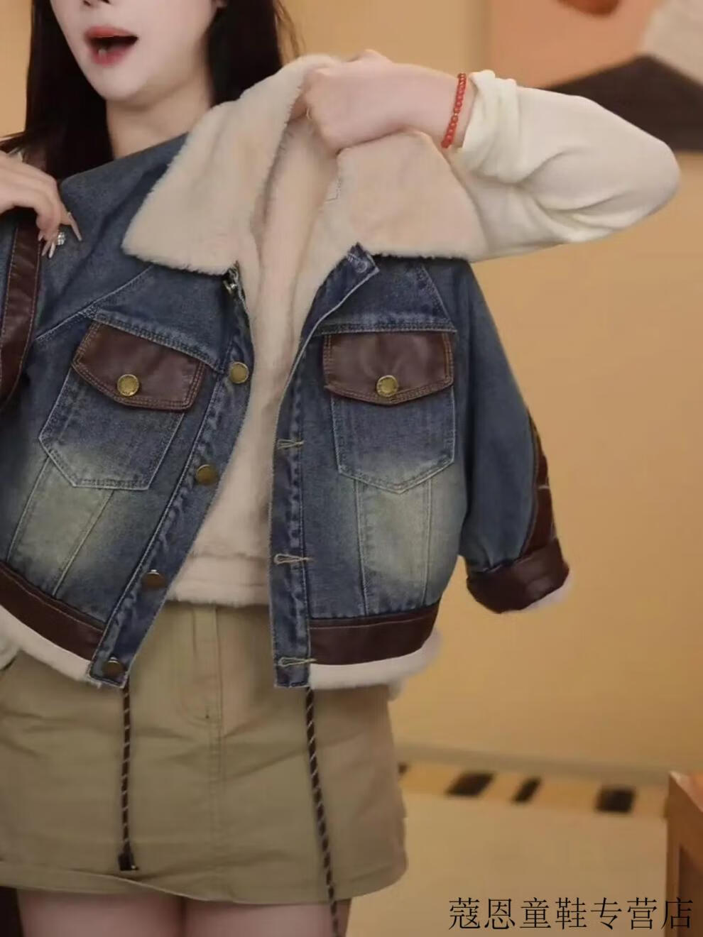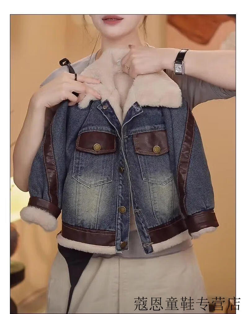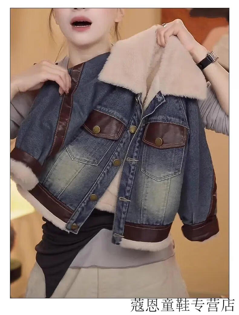 Disney (Disney) children's winter velvet denim jacket 2025 new boys' handsome and fashionable one-piece velvet thickened jacket top trendy denim jacket with leather 120