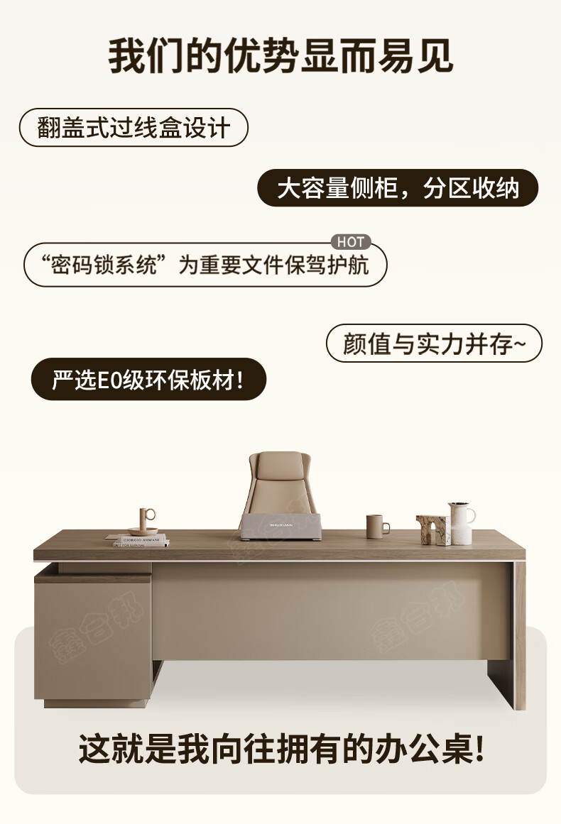 Xinhebang boss desk office desk and chair, elegant desk supervisor single office desk and chair, simple modern manager table 2.0 meters boss table