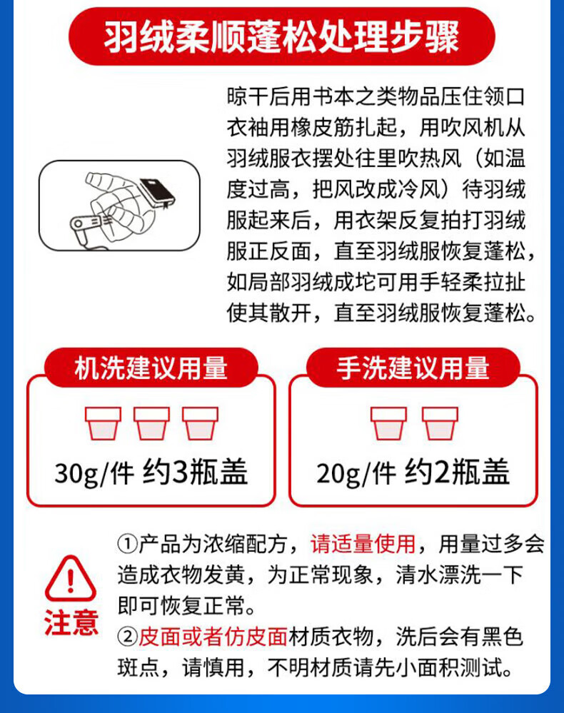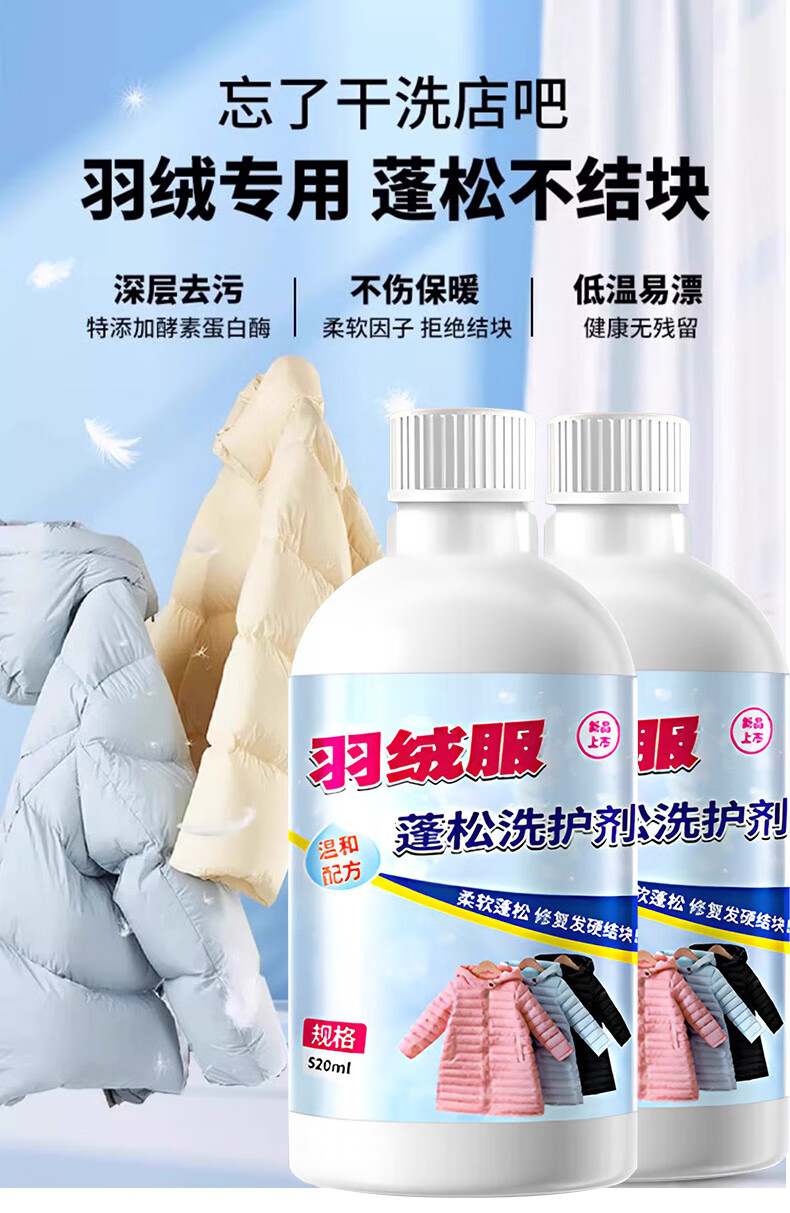Ruizhou down jacket fluffy detergent washing machine special cleaning agent laundry detergent decontamination shrinking fluffy reducing agent artifact 3Jin Jin equal to 0.5 kg pack soft and fluffy + repair caking