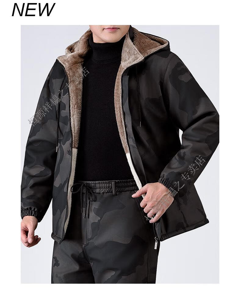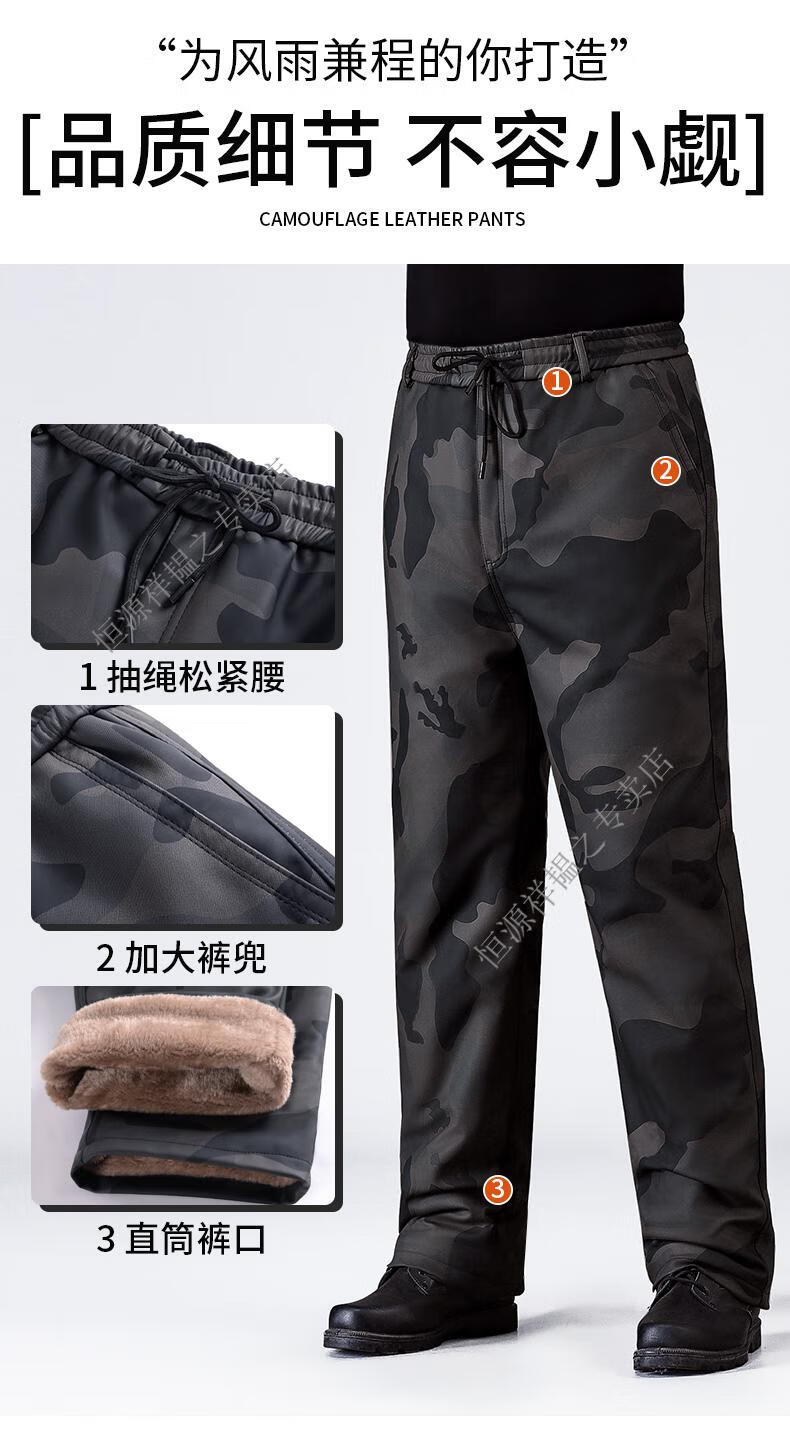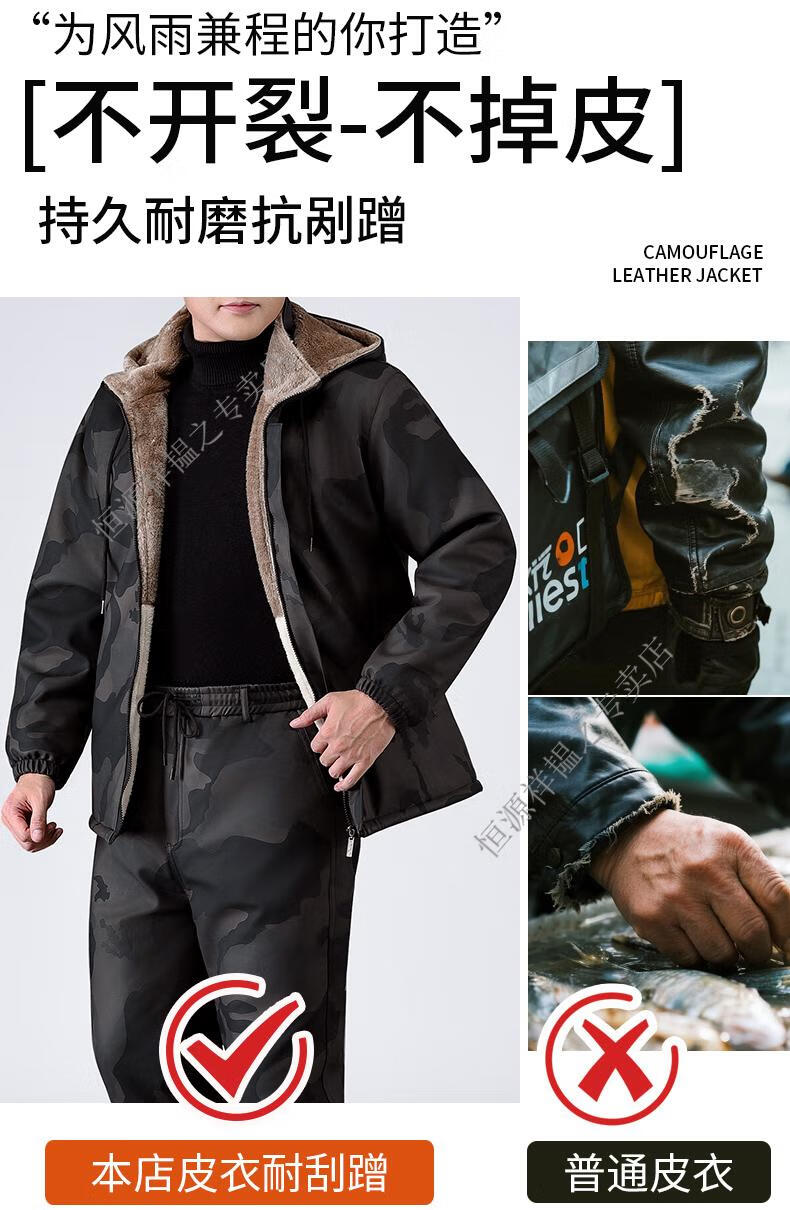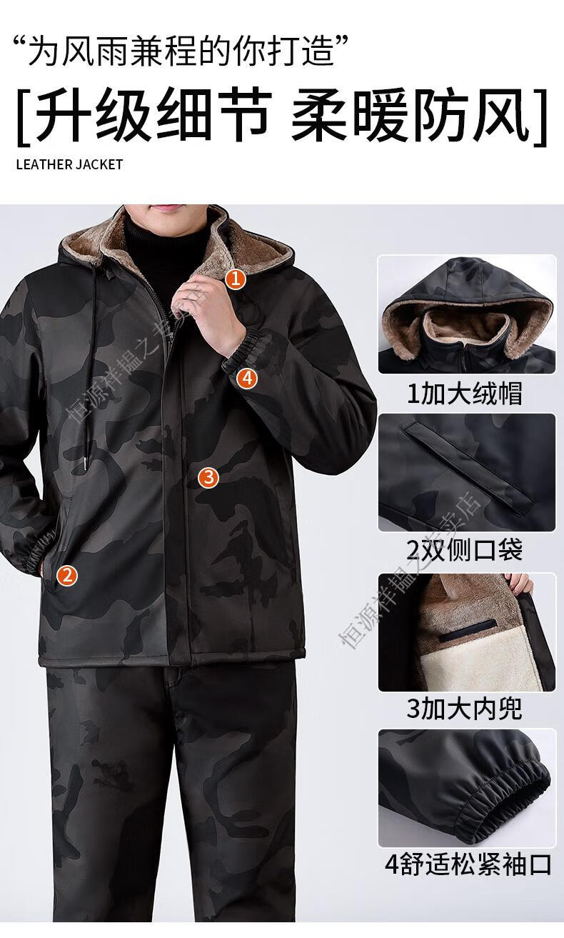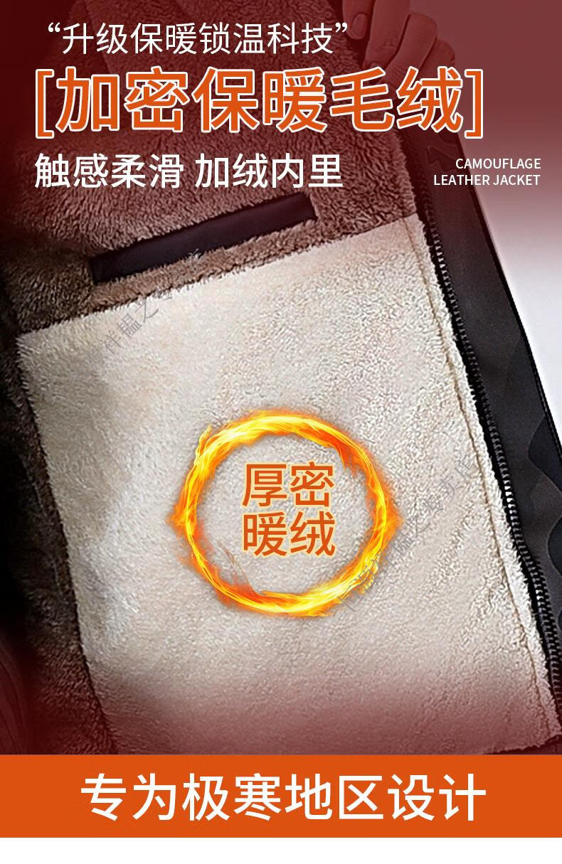 Hengyuanxiang Camouflage Leather Jacket Men's Velvet Thickened Winter Motorcycle Riding Warm Takeaway Windproof Loose Leather Pants Set Camouflage Shoulder Guard Leather Jacket 3XL Suitable for weight 140-150Jin Jin equals 0.5 kg