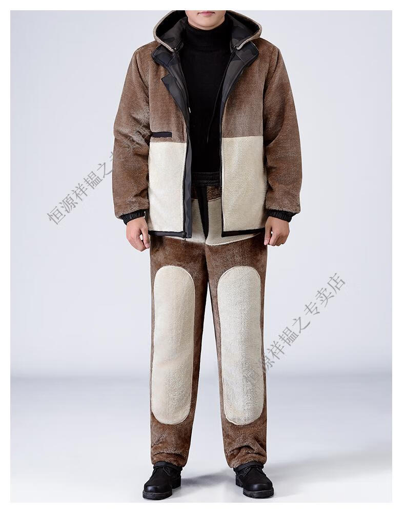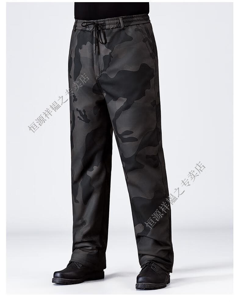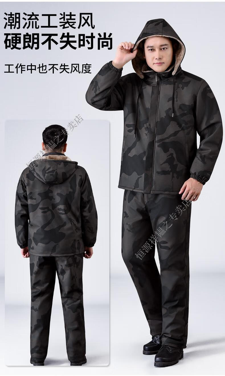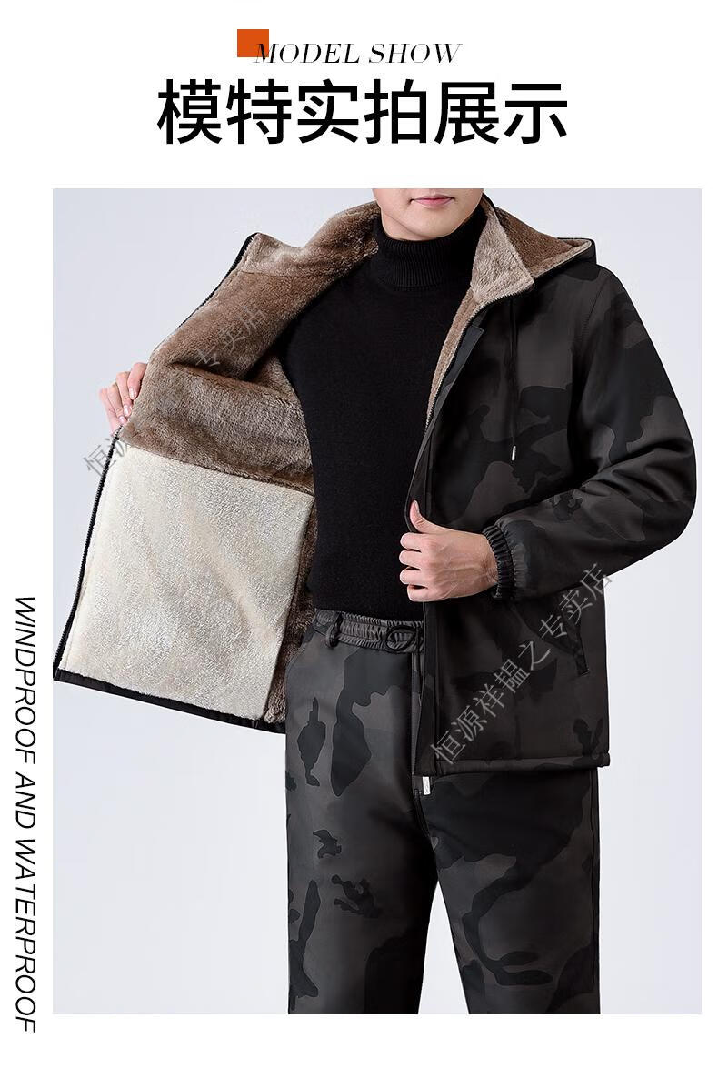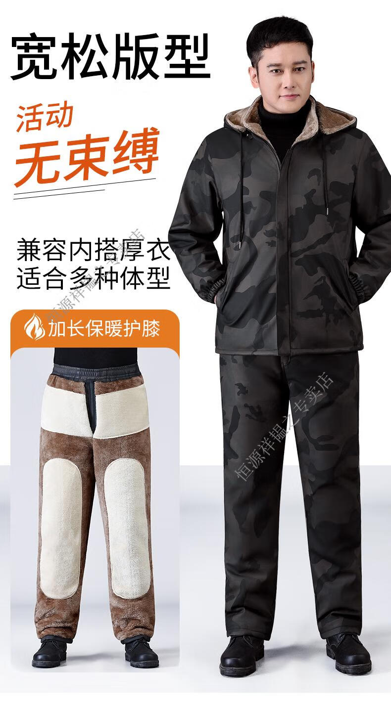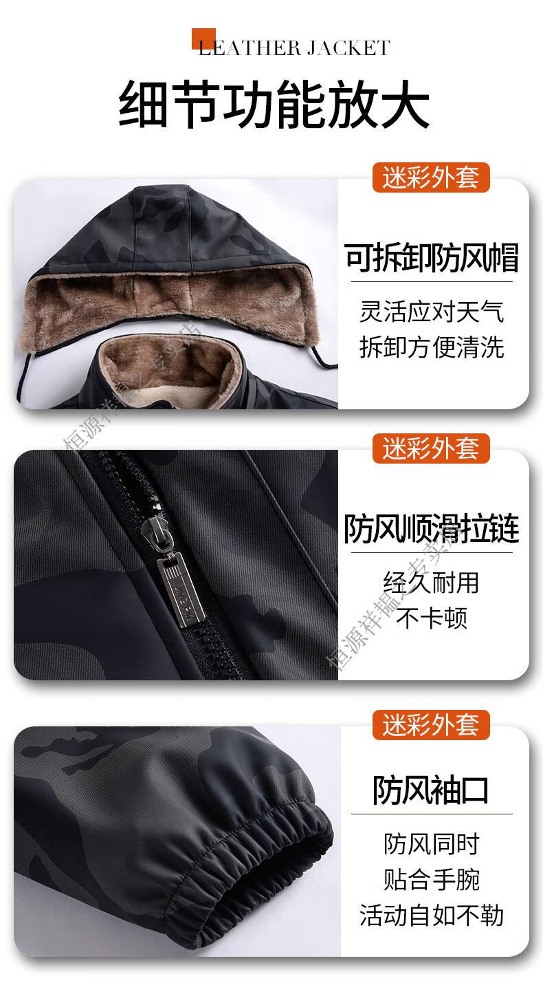 Hengyuanxiang Camouflage Leather Jacket Men's Velvet Thickened Winter Motorcycle Riding Warm Takeaway Windproof Loose Leather Pants Set Camouflage Shoulder Guard Leather Jacket 3XL Suitable for weight 140-150Jin Jin equals 0.5 kg