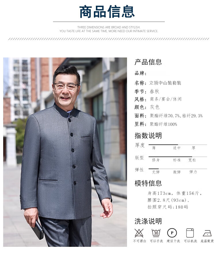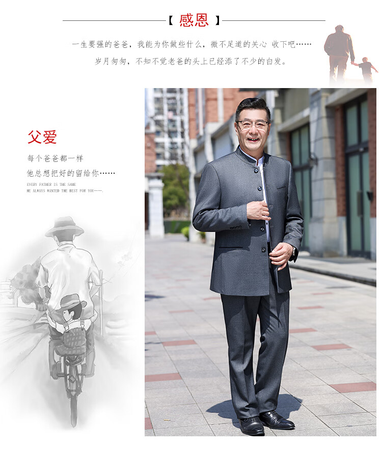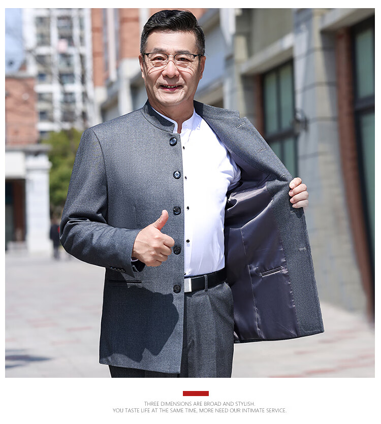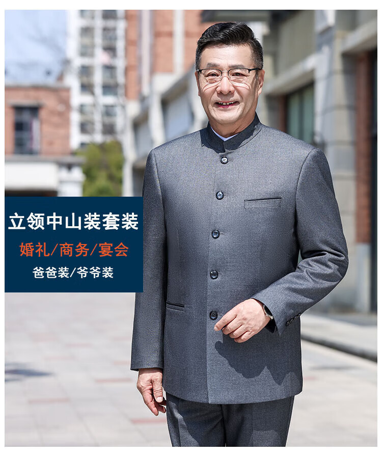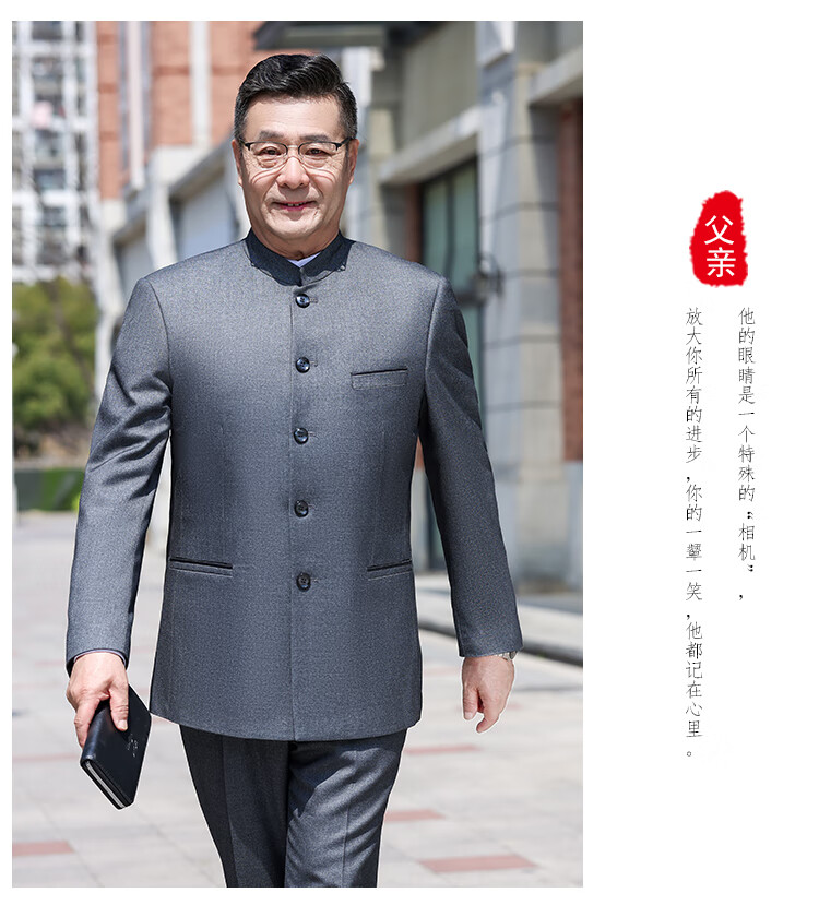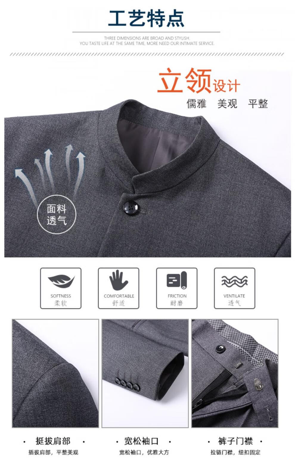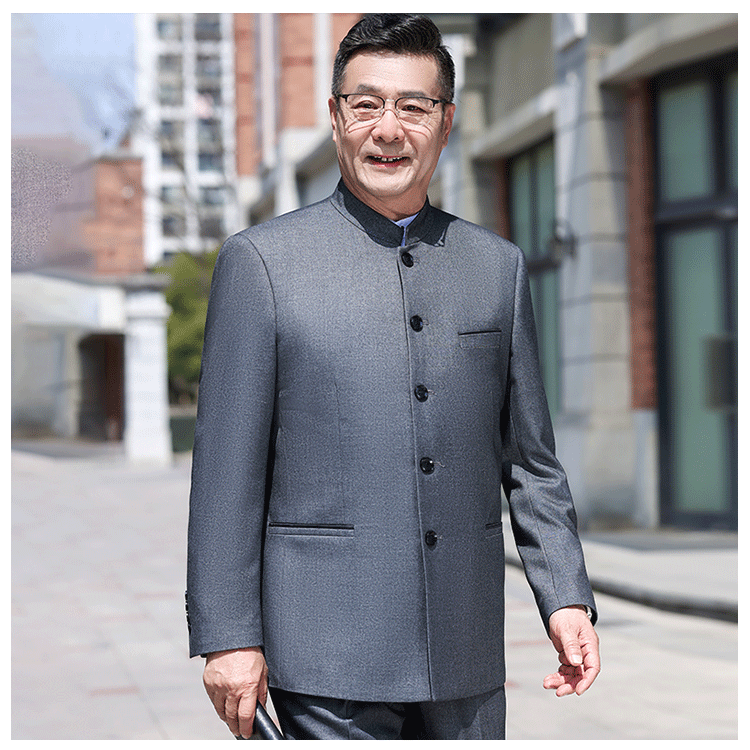 Pierre Cardin Wedding Dad Chinese tunic suit for men's wedding Chinese style classic new Chinese style improved middle-aged and elderly clothing Gray top + pants S 165/72