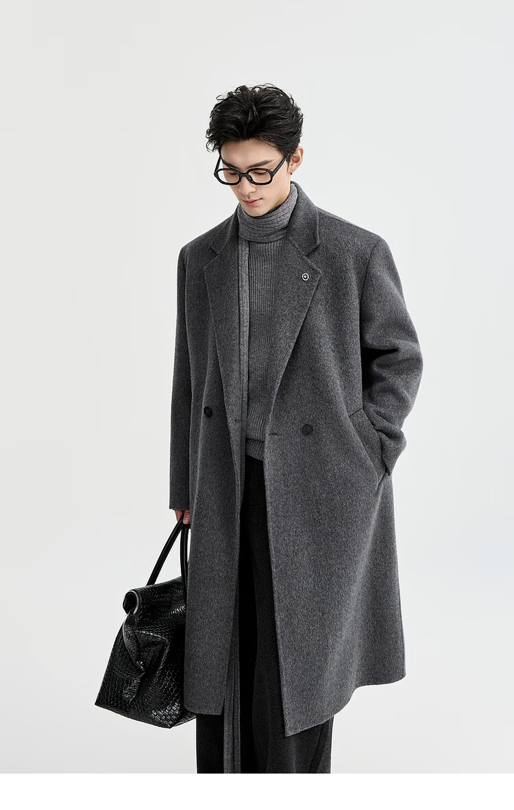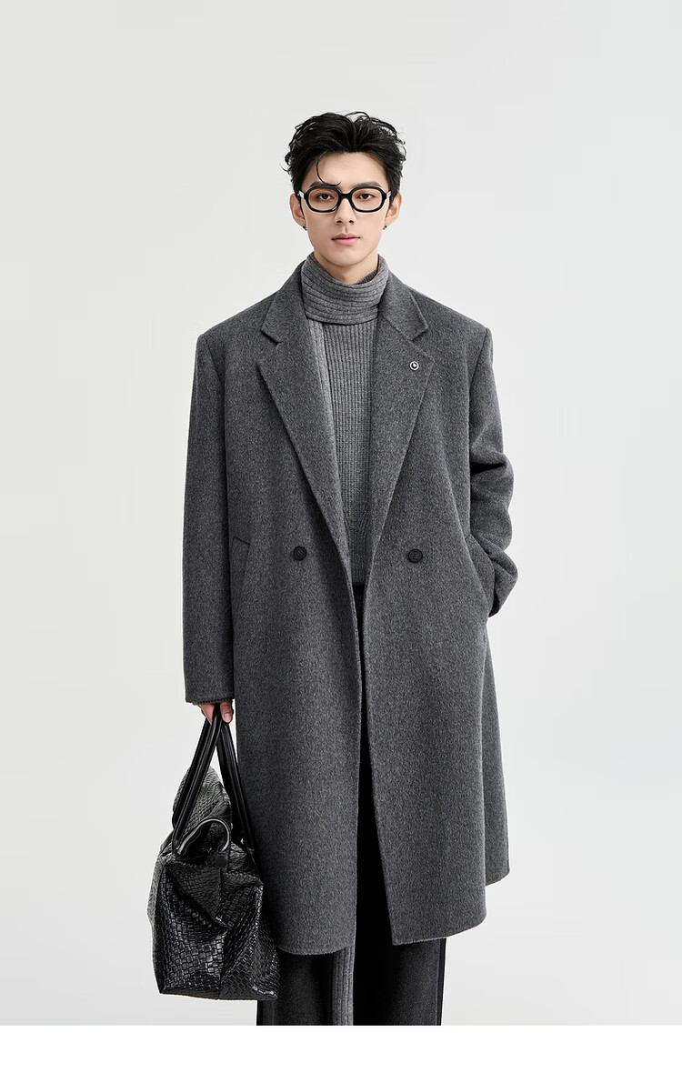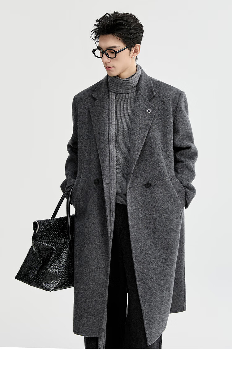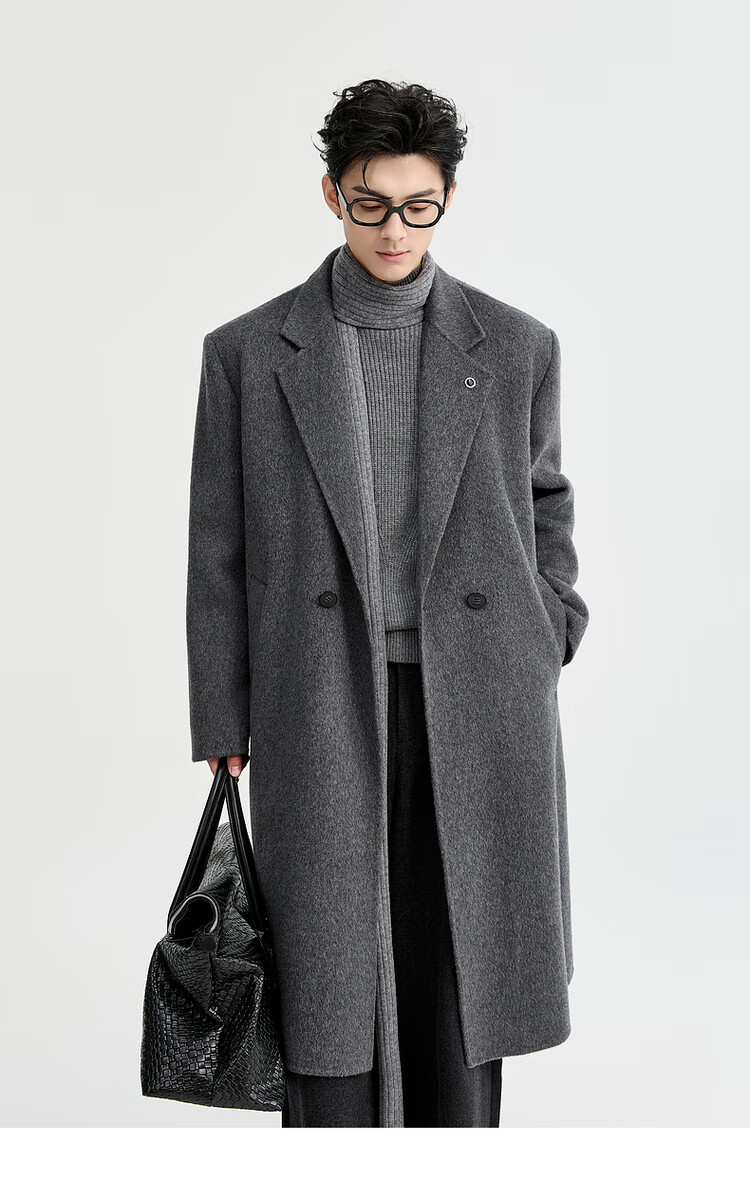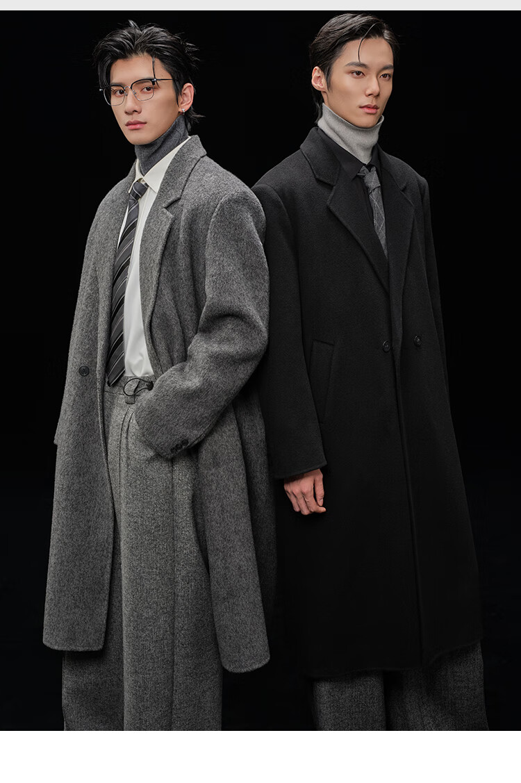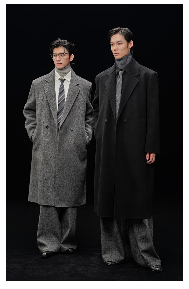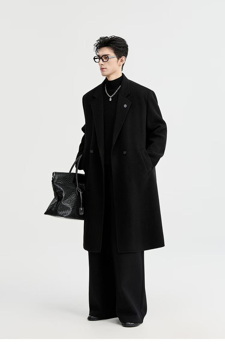 Earl Zall wool coat 100% men shoulder pads long goose down lining commuter coat men 2025 autumn and winter new moon night black regular - no lining XL (180)