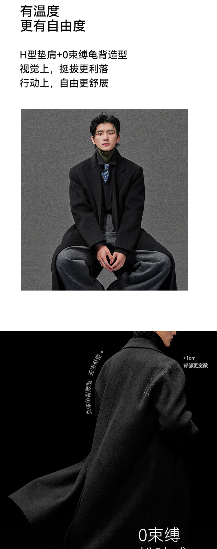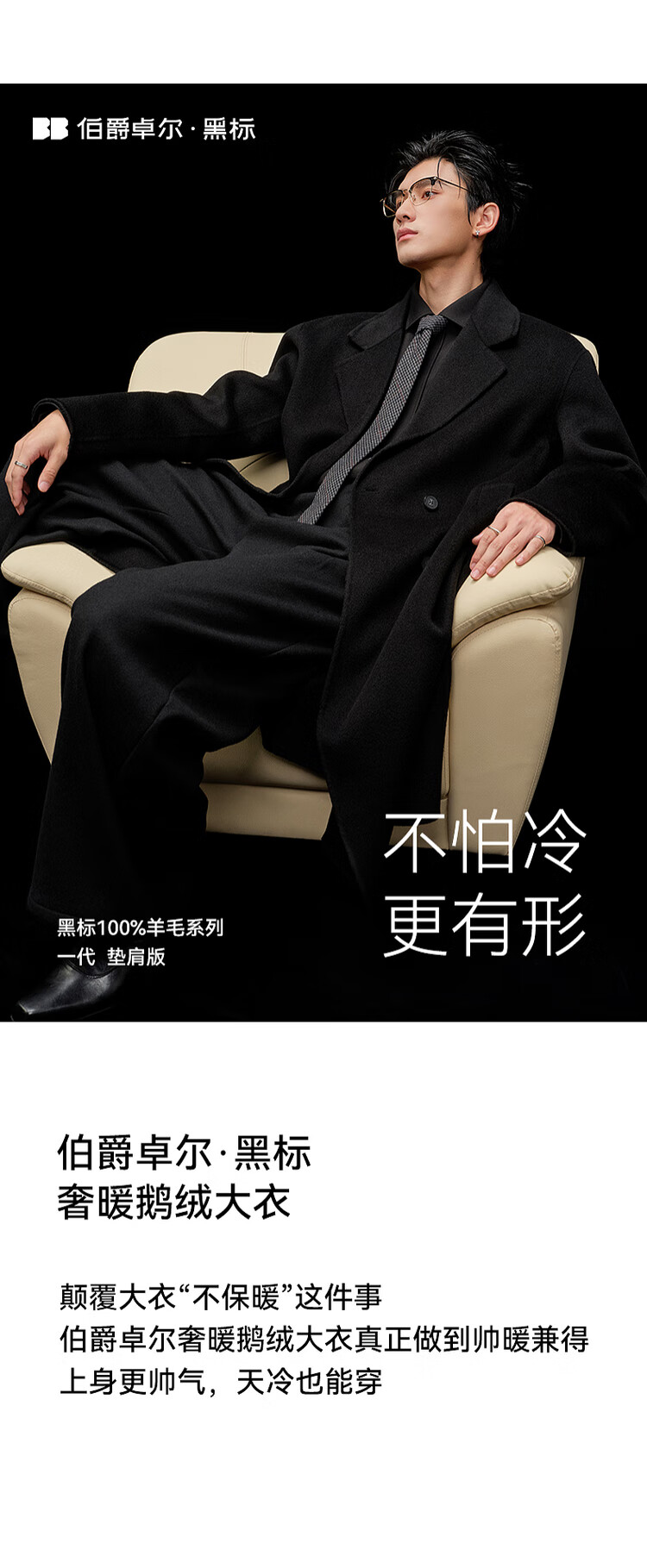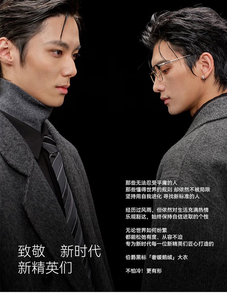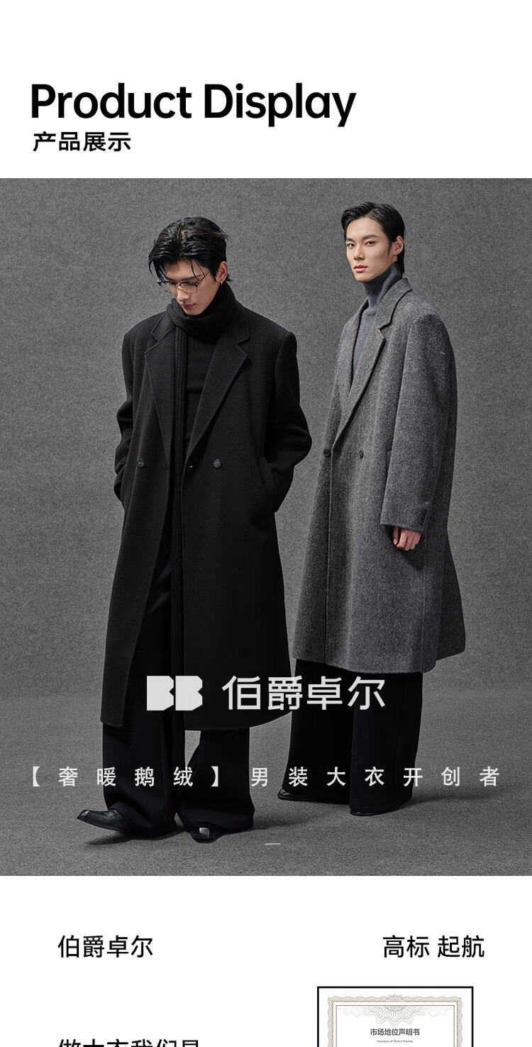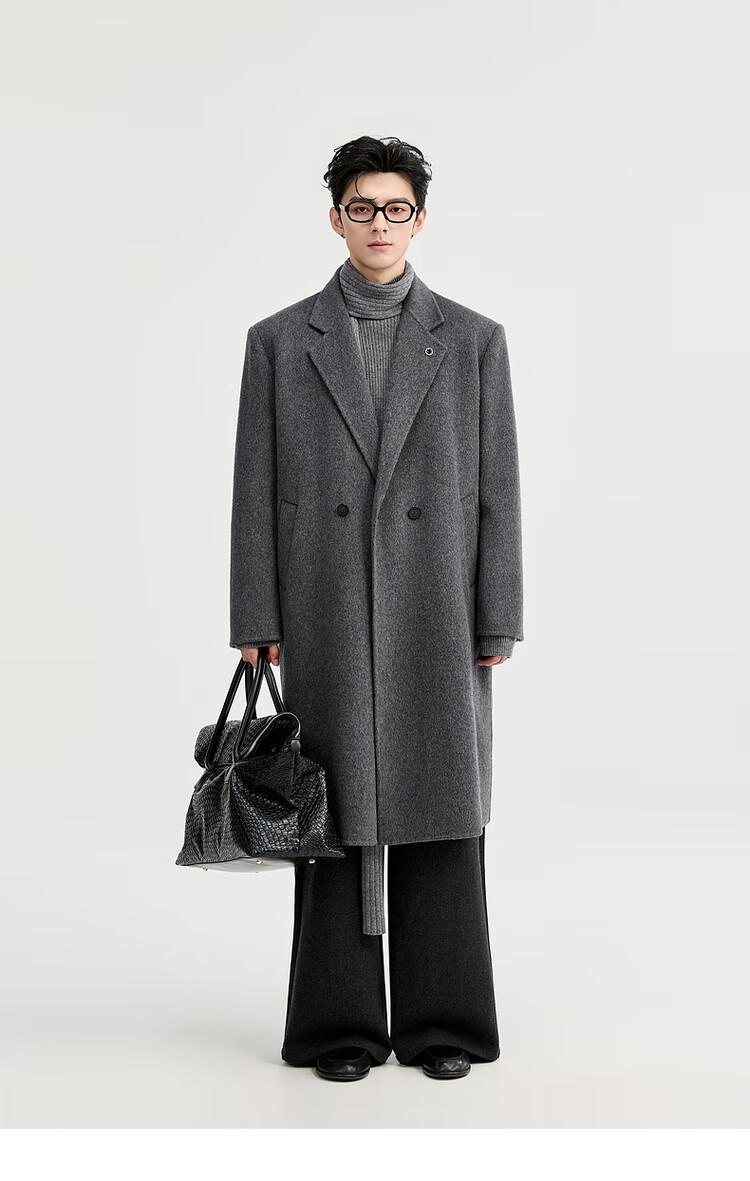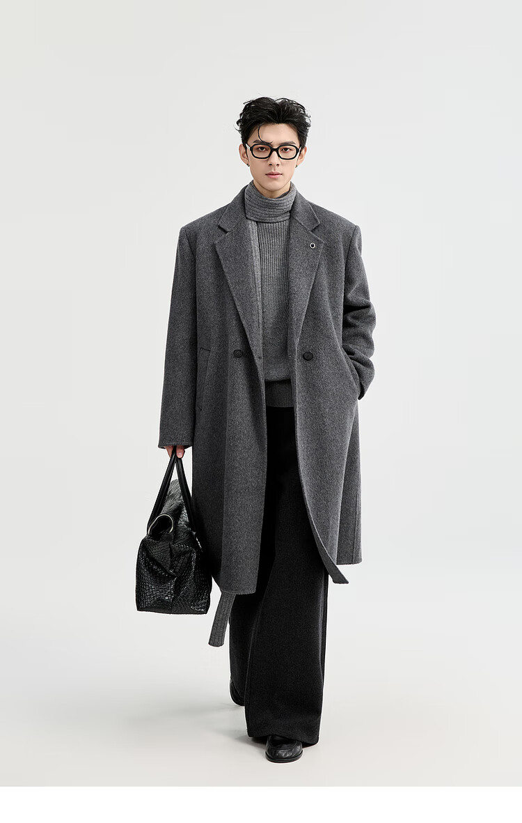 Earl Zall wool coat 100% men shoulder pads long goose down lining commuter coat men 2025 autumn and winter new moon night black regular - no lining XL (180)