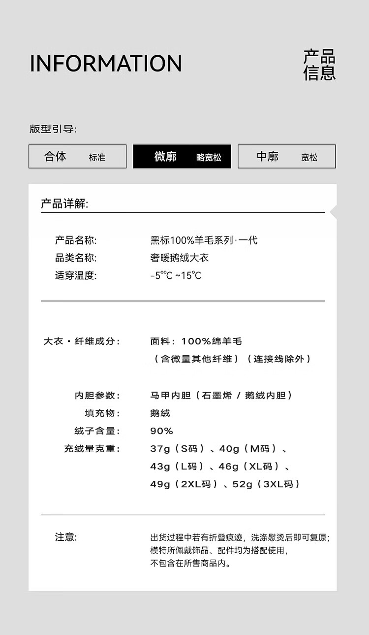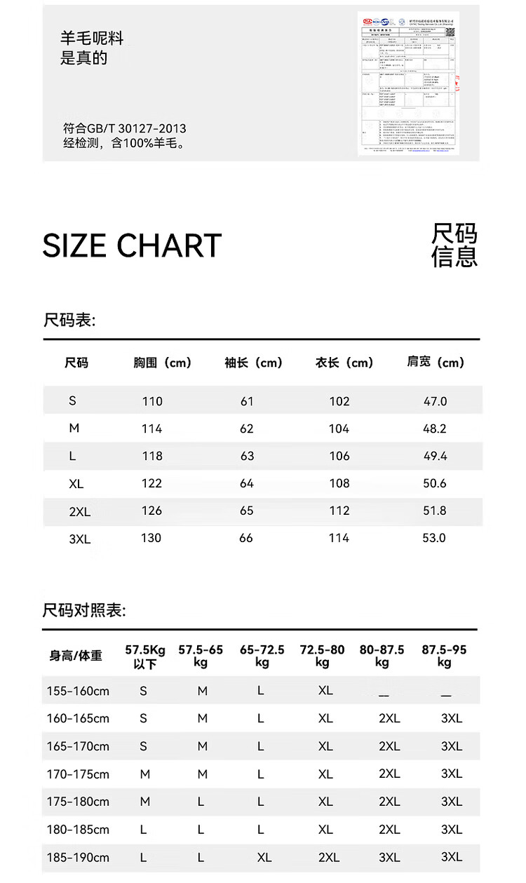 China (cm) 165 / 88-90 170 / 96-98 175 / 108-110 180 / 118-122 185 / 126-130