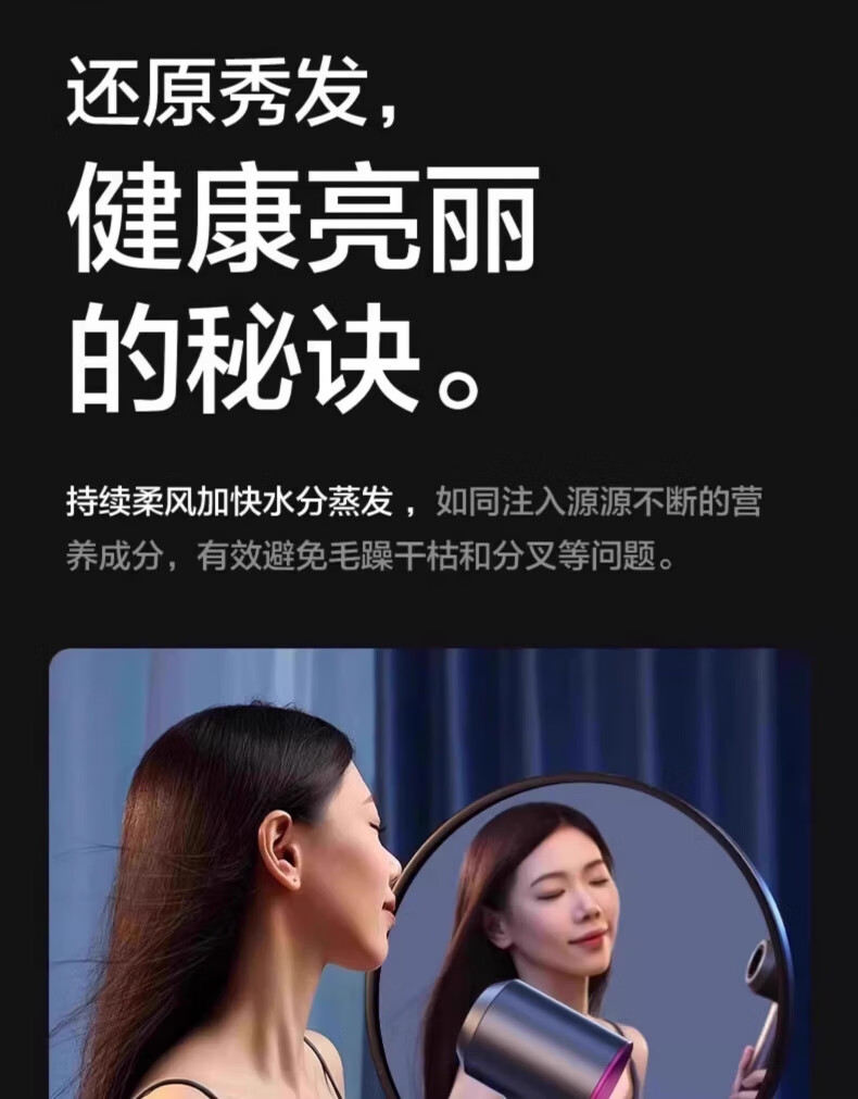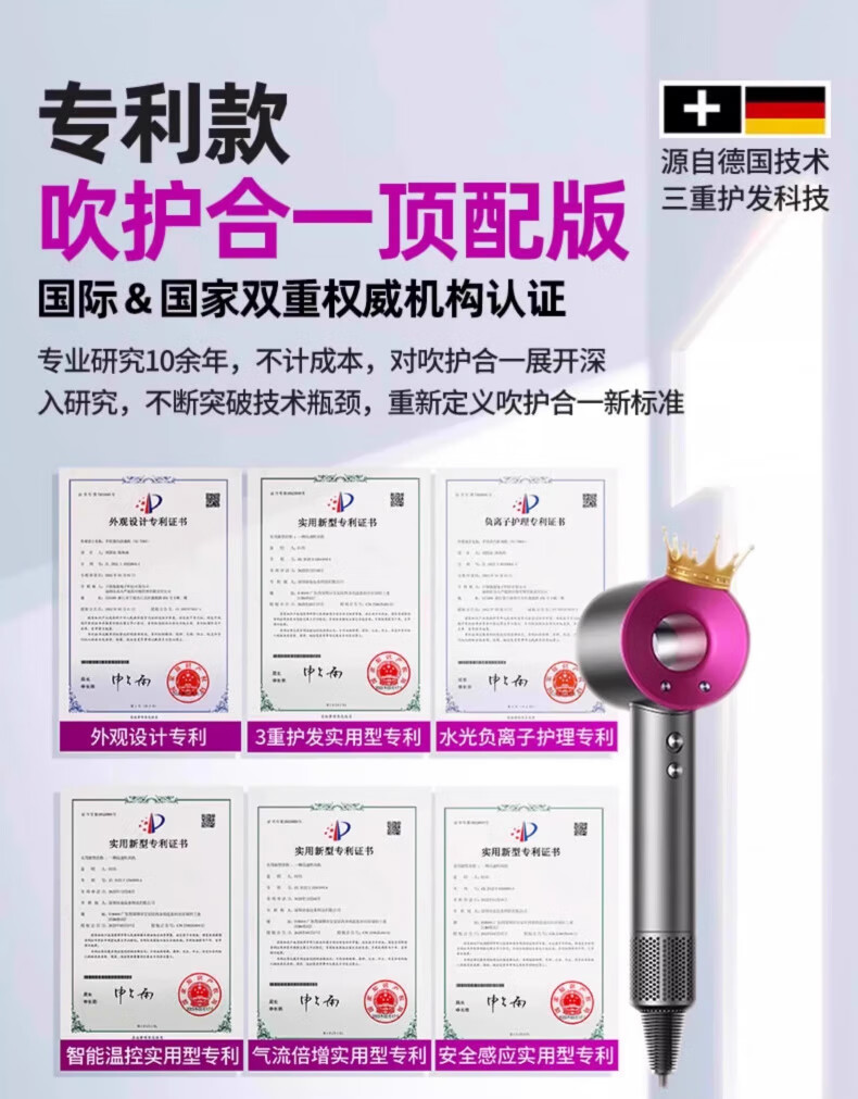 Xu Lin National 3C certification丨4.5 billion negative ion hair care German leafless high-speed hair dryer household silent high-power non-damaging constant temperature hair dryer quick-drying Huaqiangbei Rose Red-Five Air Nozzles丨4.5 billion hydrating negative ion constant temperature hair care 2025 new style丨Top version 1 1 version 1.8 meter long gift box