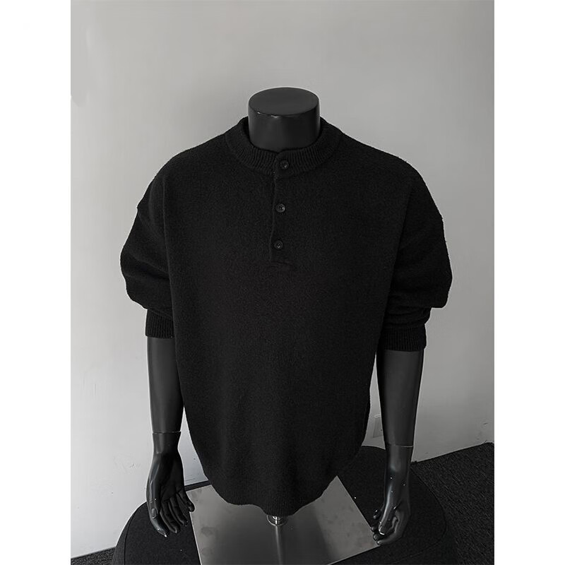 Cantu American retro Henry collar sweater men's spring and autumn loose casual sweater cleanfit high street handsome top light gray XL