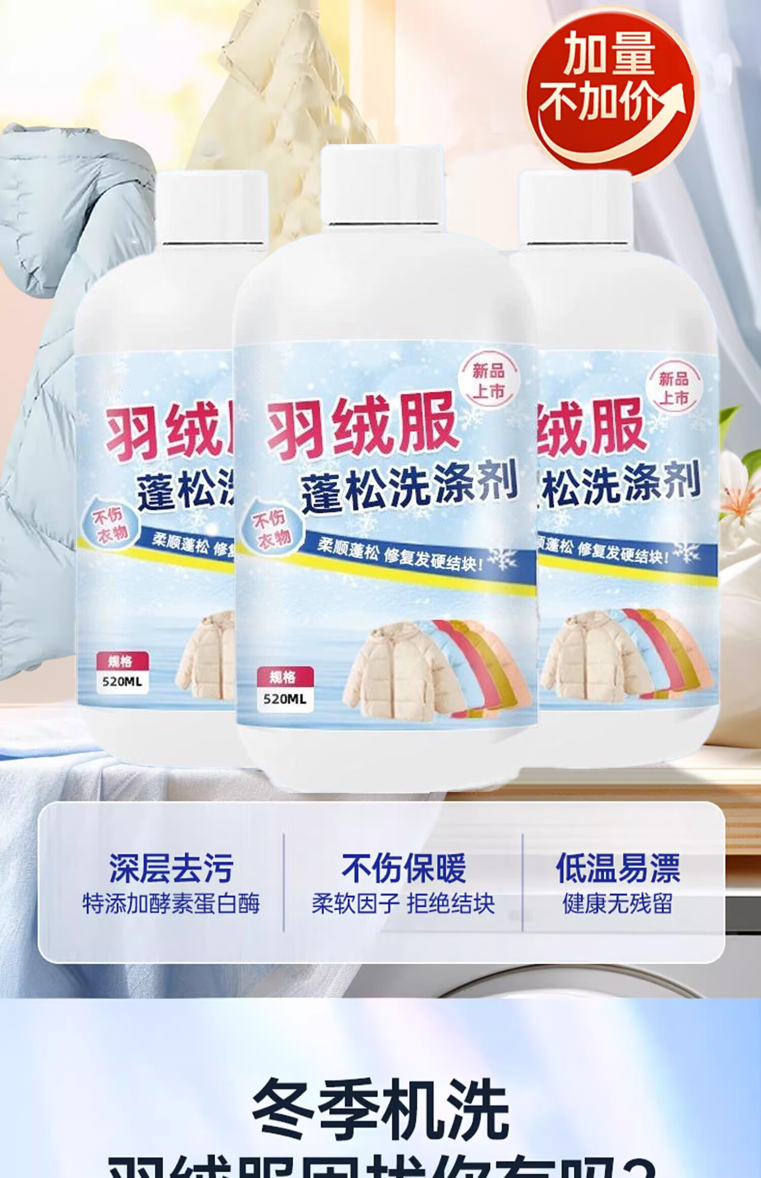 Ruizhou down jacket fluffing agent, special detergent for washing machine, down jacket cleaning agent, special laundry detergent for machine washing, 2 bottles, enjoy 10% off