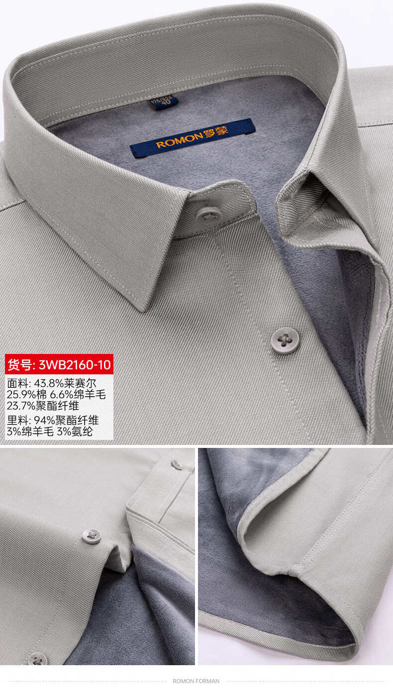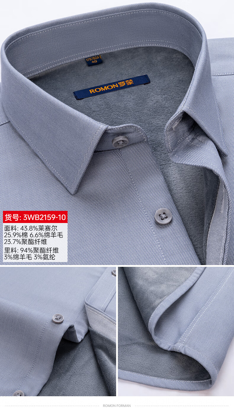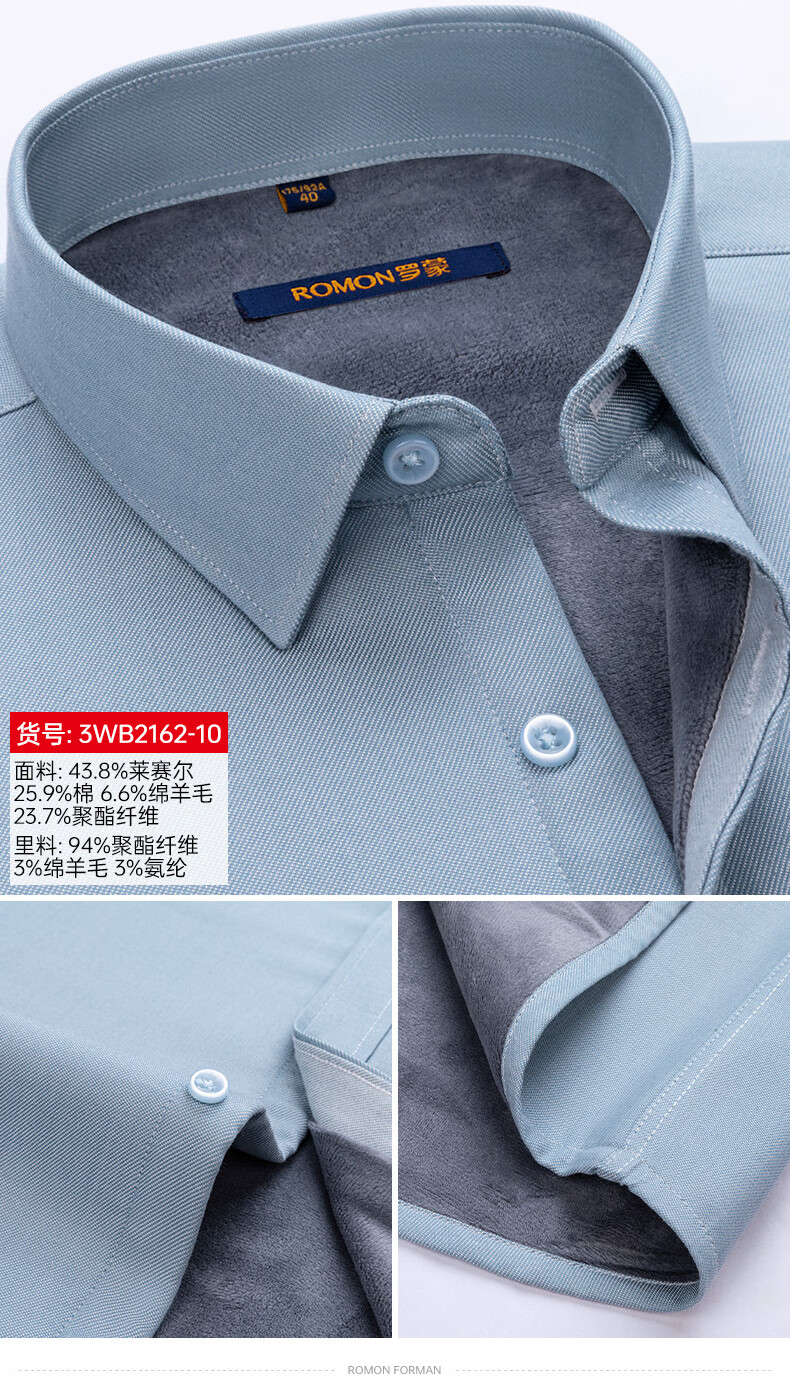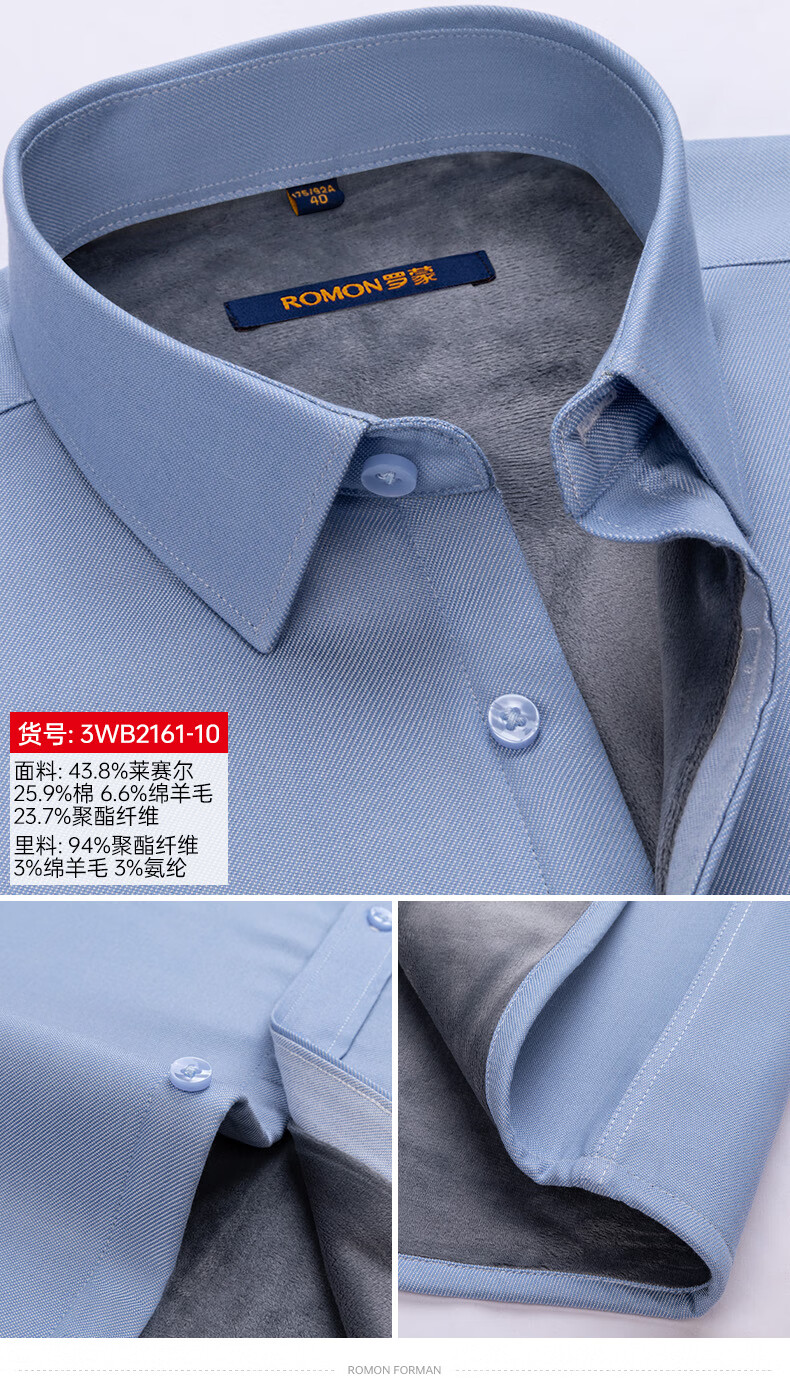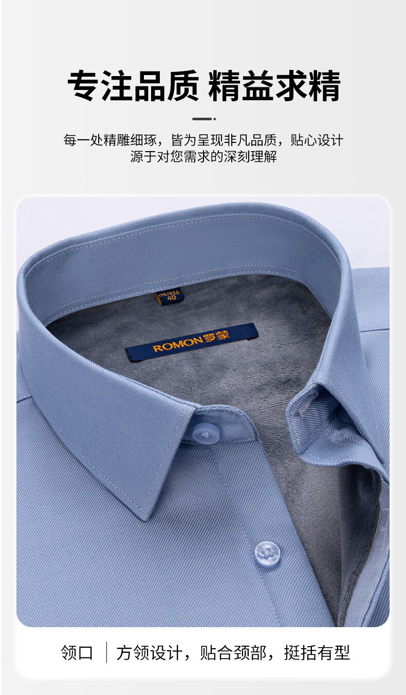 ROMON blue warm shirt men's long-sleeved winter new style young and middle-aged business formal velvet thickened solid color shirt men 3WB2161-10 41 145-155Jin Jin equals 0.5 kg 175/96A
