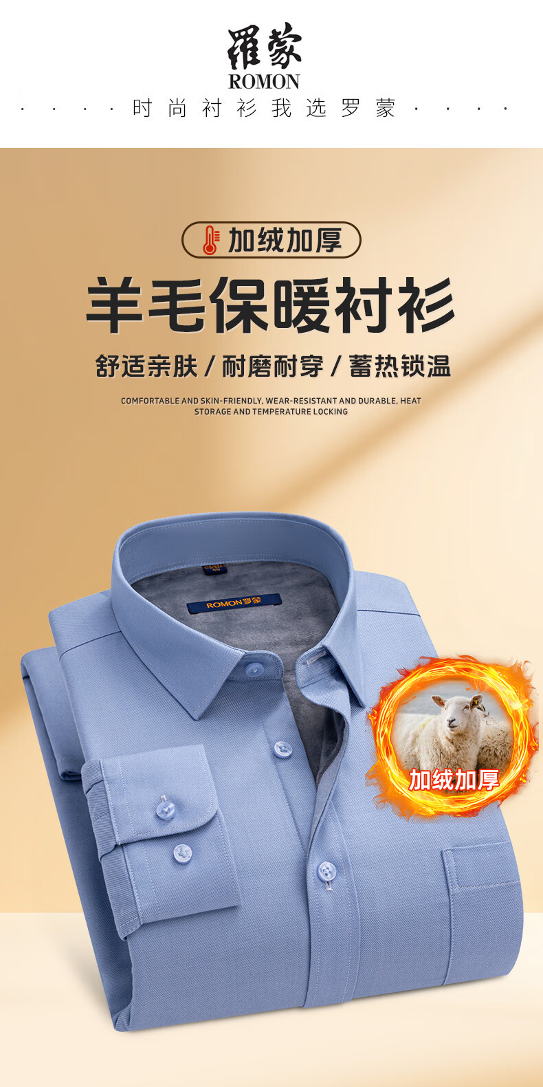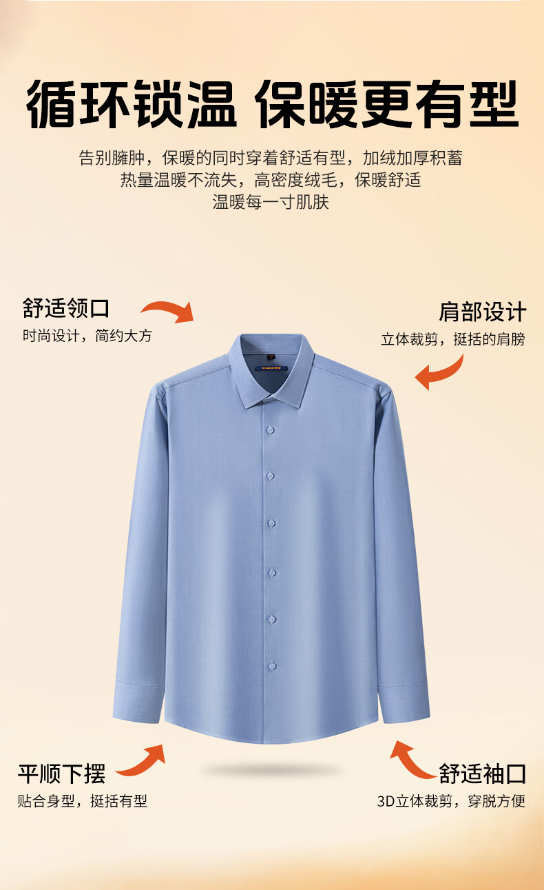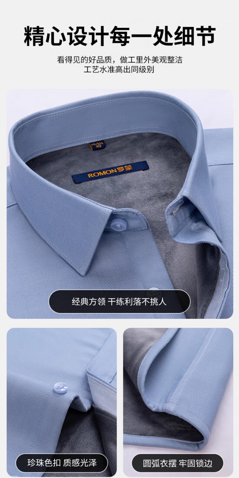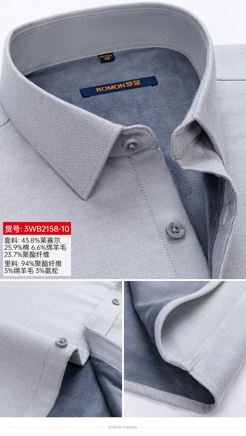 ROMON blue warm shirt men's long-sleeved winter new style young and middle-aged business formal velvet thickened solid color shirt men 3WB2161-10 41 145-155Jin Jin equals 0.5 kg 175/96A