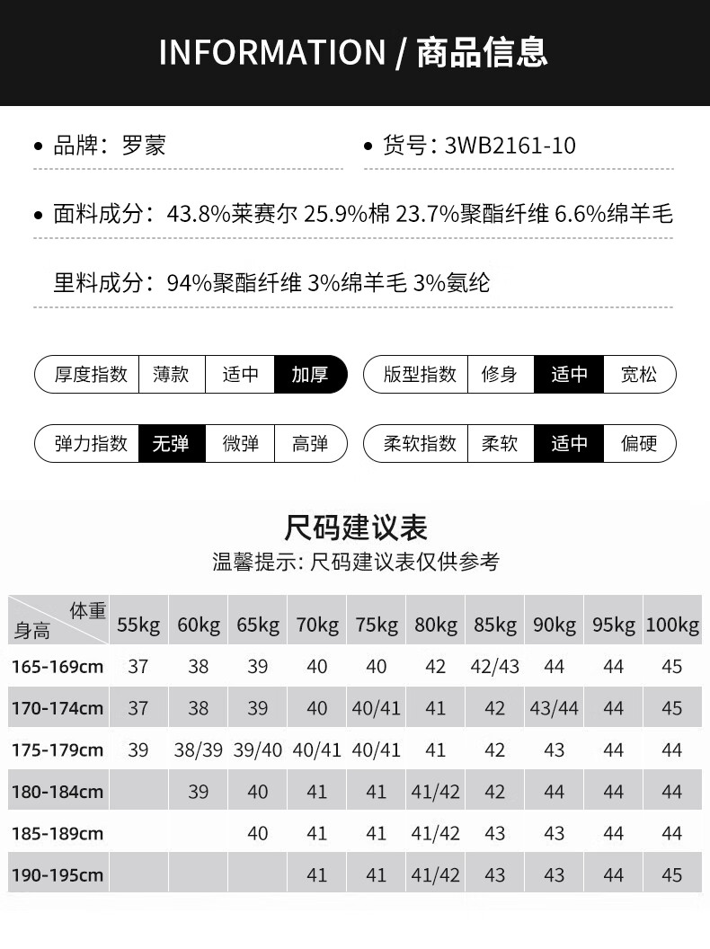 China (cm) 165 / 88-90 170 / 96-98 175 / 108-110 180 / 118-122 185 / 126-130