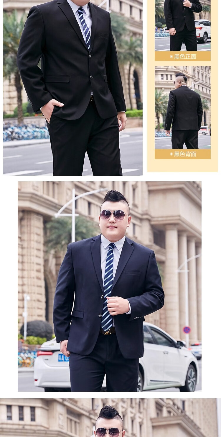 Woodpecker Large Size Suit Men's Suit Plus Fat Plus Fat Business Formal Suit Jacket Wedding Dress Professional Wear Autumn Two Button Large Size Gentleman Black Single Top Free Tie 2XL /180 Recommended 140-155 Jin Jin equals 0.5 kg