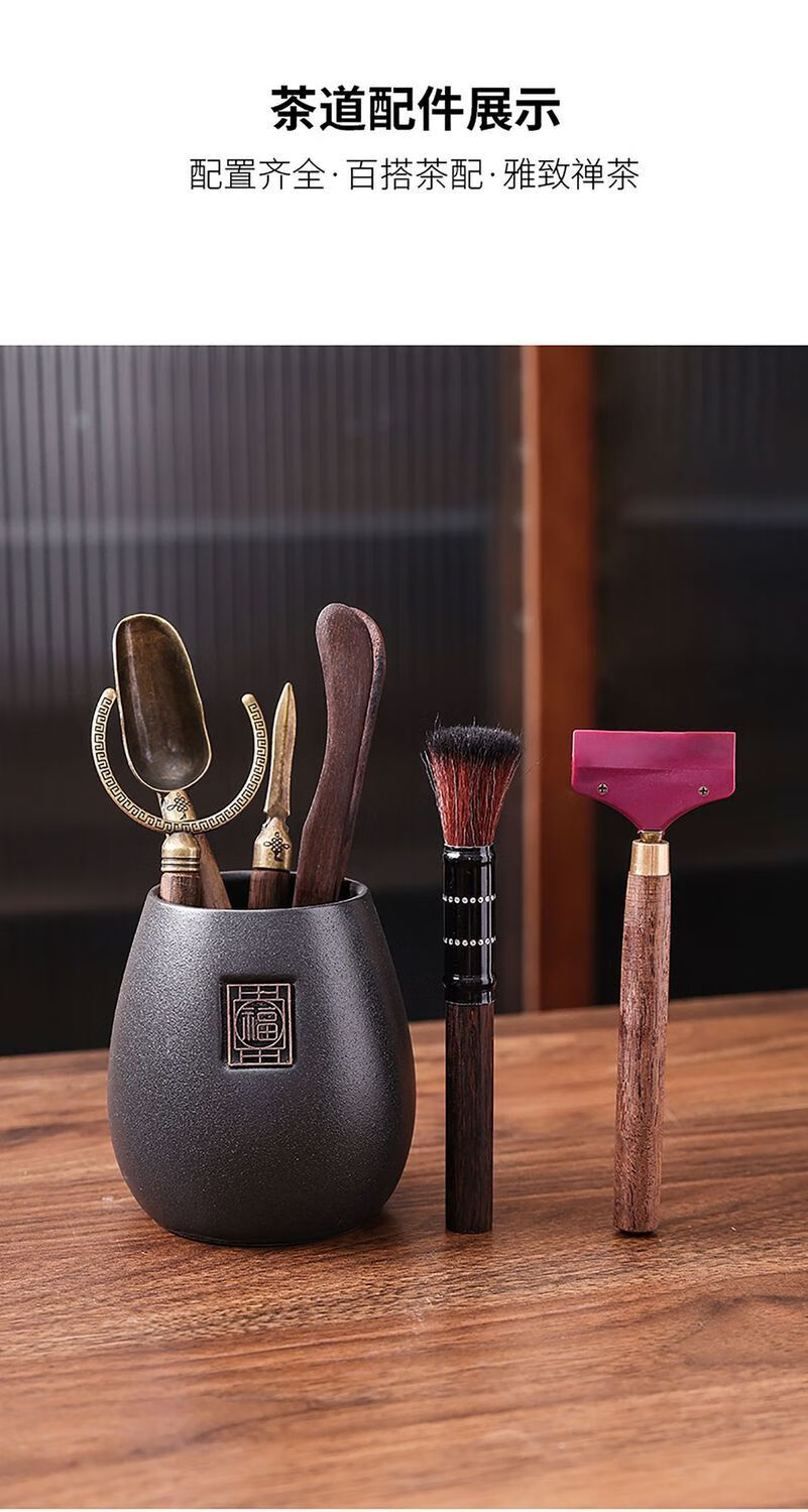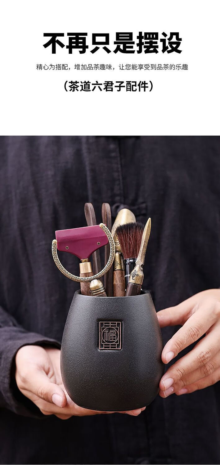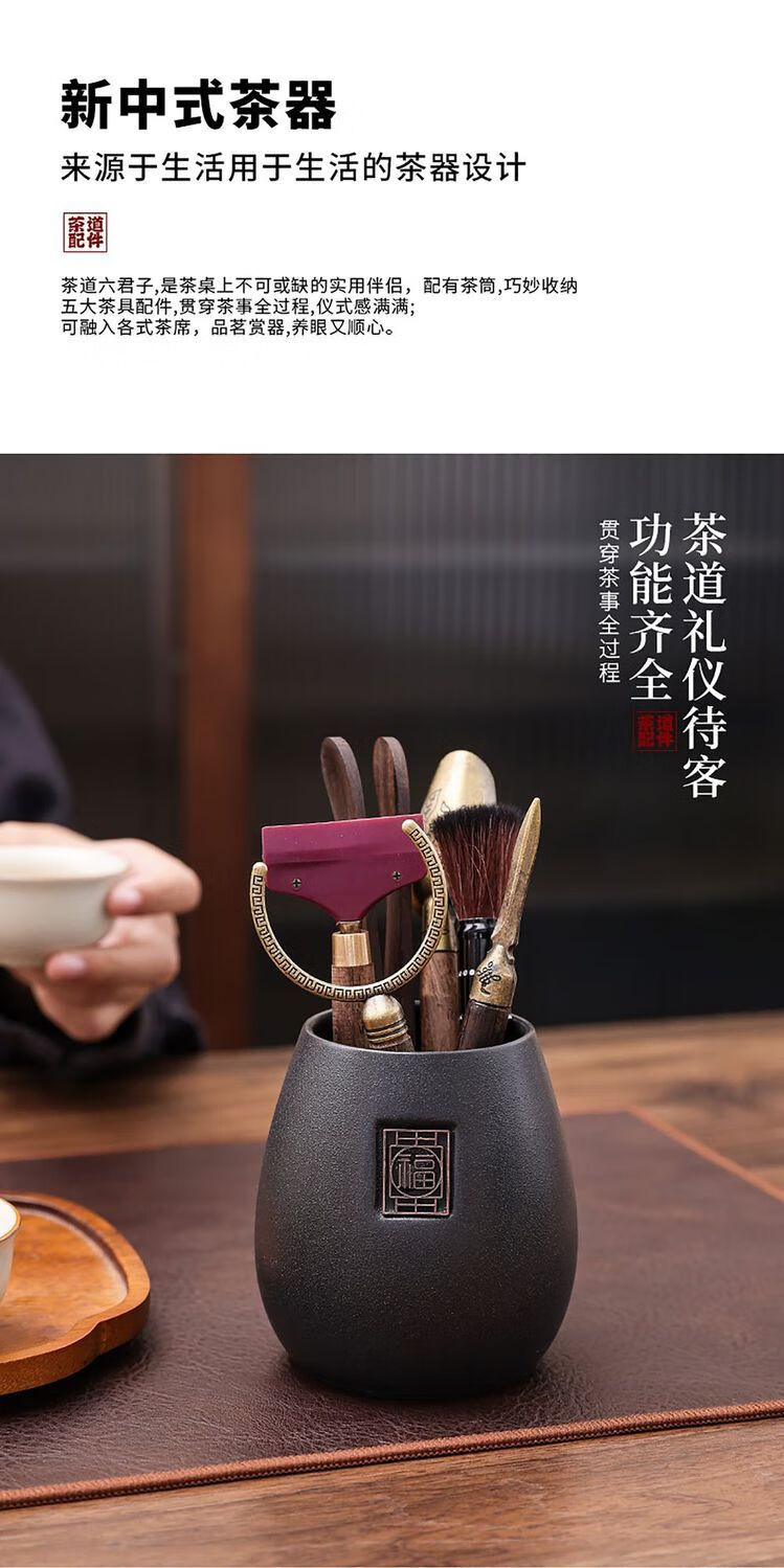Haofeng Tea Ceremony Six Gentlemen Set Tea Clamp Tea Spoon Pot Holder Pen Storage Pen Holder Porcelain Tea Set Accessories New Year Gift Black Pottery Yuanrong Tea Ceremony Bucket