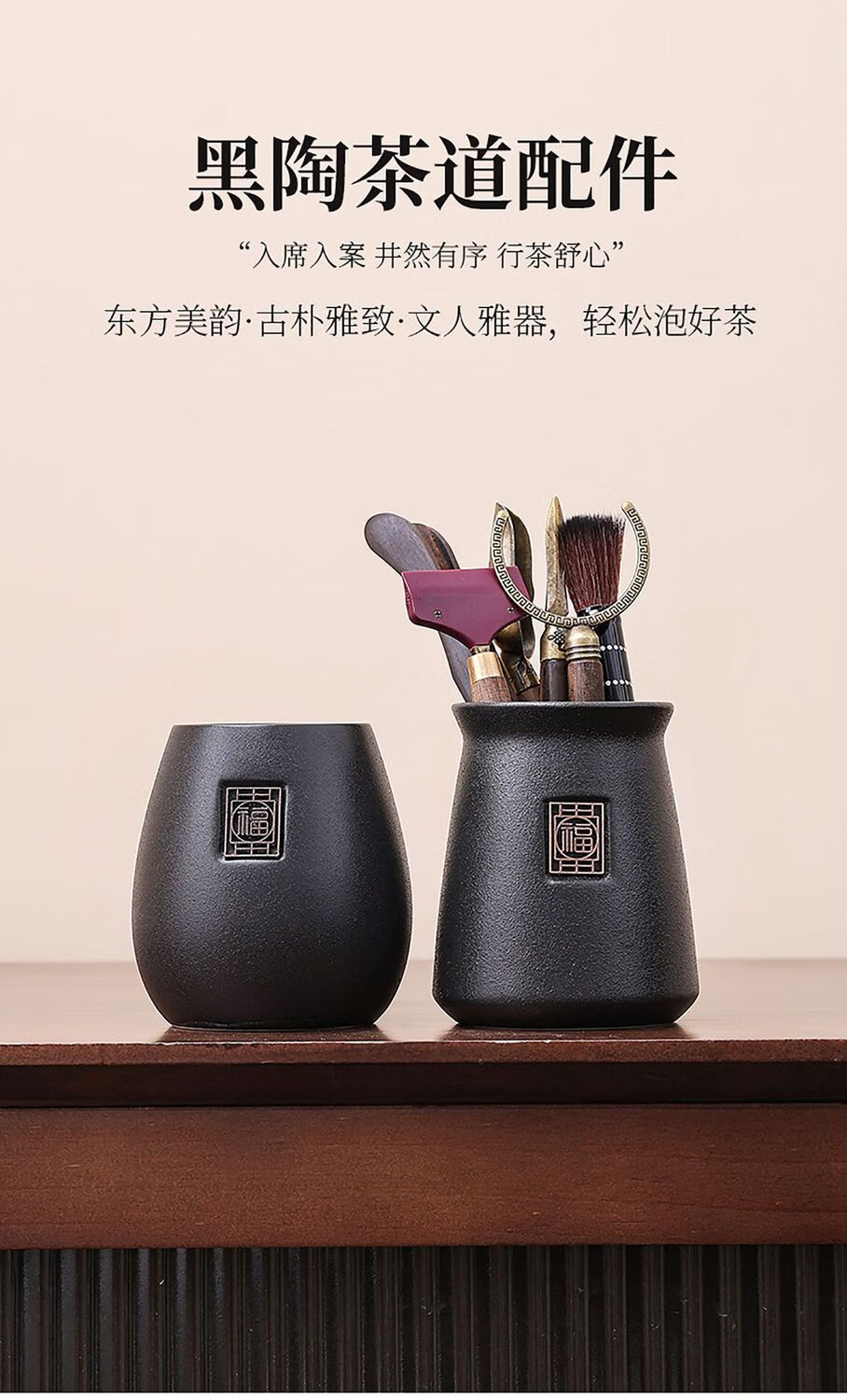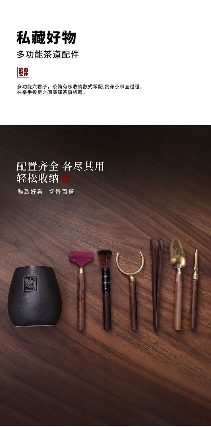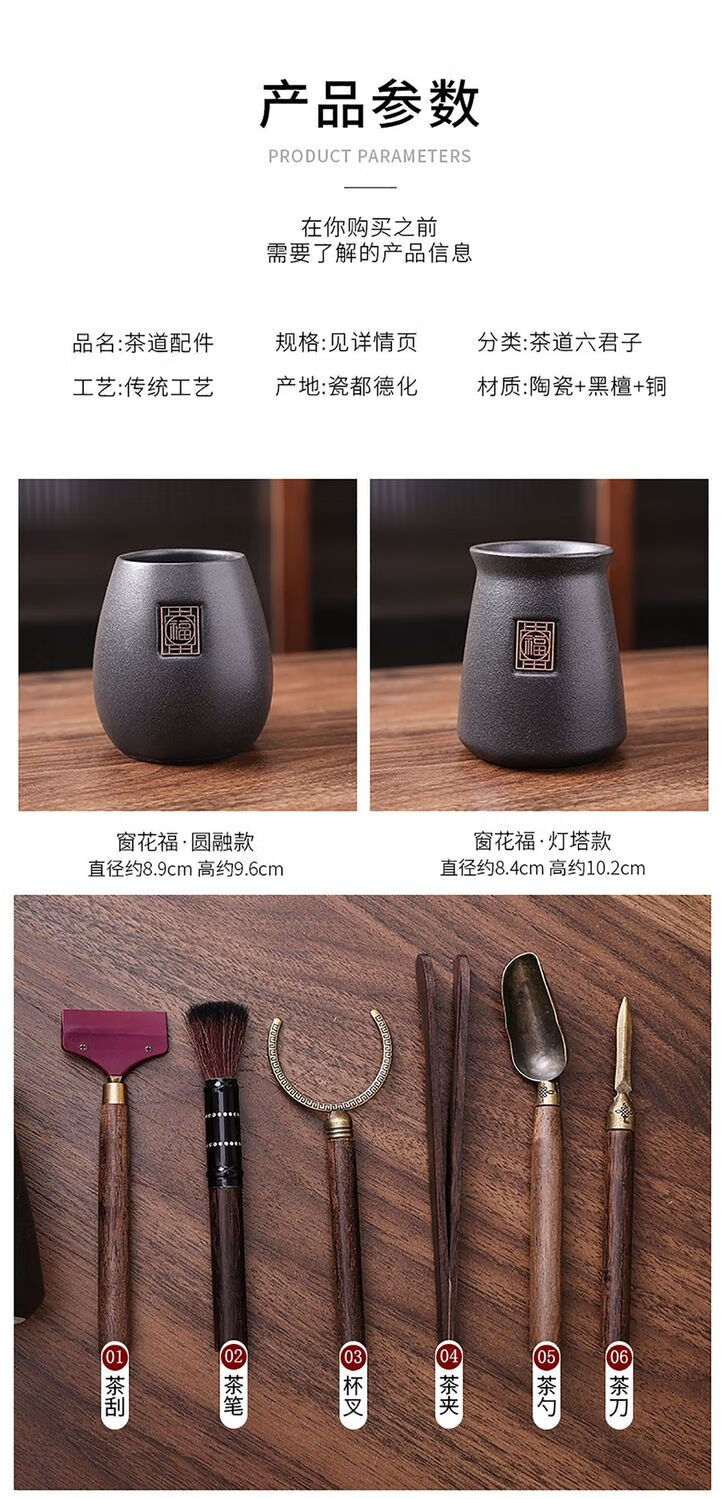 Haofeng Tea Ceremony Six Gentlemen Set Tea Clamp Tea Spoon Pot Holder Pen Storage Pen Holder Porcelain Tea Set Accessories New Year Gift Black Pottery Yuanrong Tea Ceremony Bucket