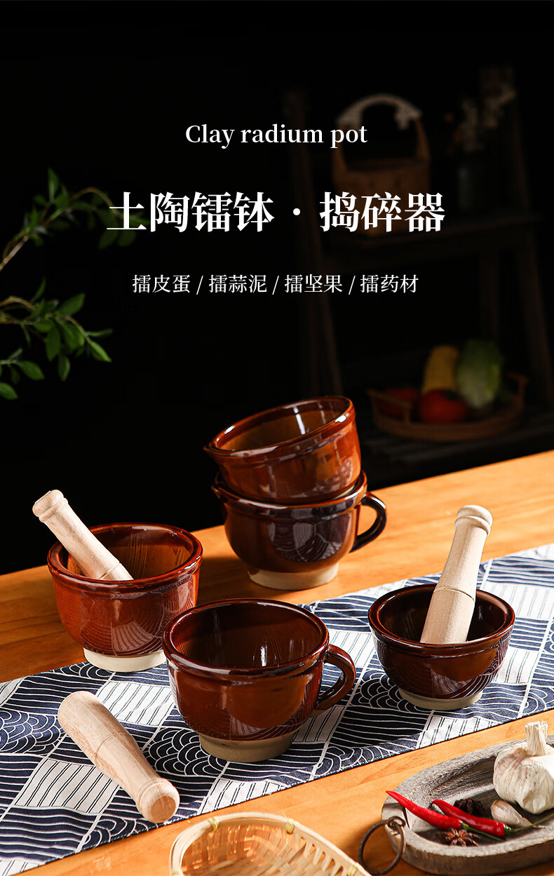 Grinding bowl Farmhouse coarse pottery vegetable bowl food grinder garlic pounding medicine bowl household garlic 2 pack large size grinding bowl with wooden hammer