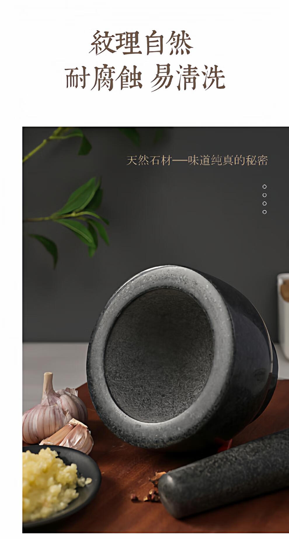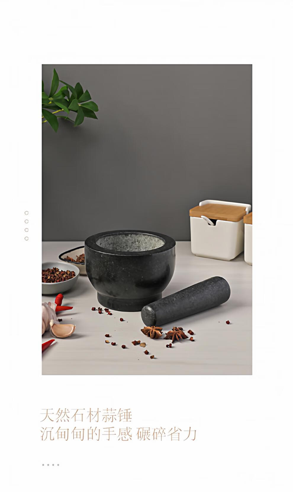 Stone mortar, stone garlic pounder, grinding jar, masher, medicine jar, garlic mortar, black granite cylinder type, diameter 15 cm, height 12 cm, stone mortar splash-proof cover