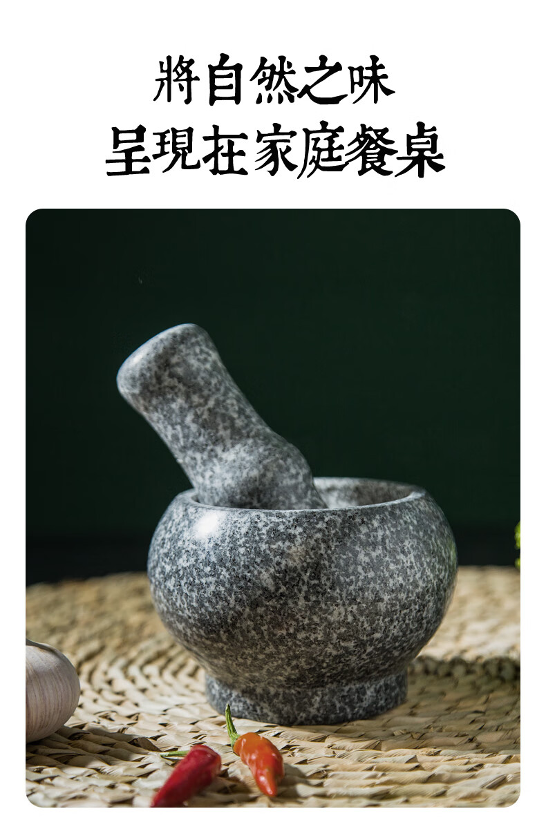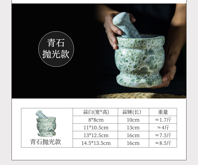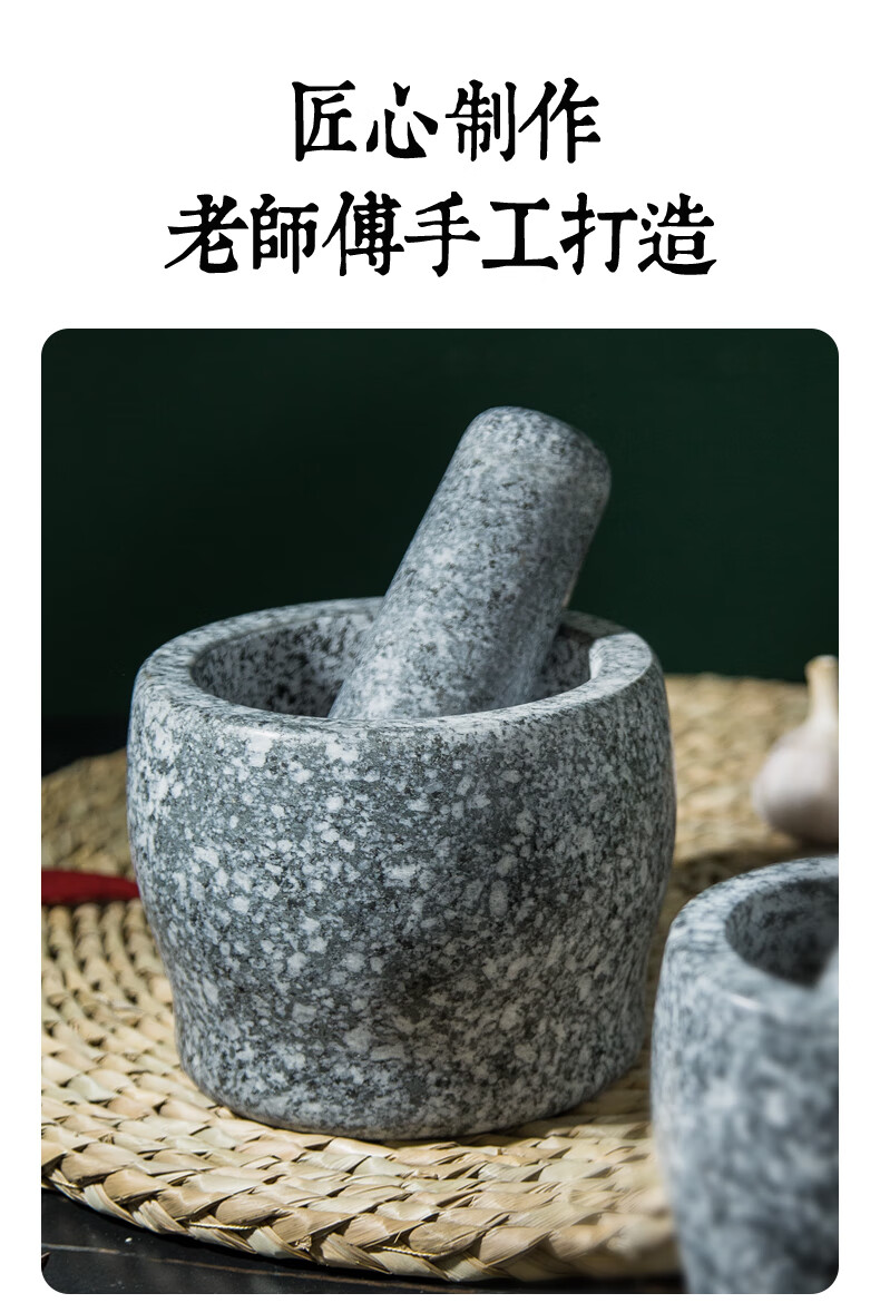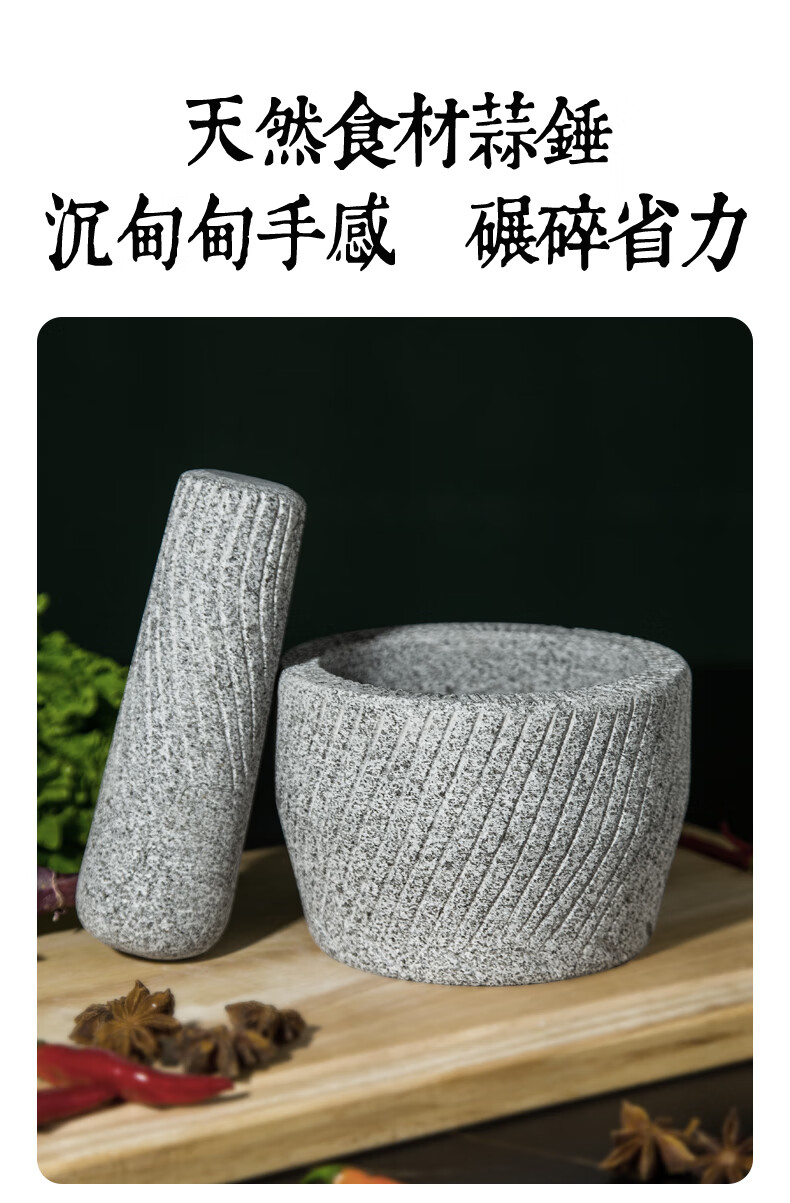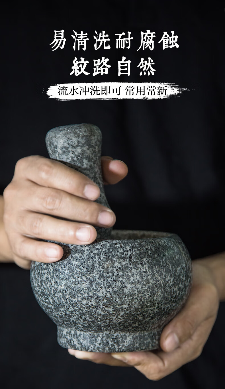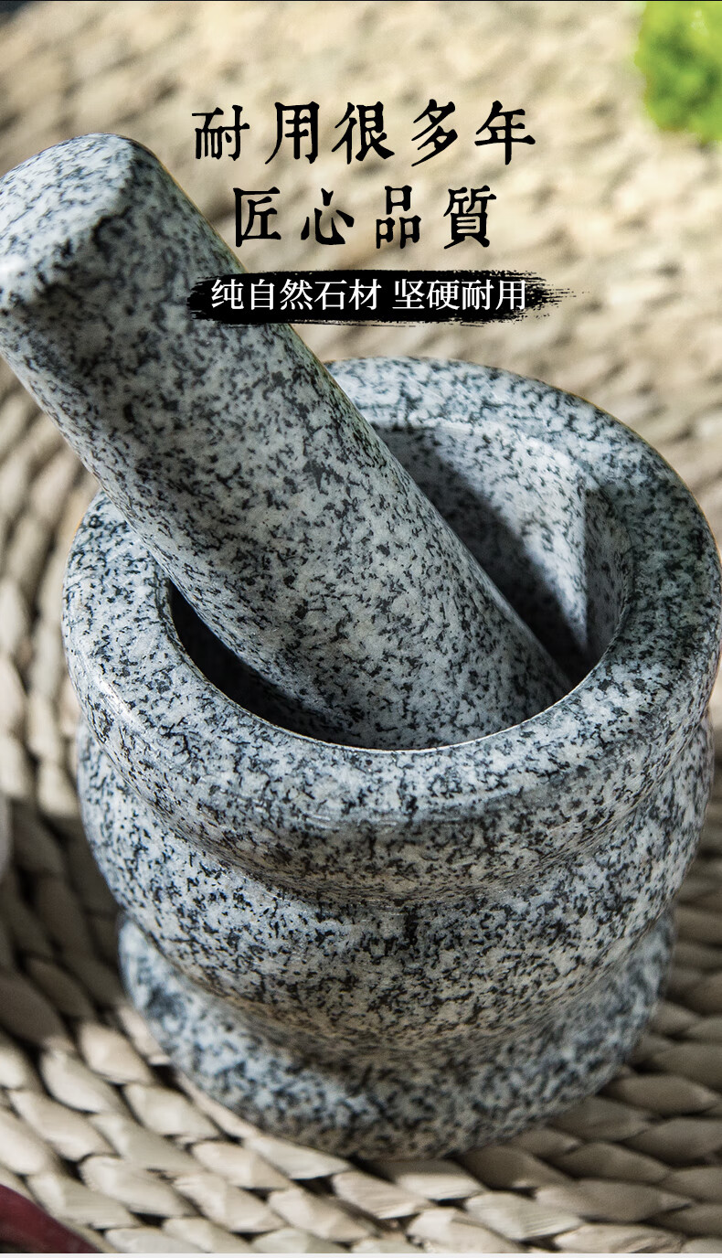 Fat Donglai natural stone garlic pounder stone mortar Chinese medicine grinder bluestone garlic press garlic mortar household granite water drop type medium polished lid