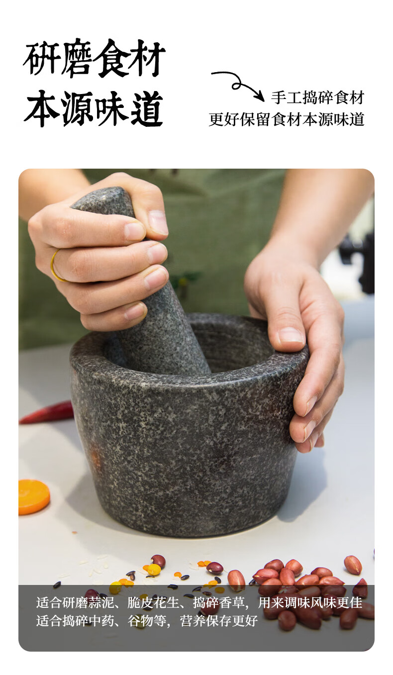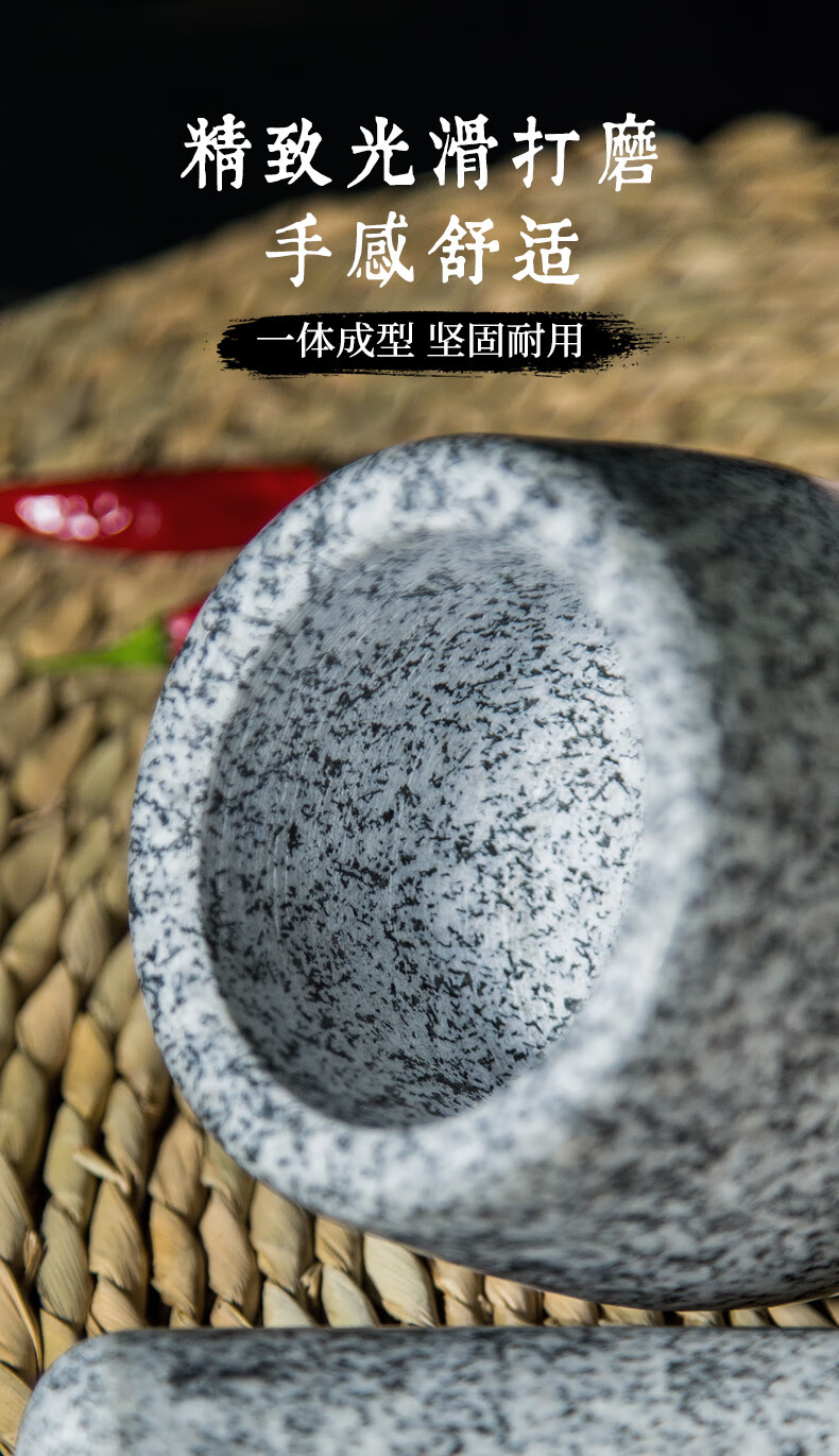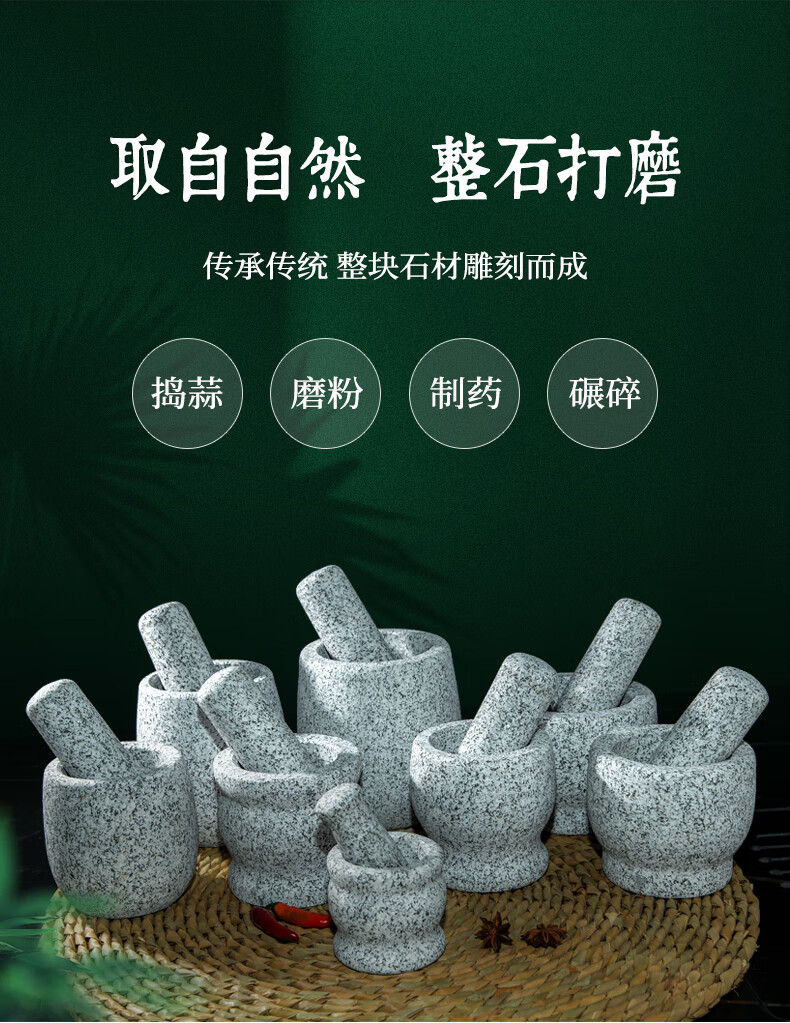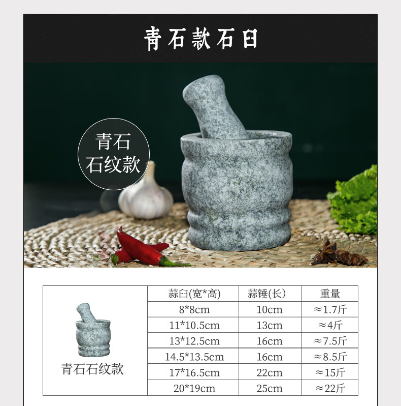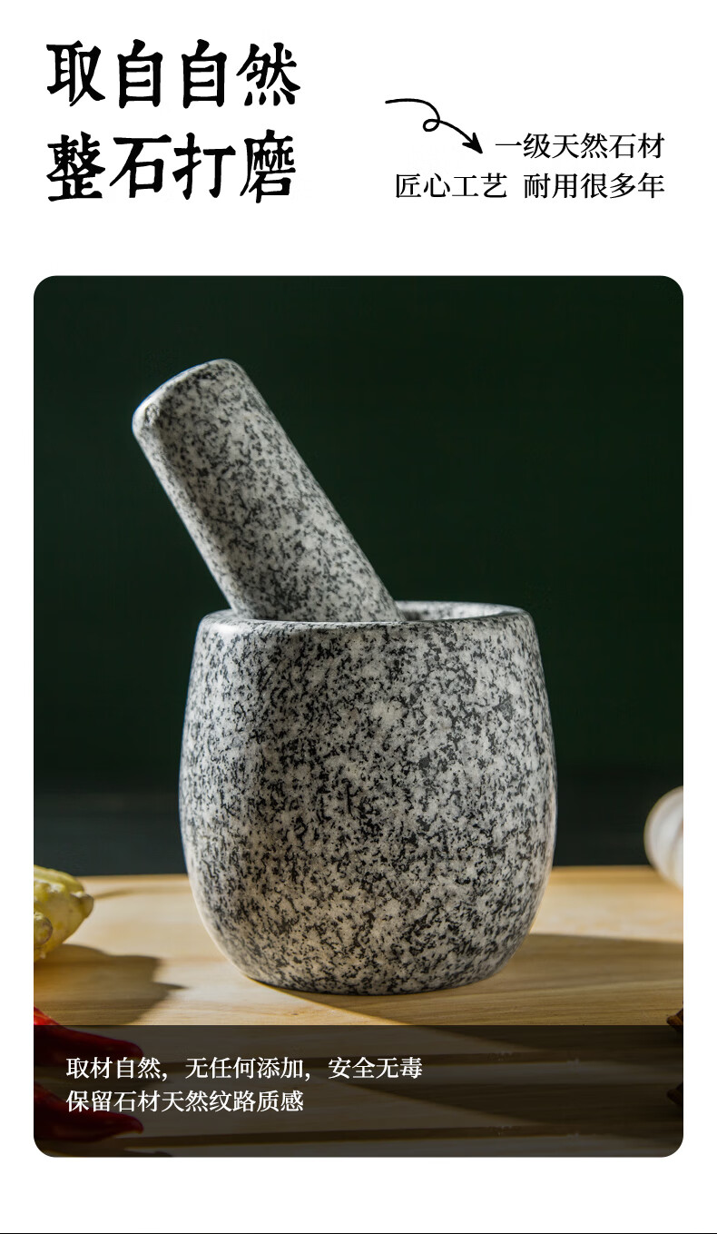 Fat Donglai natural stone garlic pounder stone mortar Chinese medicine grinder bluestone garlic press garlic mortar household granite water drop type medium polished lid