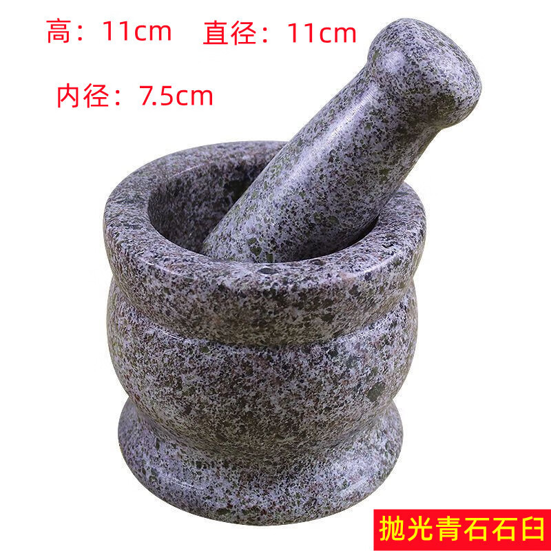 Stone garlic mortar, garlic masher, garlic masher, household grinding bowl, stone mortar, garlic large, raw stone polished bluestone mortar, cover