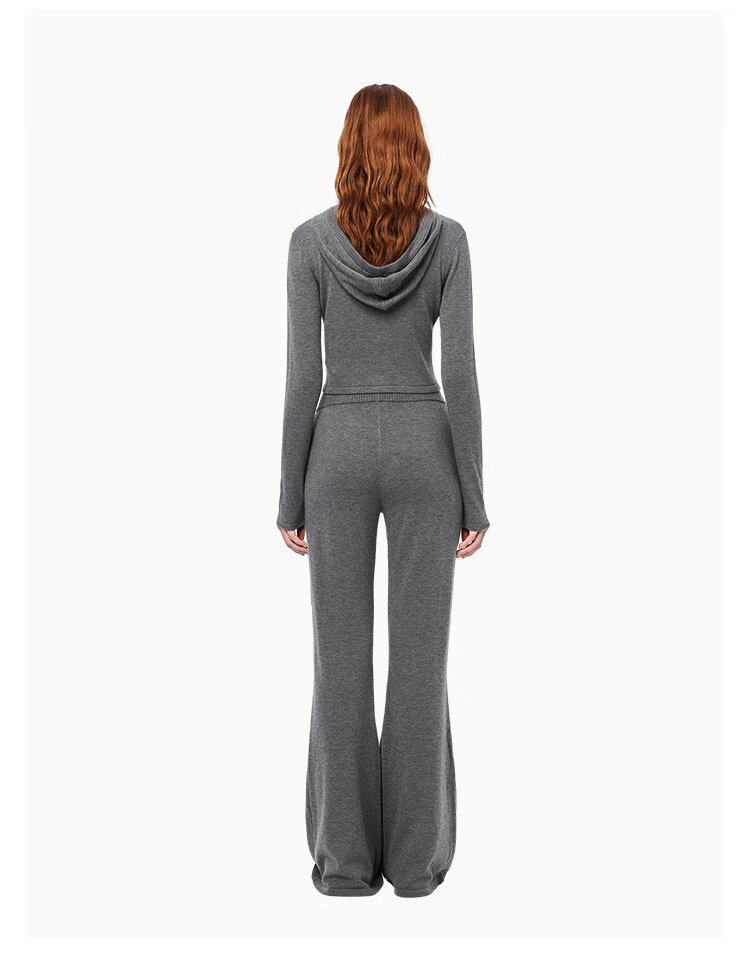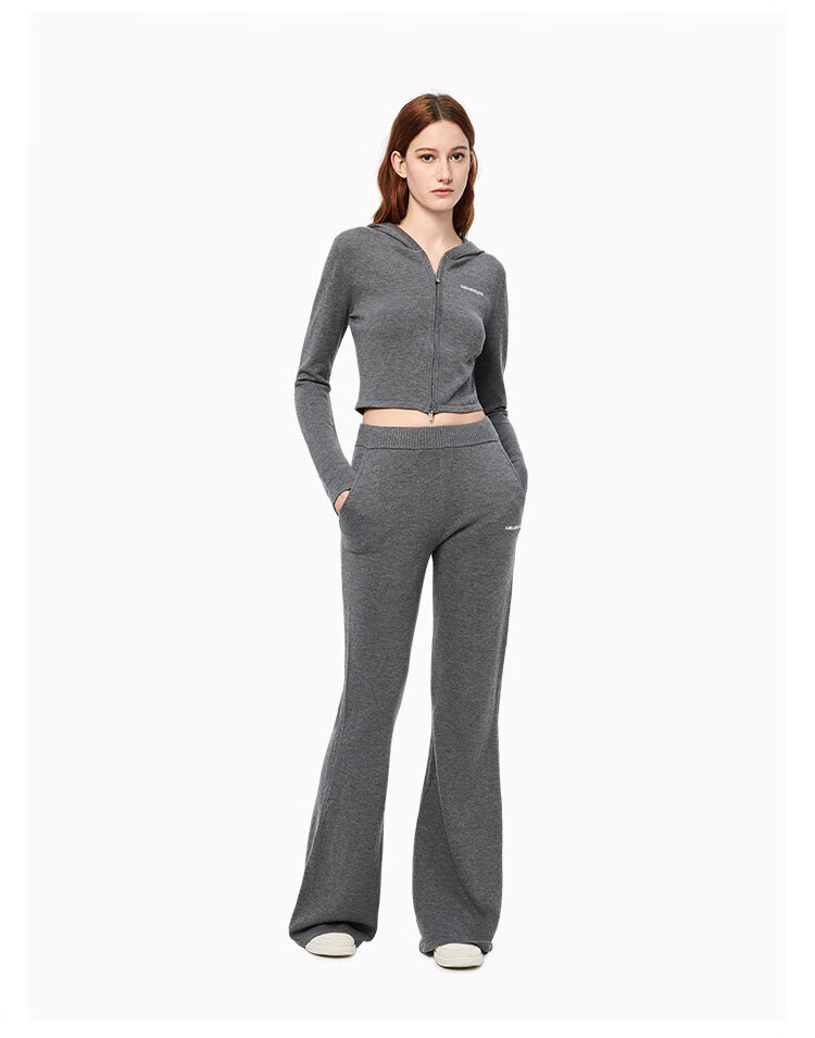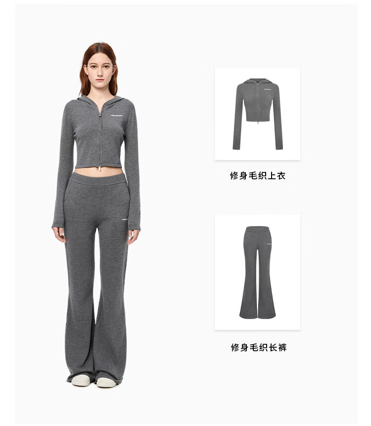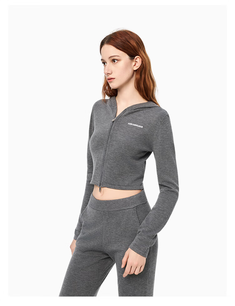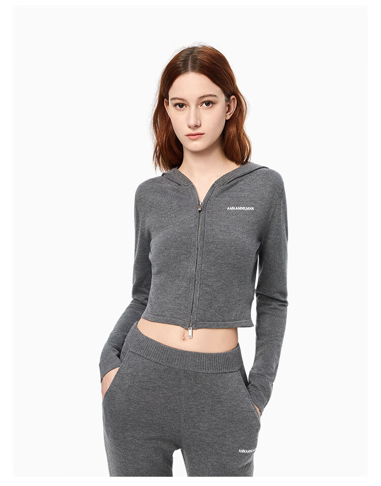 ANN ANDELMAN official direct-selling sweater cardigan coat women's autumn and winter new zipper hooded sweater top dark gray S