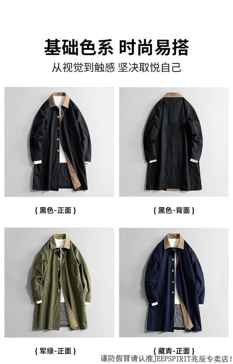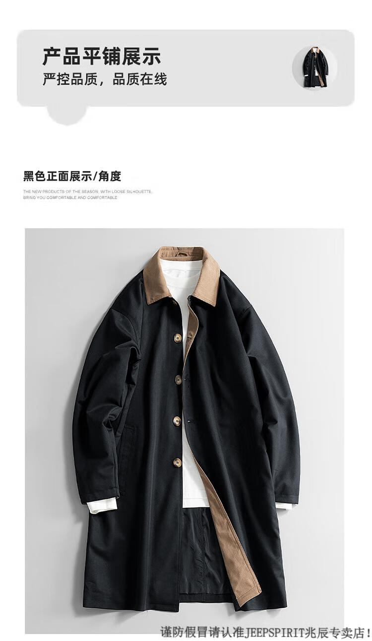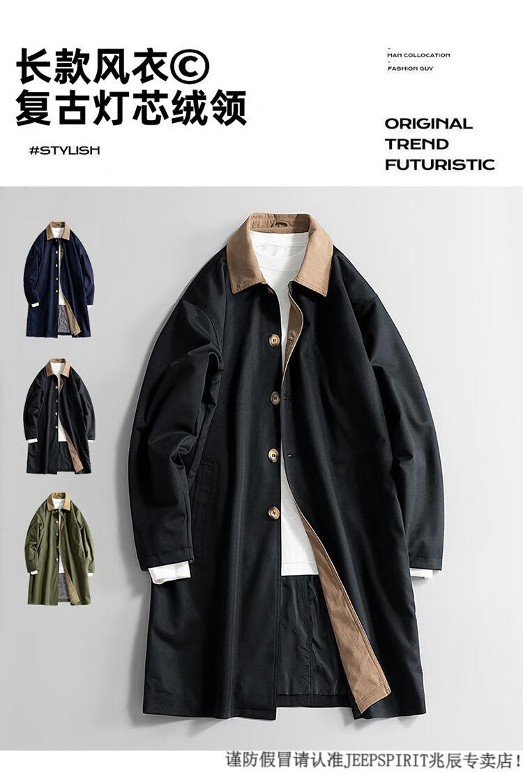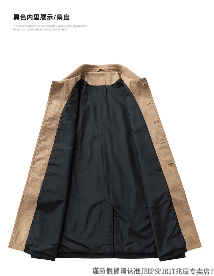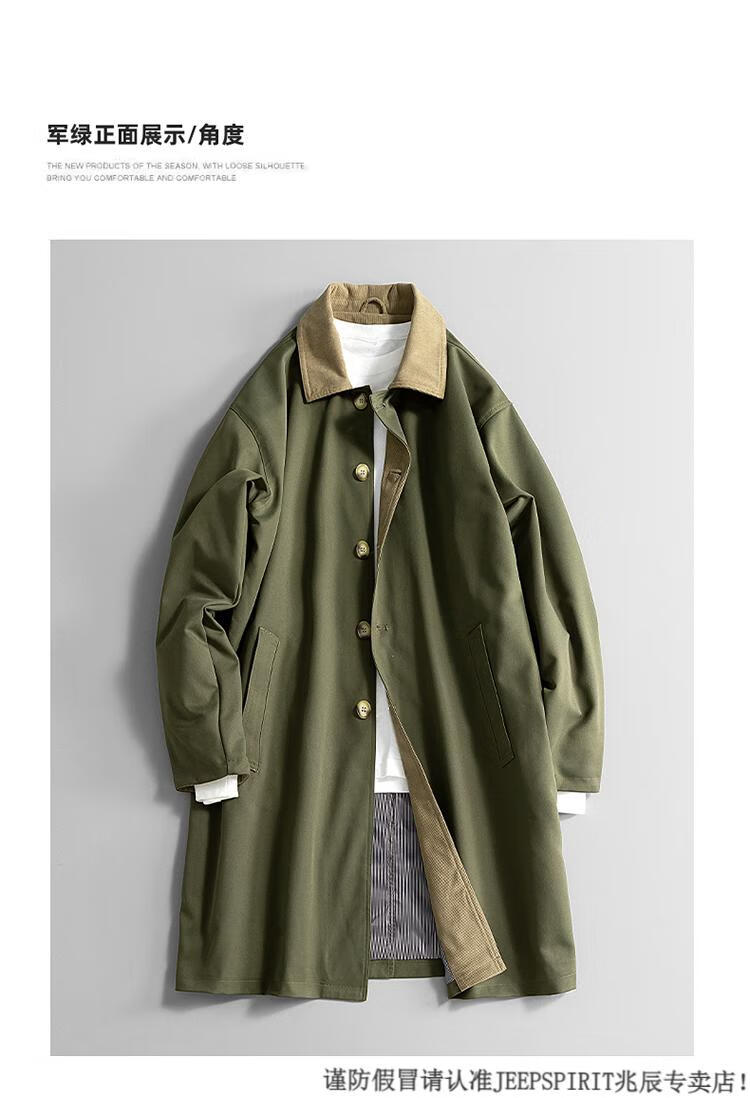 JEEP SPIRIT Workwear Military Green Balmakken Mid-Length Windbreaker Men's Spring and Autumn Loose Casual Plus Size Fat Man Jacket Military Green 6XL 220-240Jin Jin is equal to 0.5 kg