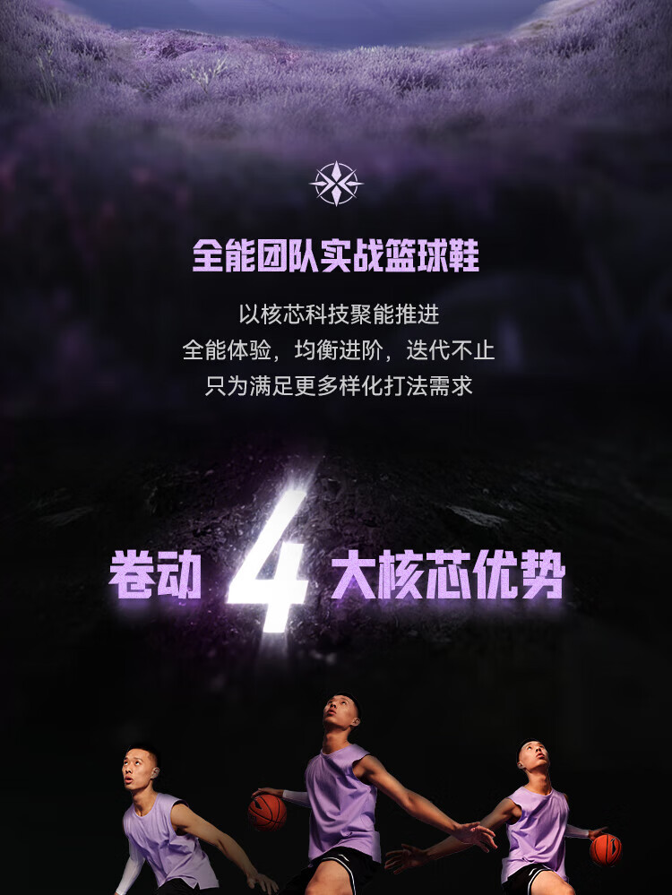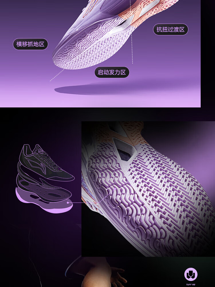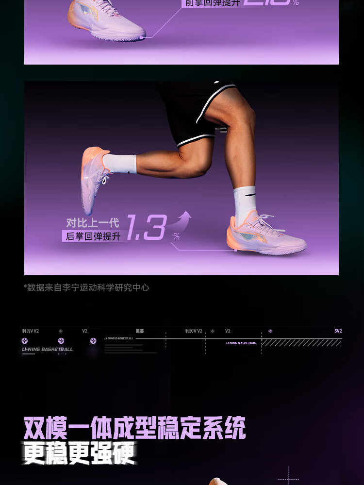 Li Ning He Blade 5V2丨polycore boost system basketball shoes men's low-top comfortable competition sports shoes condensed purple/soft peach (V059 style)-7 Chenmu 39
