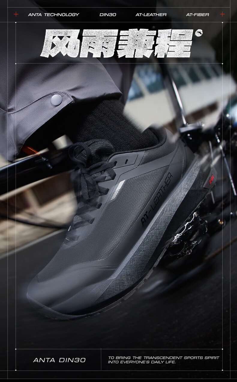 ANTA (ANTA) Z brother's same style, weatherproof丨Men's shoes, hard-core wear-resistant running shoes, outdoor running shoes, black sports shoes for men, basic black/pure white-1 39 (men 6.5)