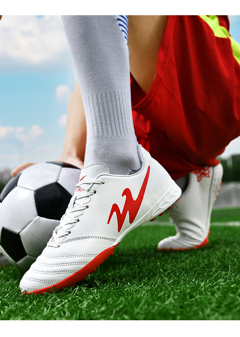 Double Star Football Shoes for Adults Low-top TF Broken Nails Long Nails Anti-Slip Teenage Boys Shoes Spike Shoes Football Training Shoes Men Black 42