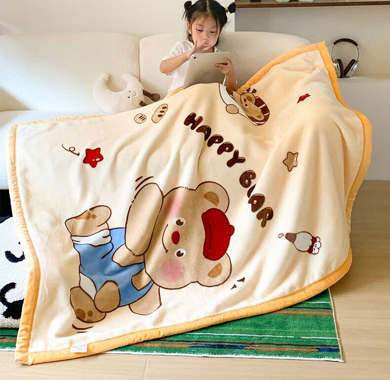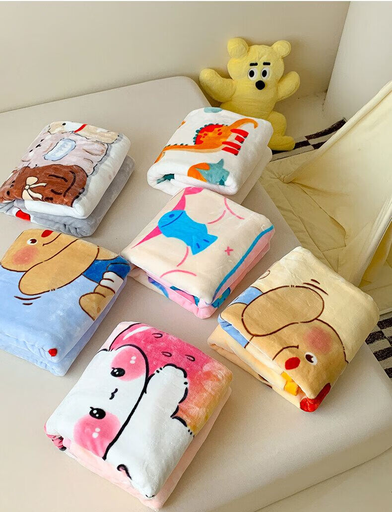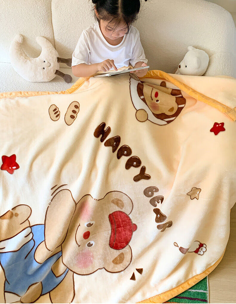 Children's blanket thickened autumn and winter double layer baby blanket small quilt kindergarten nap coral velvet blanket Good night puppy 120cm*150cm double layer thickened 2.8Jin Jin equals 0.5kg