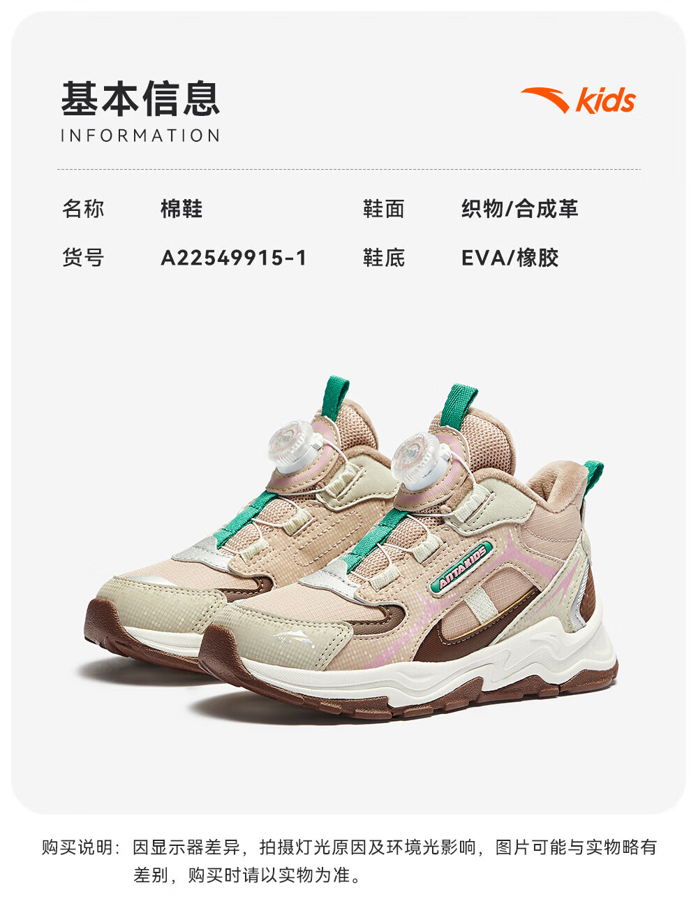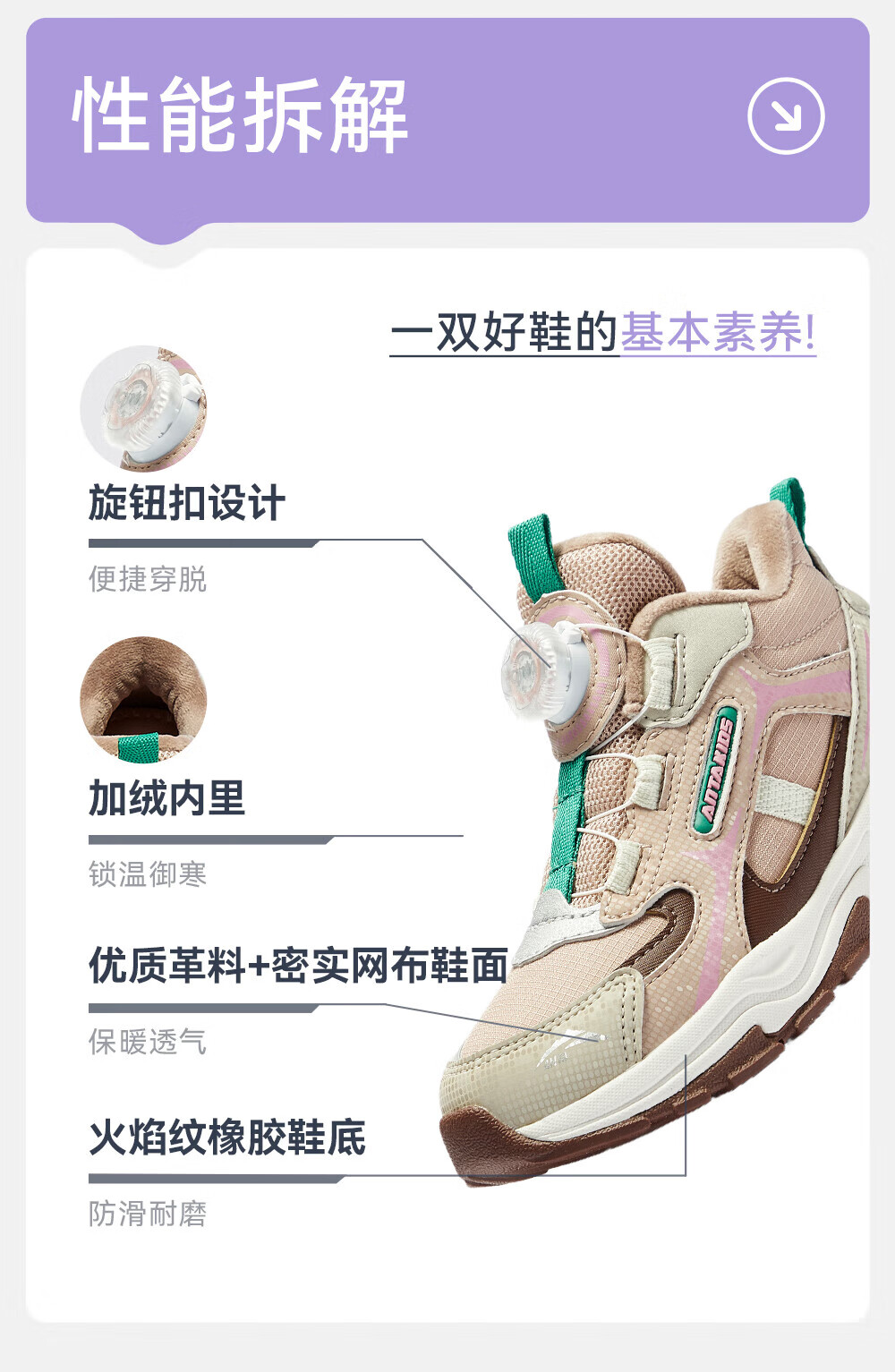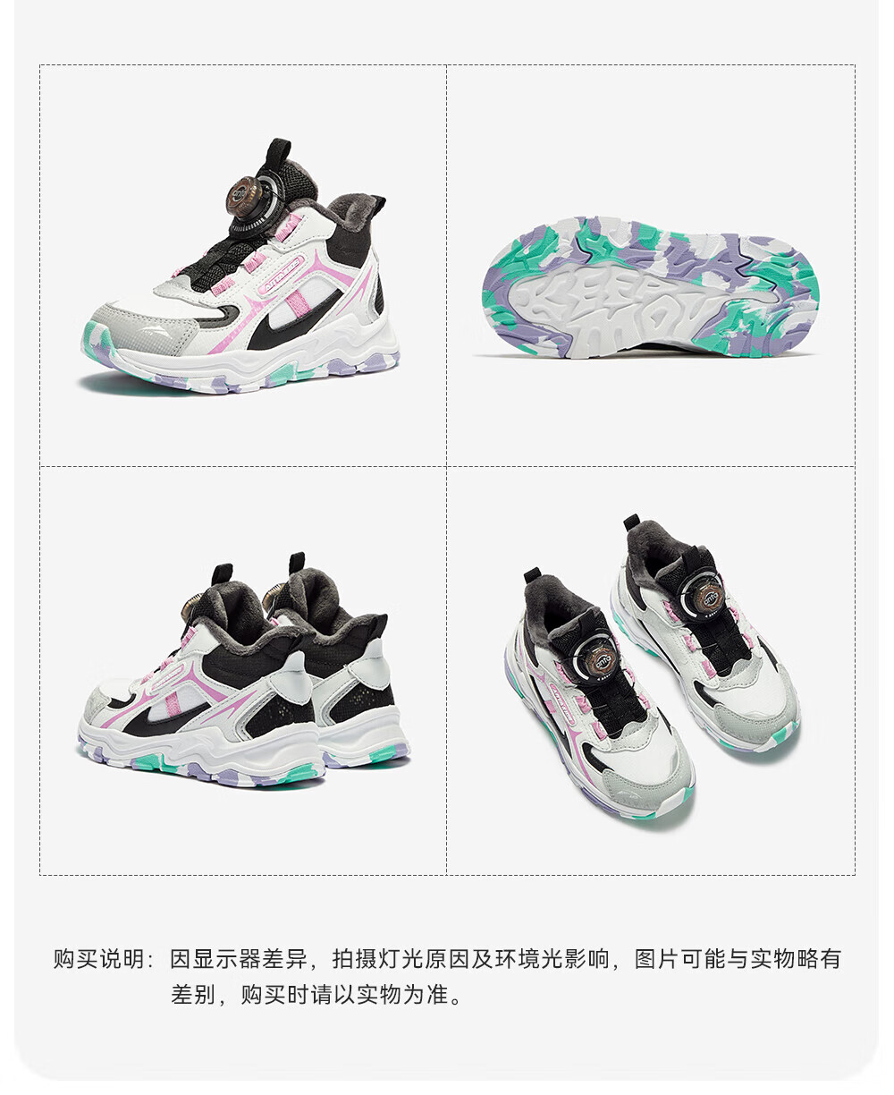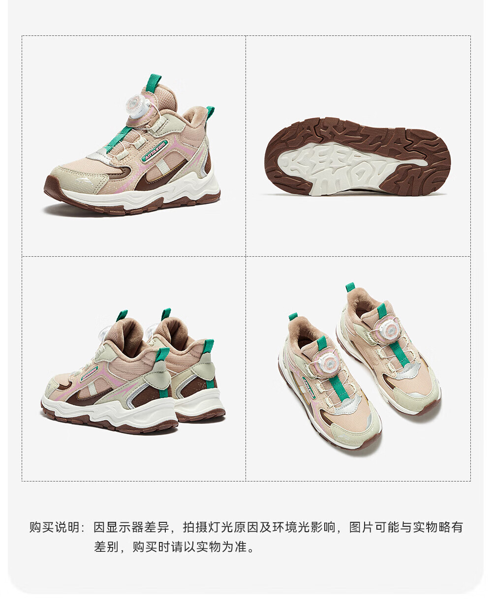 ANTA children's cotton shoes for girls 2025 autumn new arrival velvet knob buckle leather surface water-repellent fashionable color matching snow boots brown gray-1 32 feet long about 20cm