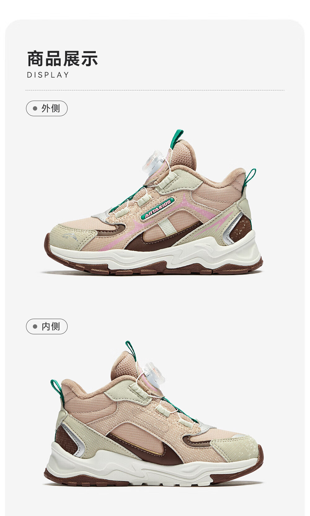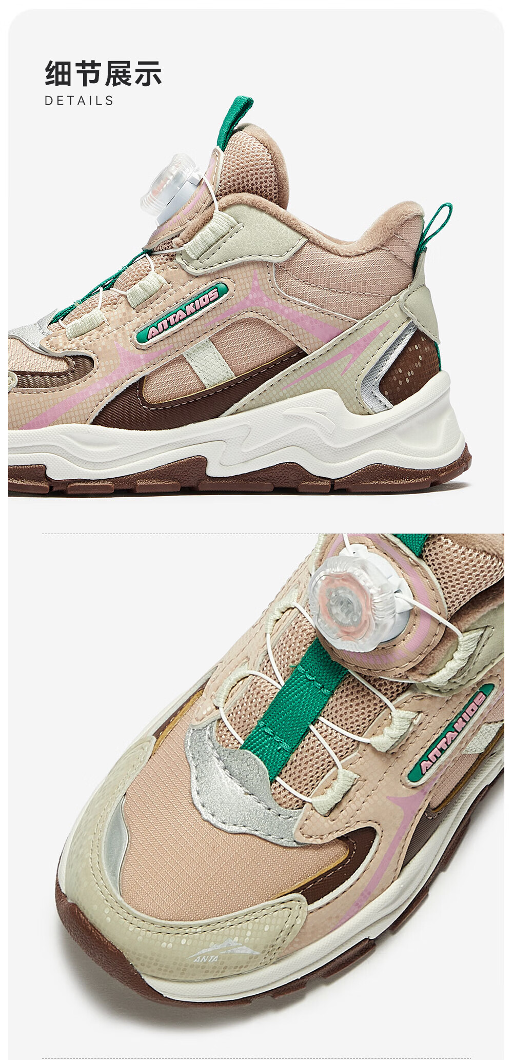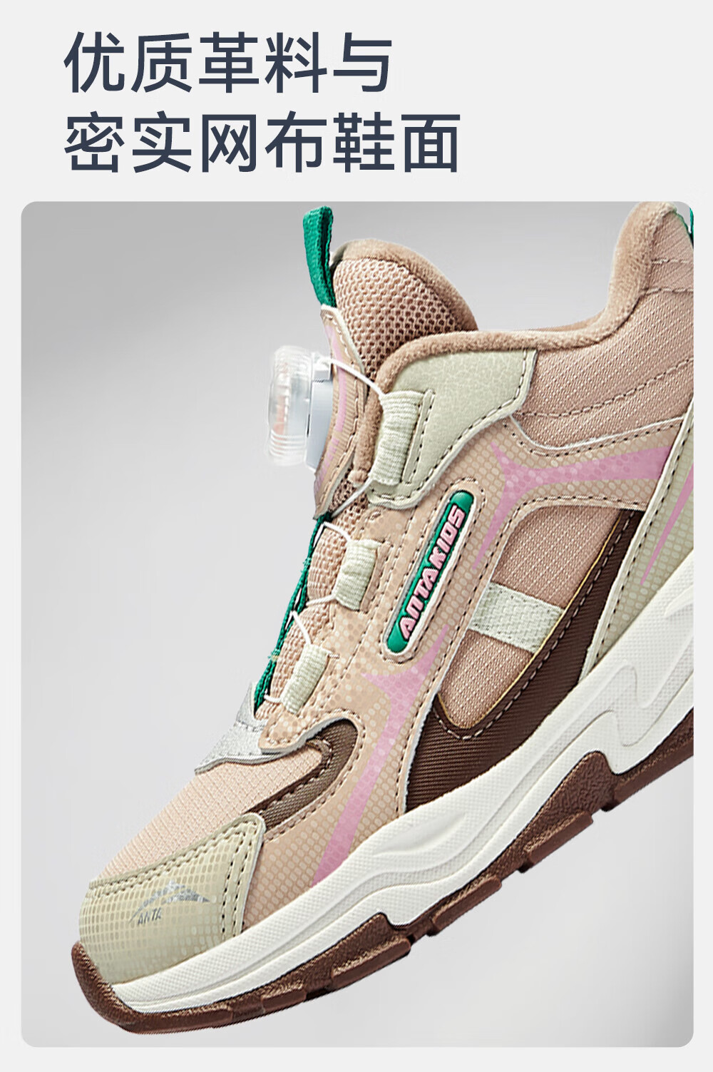ANTA children's cotton shoes for girls 2025 autumn new arrival velvet knob buckle leather surface water-repellent fashionable color matching snow boots brown gray-1 32 feet long about 20cm