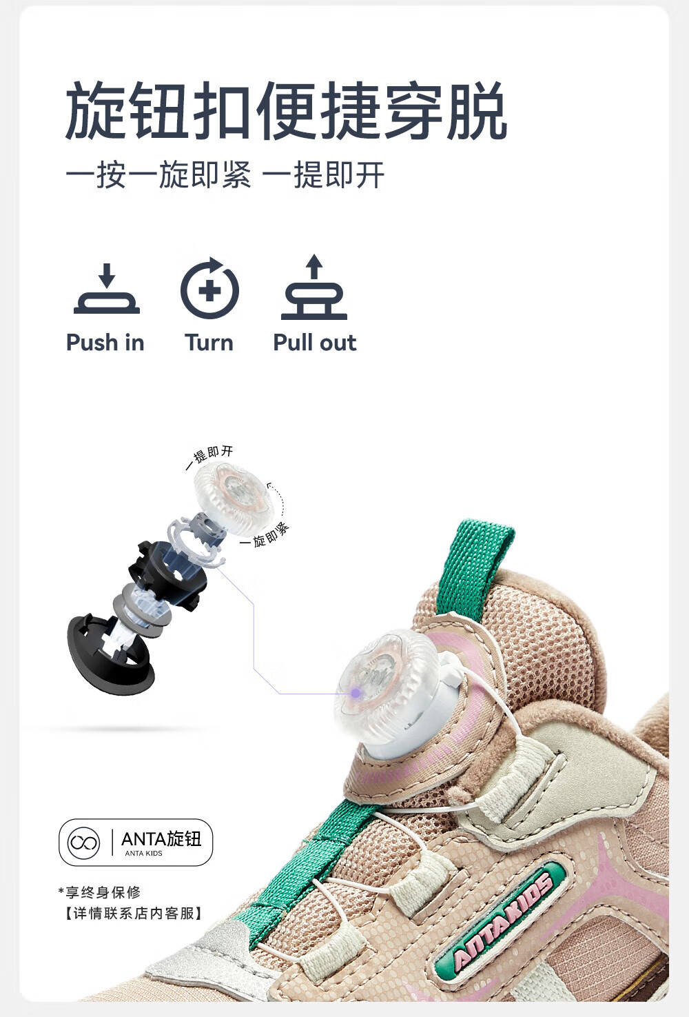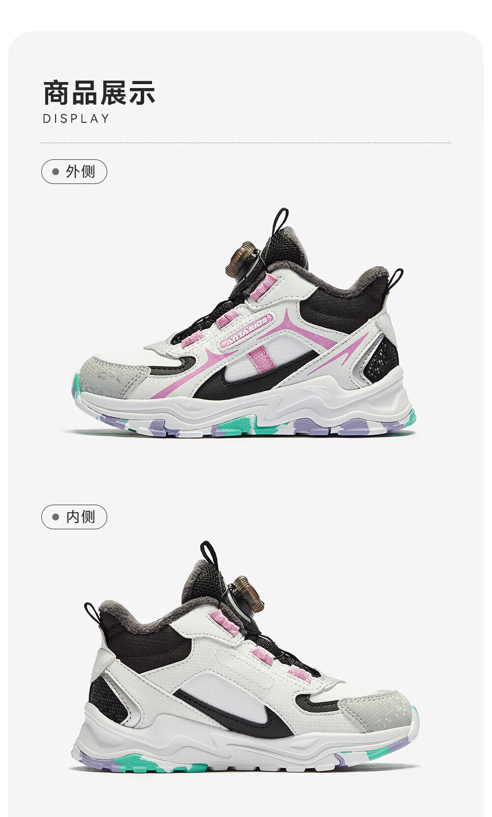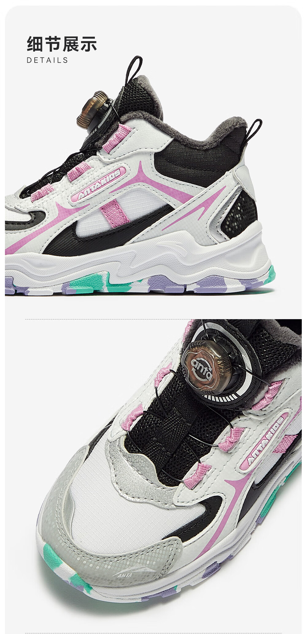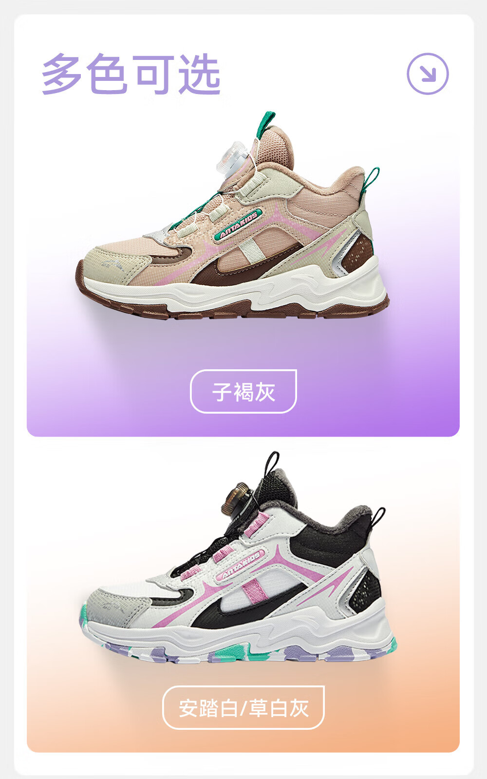 ANTA children's cotton shoes for girls 2025 autumn new arrival velvet knob buckle leather surface water-repellent fashionable color matching snow boots brown gray-1 32 feet long about 20cm