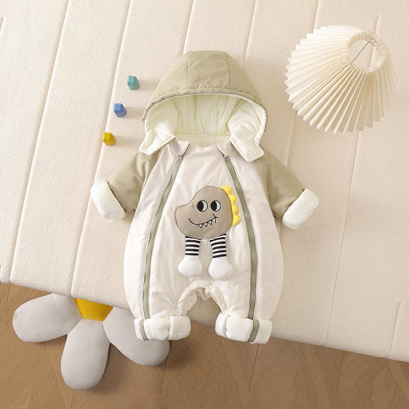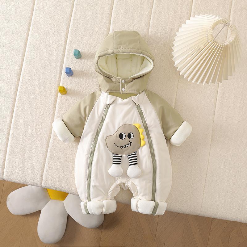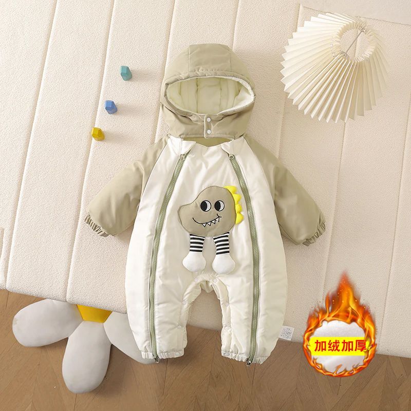 G.duck Little Yellow Duck Baby Clothes Jacket Baby Thickened Autumn and Winter One-piece Jacket Plush Warm Outdoor Romper Suit Double zipper dinosaur thickened quilted outdoor clothing 80cm 80 yards (6-9 months 20Jin Jin is equal to 0.5 kg)