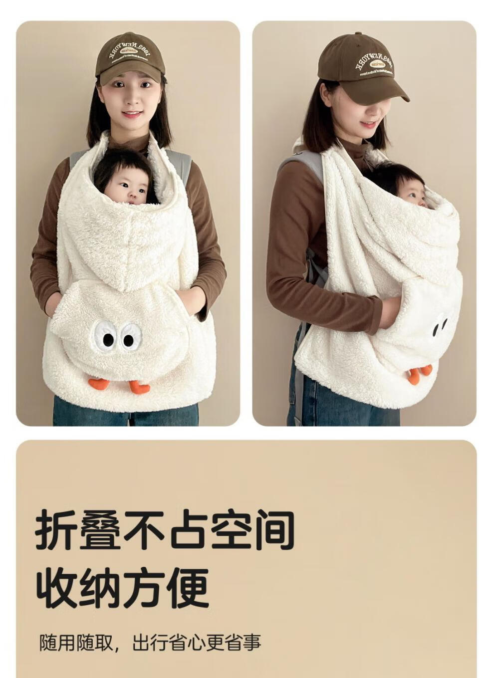 Langjian Baby Stroller Cover Blanket Autumn and Winter Out Baby Warm Windproof Cloak Carrier Waist Stool Children's Windshield Blanket Beige Big Eyes Stroller Cover Blanket/Waist Stool Windproof Cloak 72*80cm